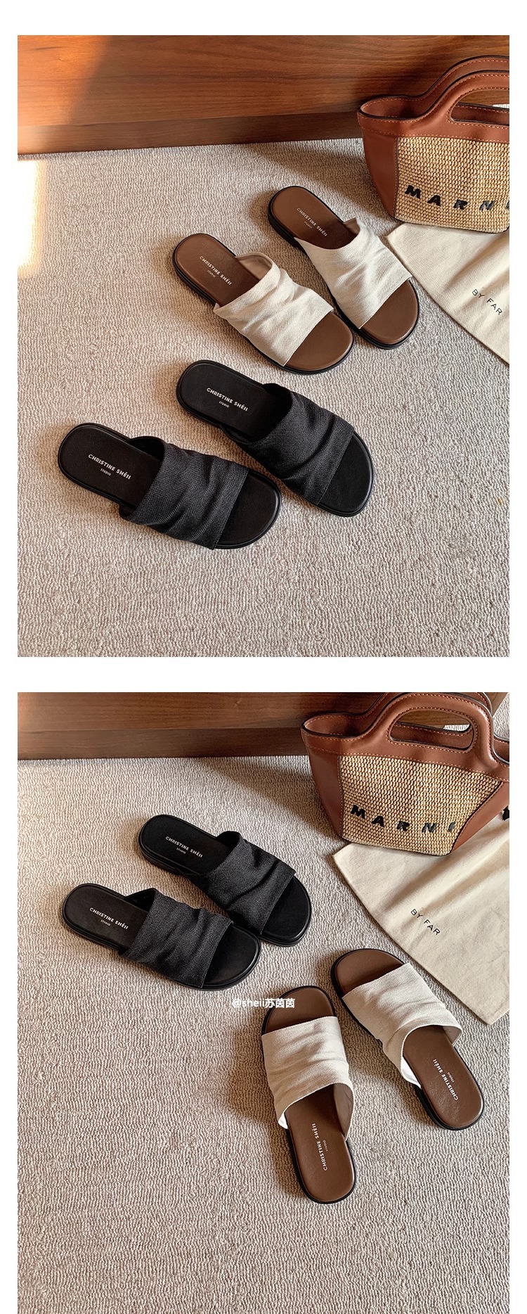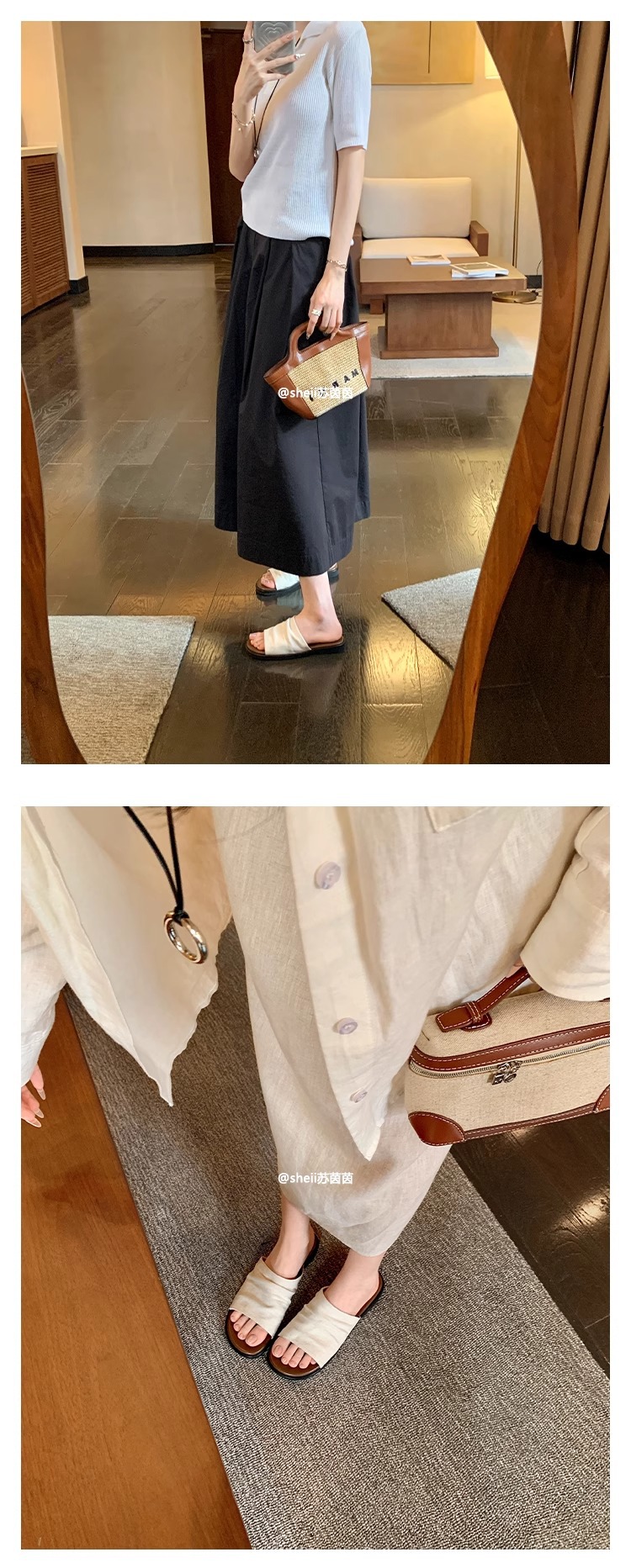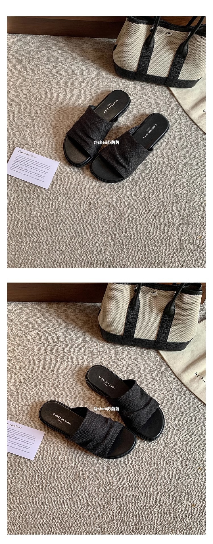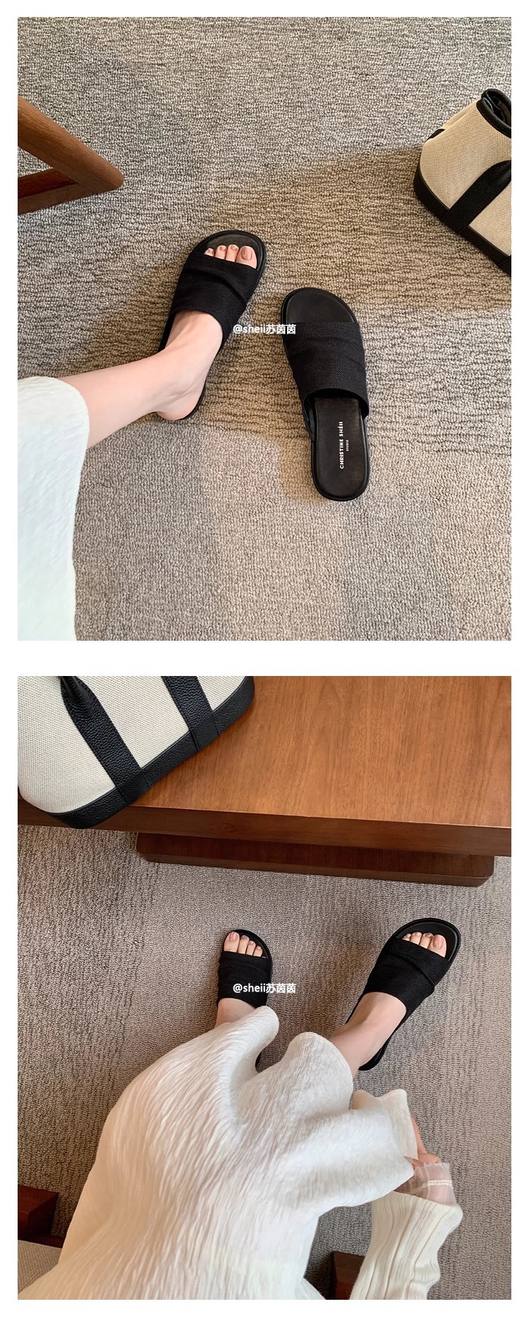 [Sheii Su Yinyin] Bangkok drag ~ Sandalias planas plisadas de lino de playa estilo resort, zapatillas de mujer, verano