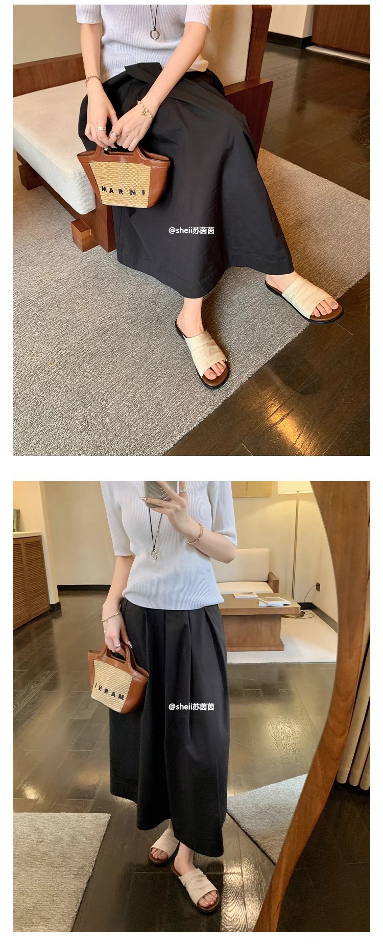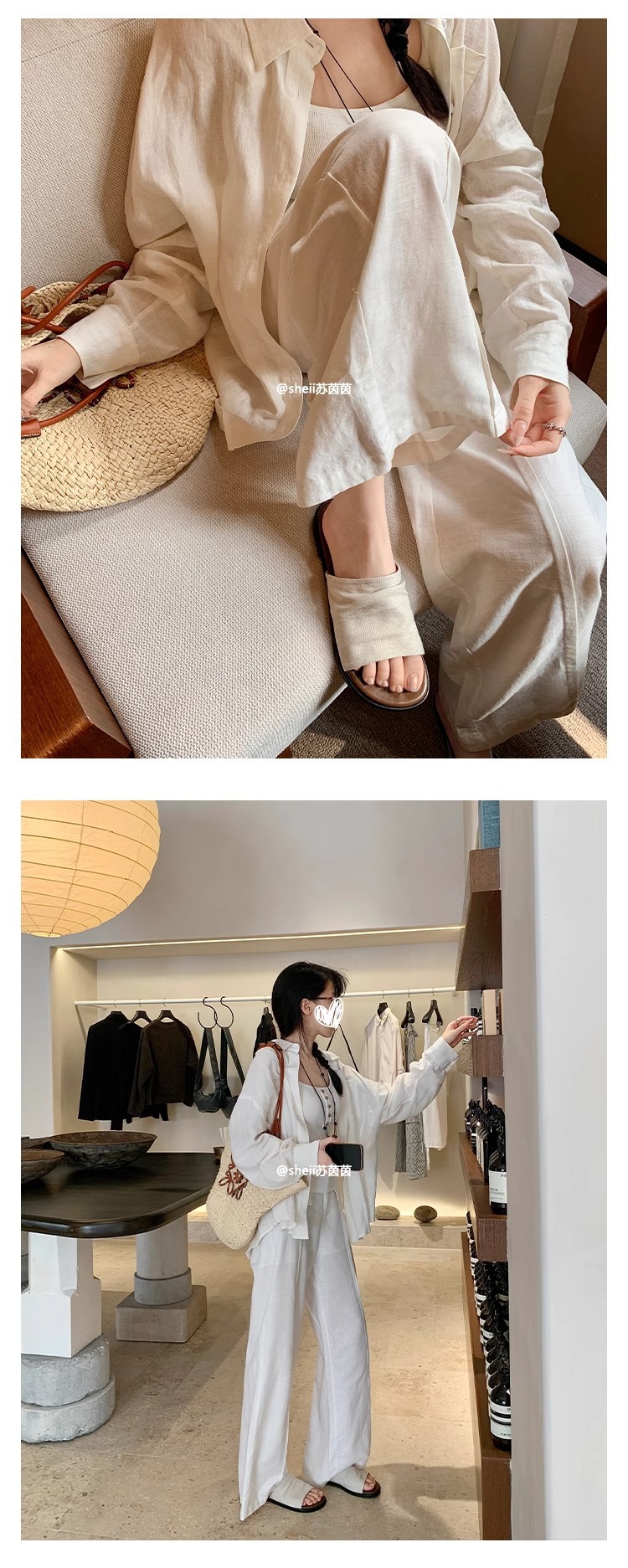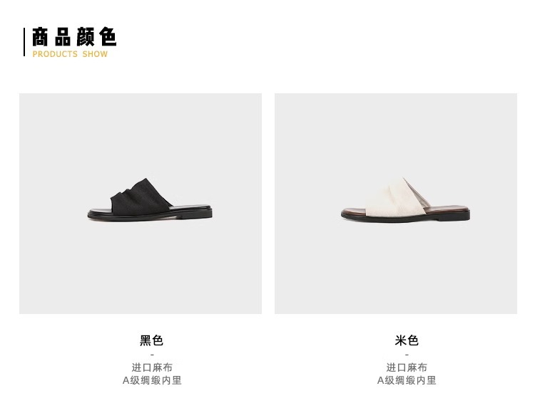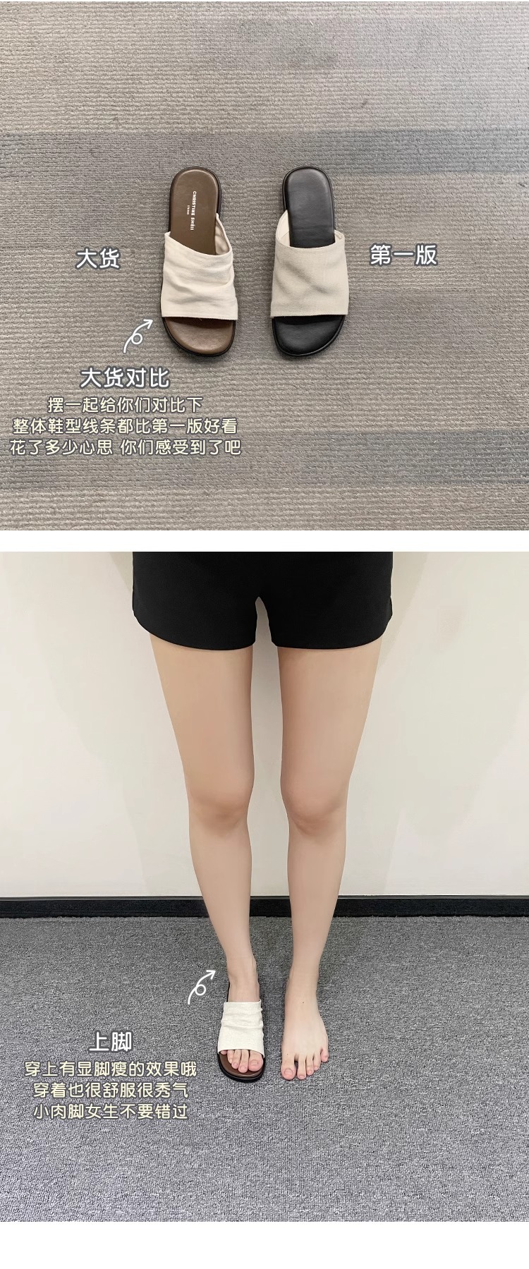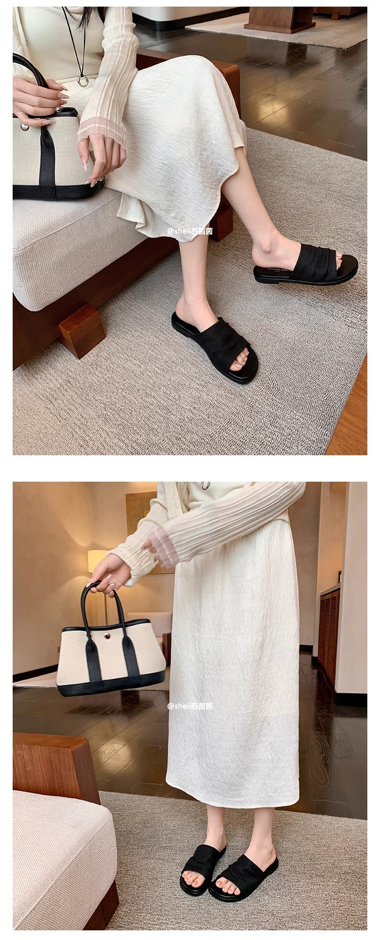 [Sheii Su Yinyin] Bangkok drag ~ Sandalias planas plisadas de lino de playa estilo resort, zapatillas de mujer, verano