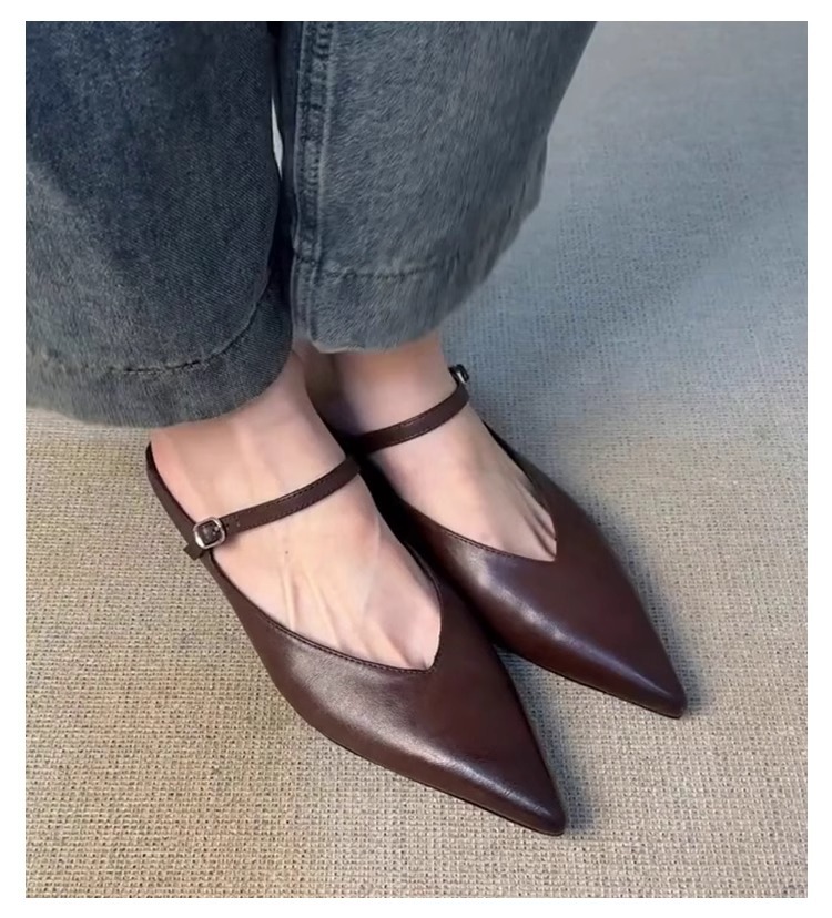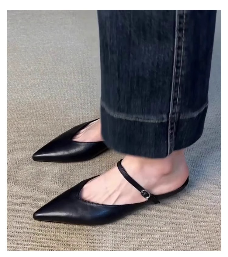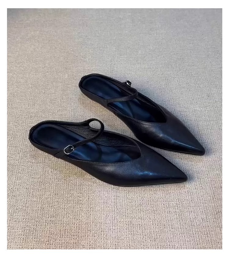 Versión de piel de oveja ~ Las nuevas medias pantuflas de cabeza gruesa puntiaguda con hebilla retro francesa zapatos Muller de boca baja de moda