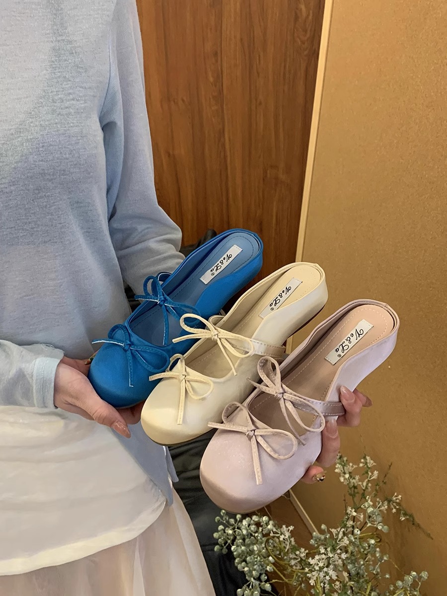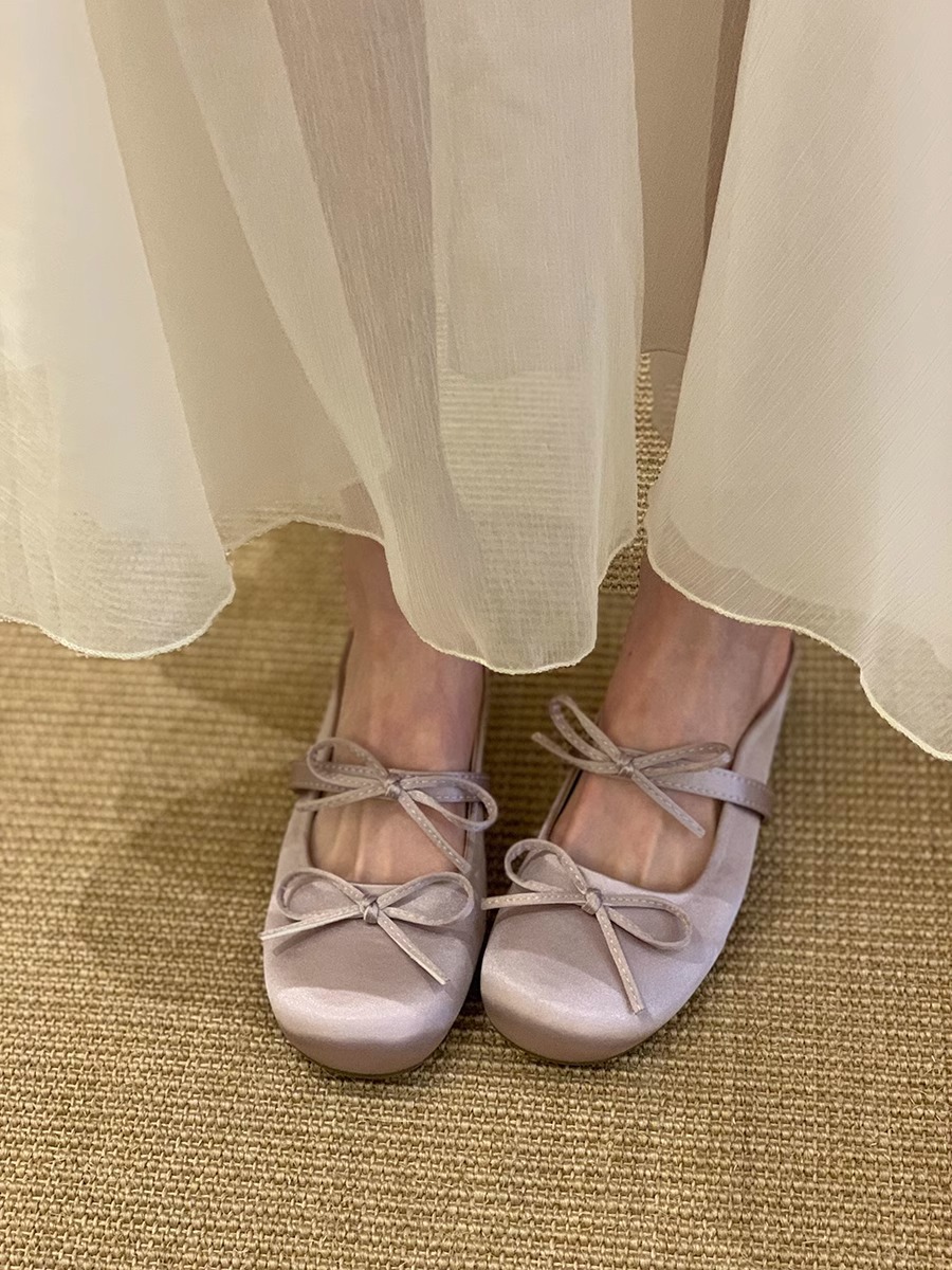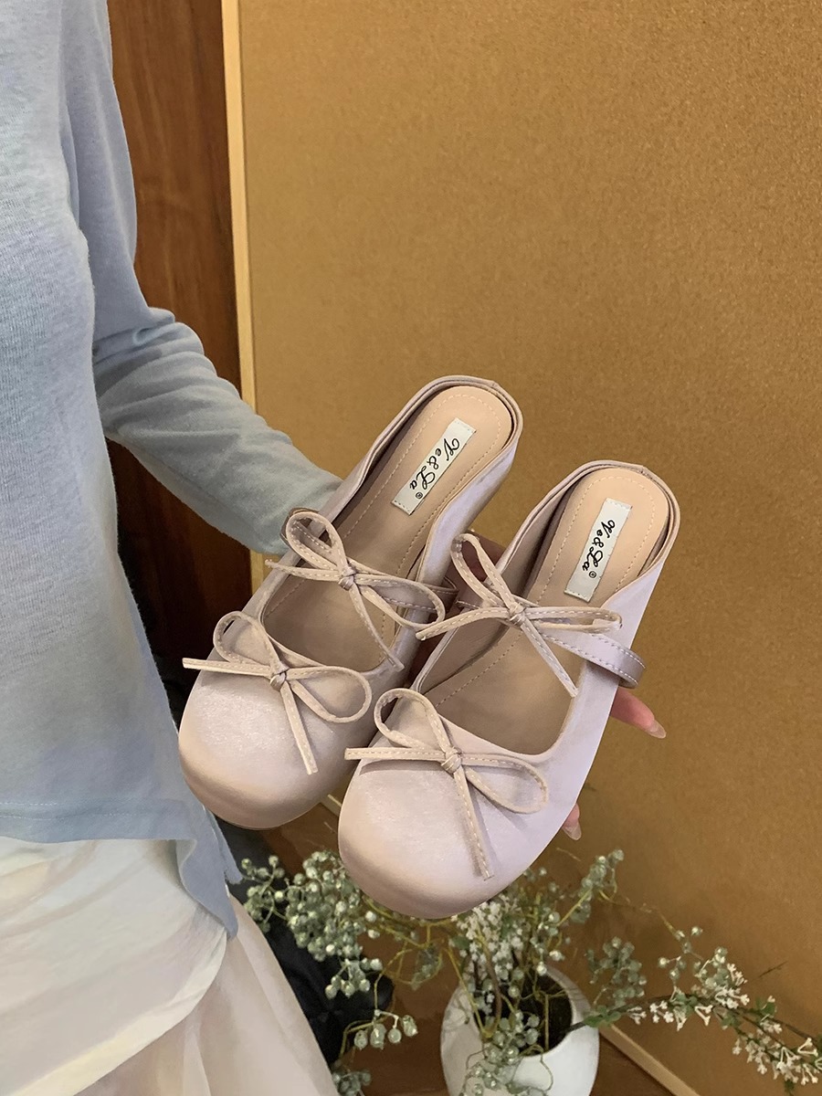 Inner realce francés púrpura Baotou medias pantuflas mujer 2025 nuevo estilo primavera y verano lazo Mary Jane Ballet zapatos individuales