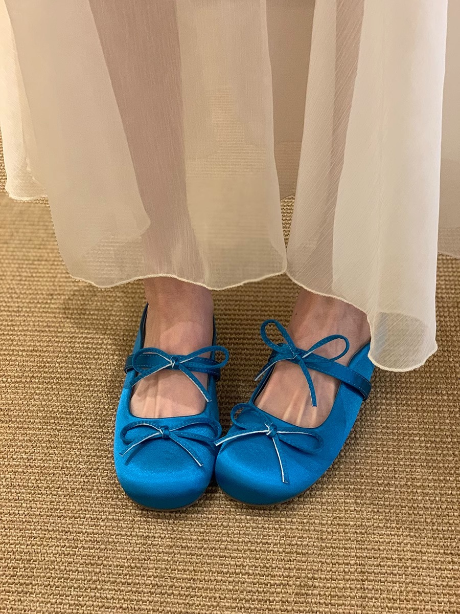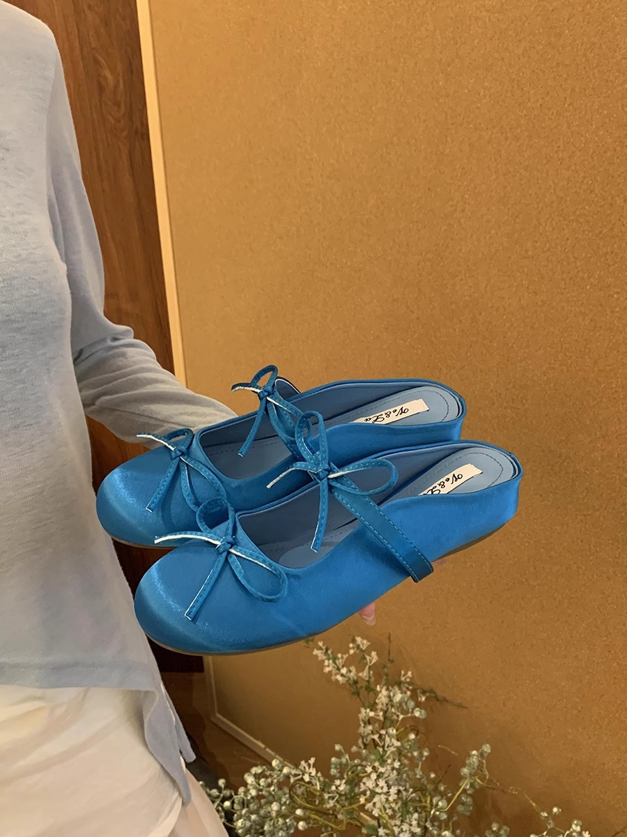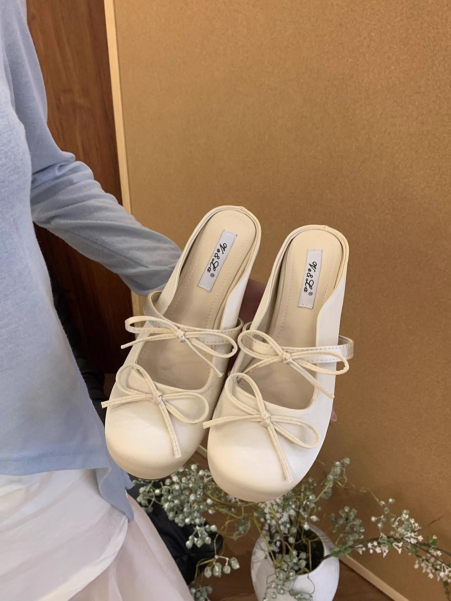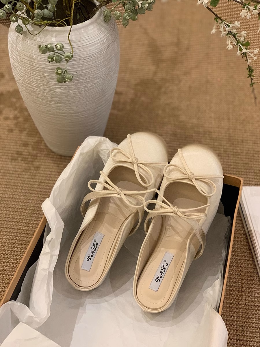 Inner realce francés púrpura Baotou medias pantuflas mujer 2025 nuevo estilo primavera y verano lazo Mary Jane Ballet zapatos individuales