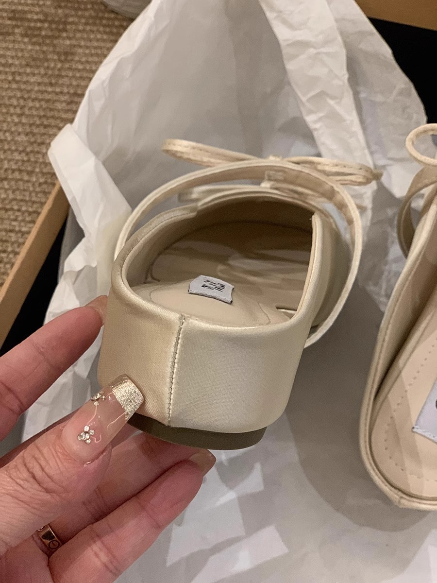 "Miaolu" estilo de ballet fresco ~ zapatillas de talón grueso de la mujer de verano con sandalias de dedos desnudos