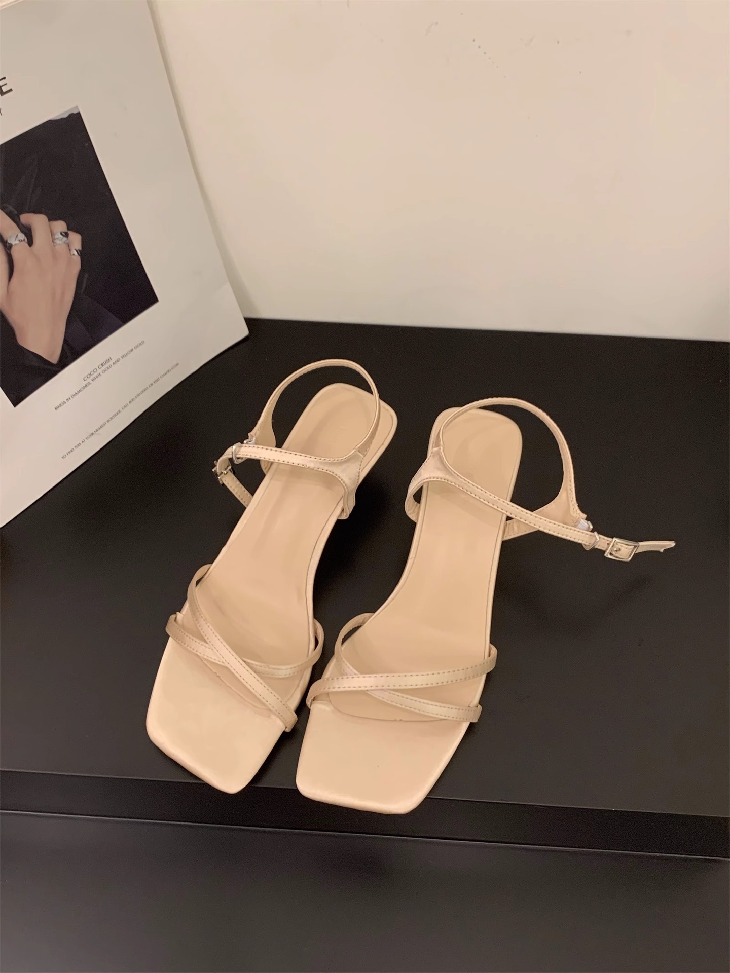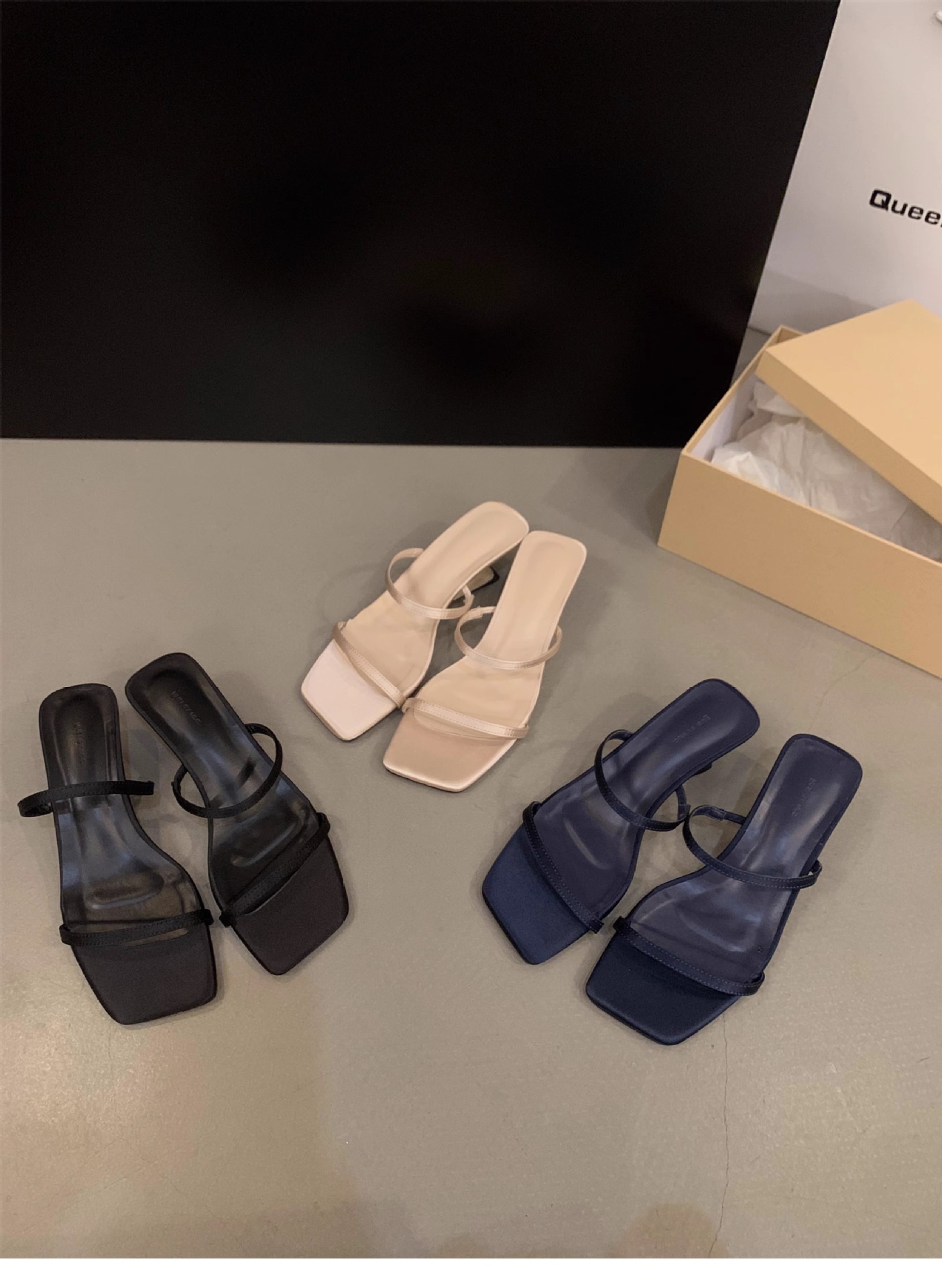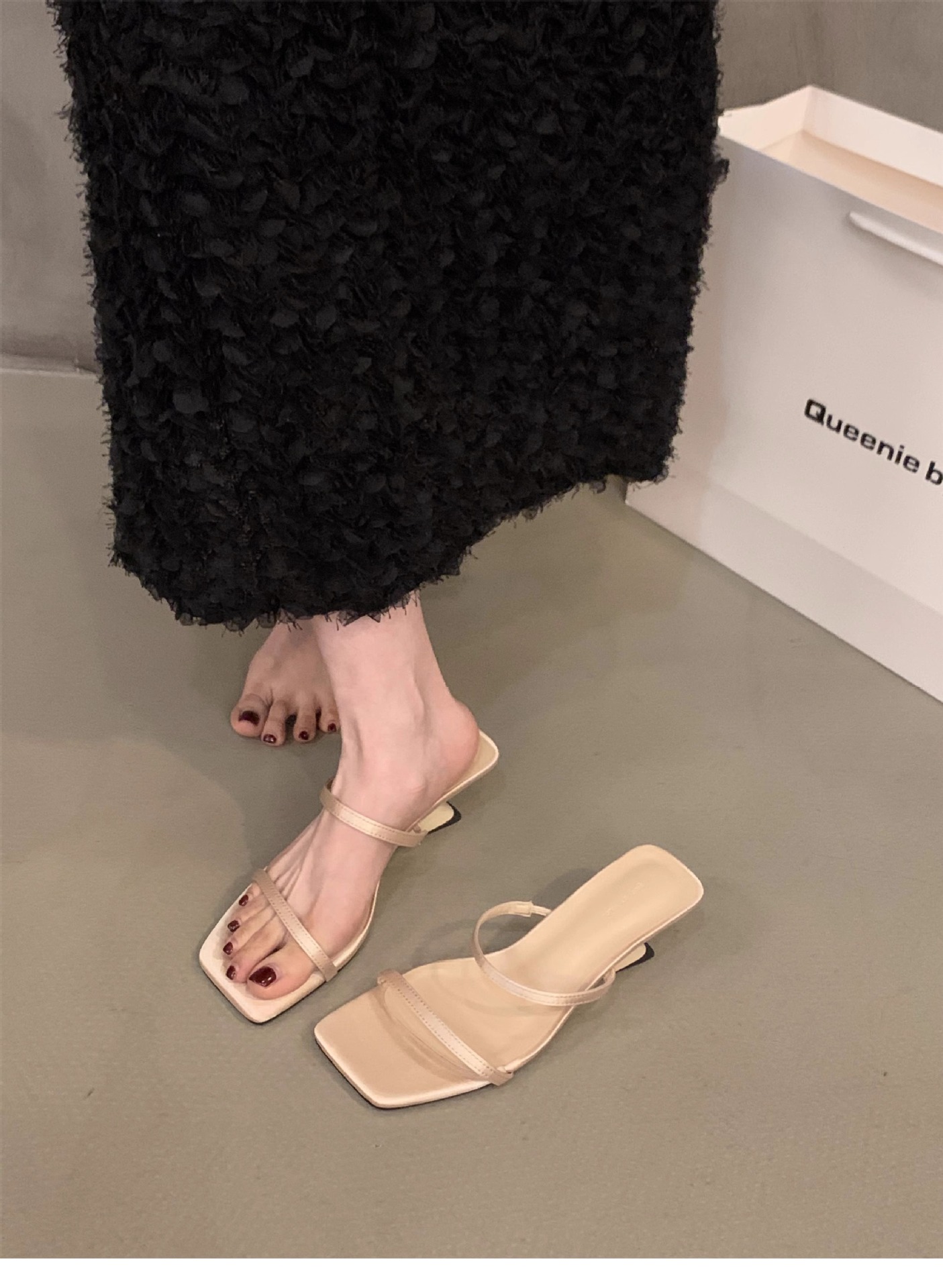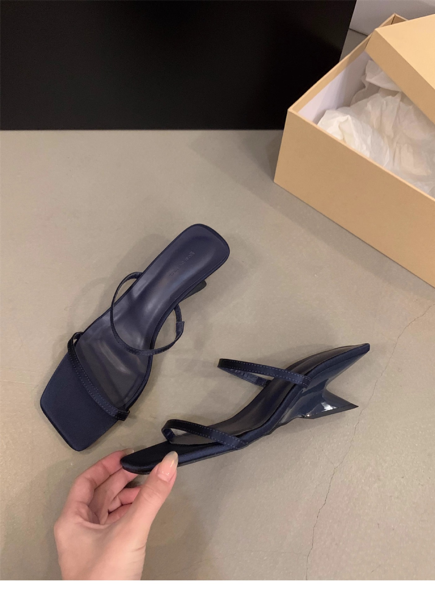Sensación de diseño de nicho, zapatillas de una palabra, zapatos de hadas, 2024 nuevas sandalias francesas de tacón de cuña de verano, sandalias