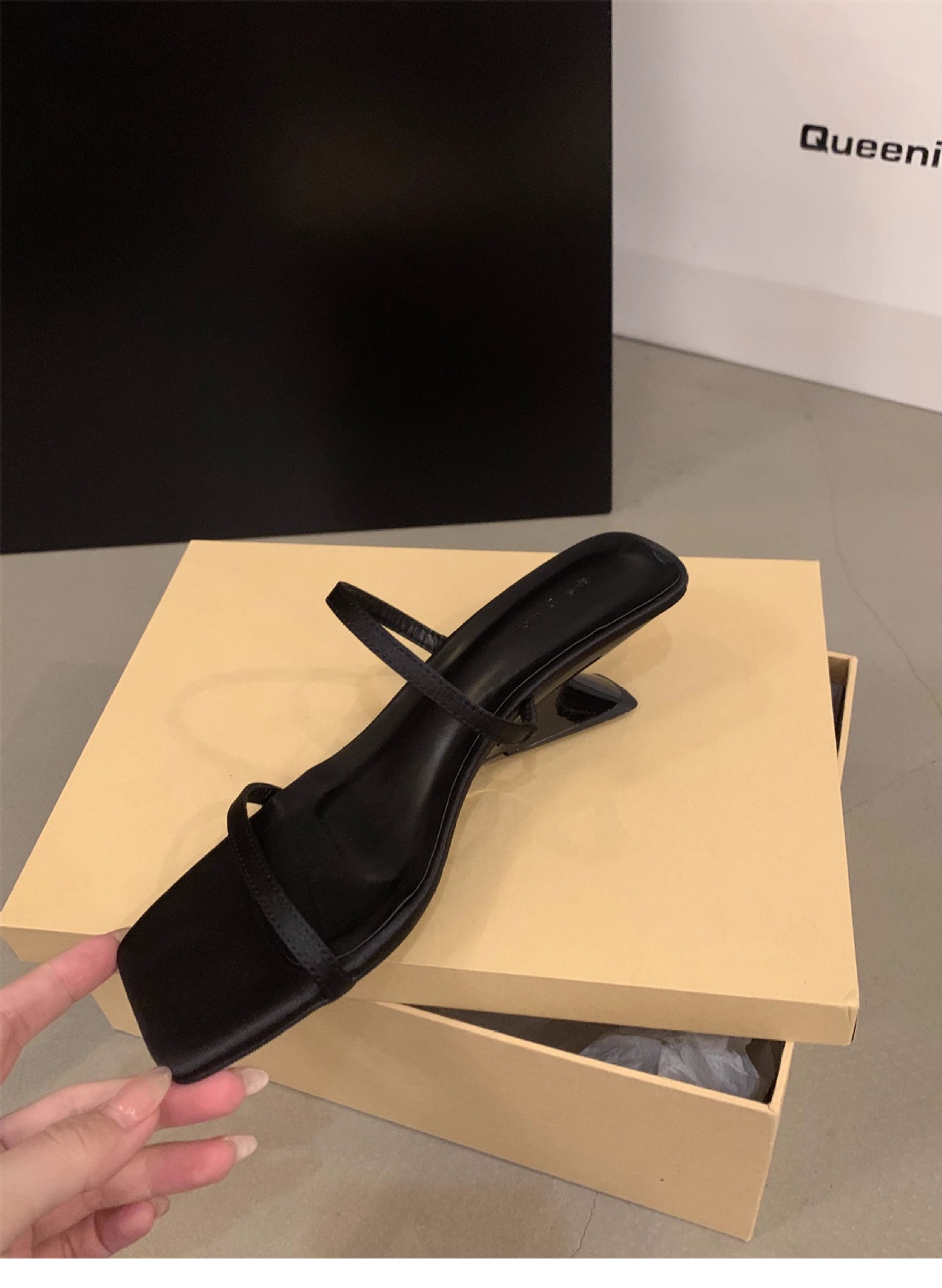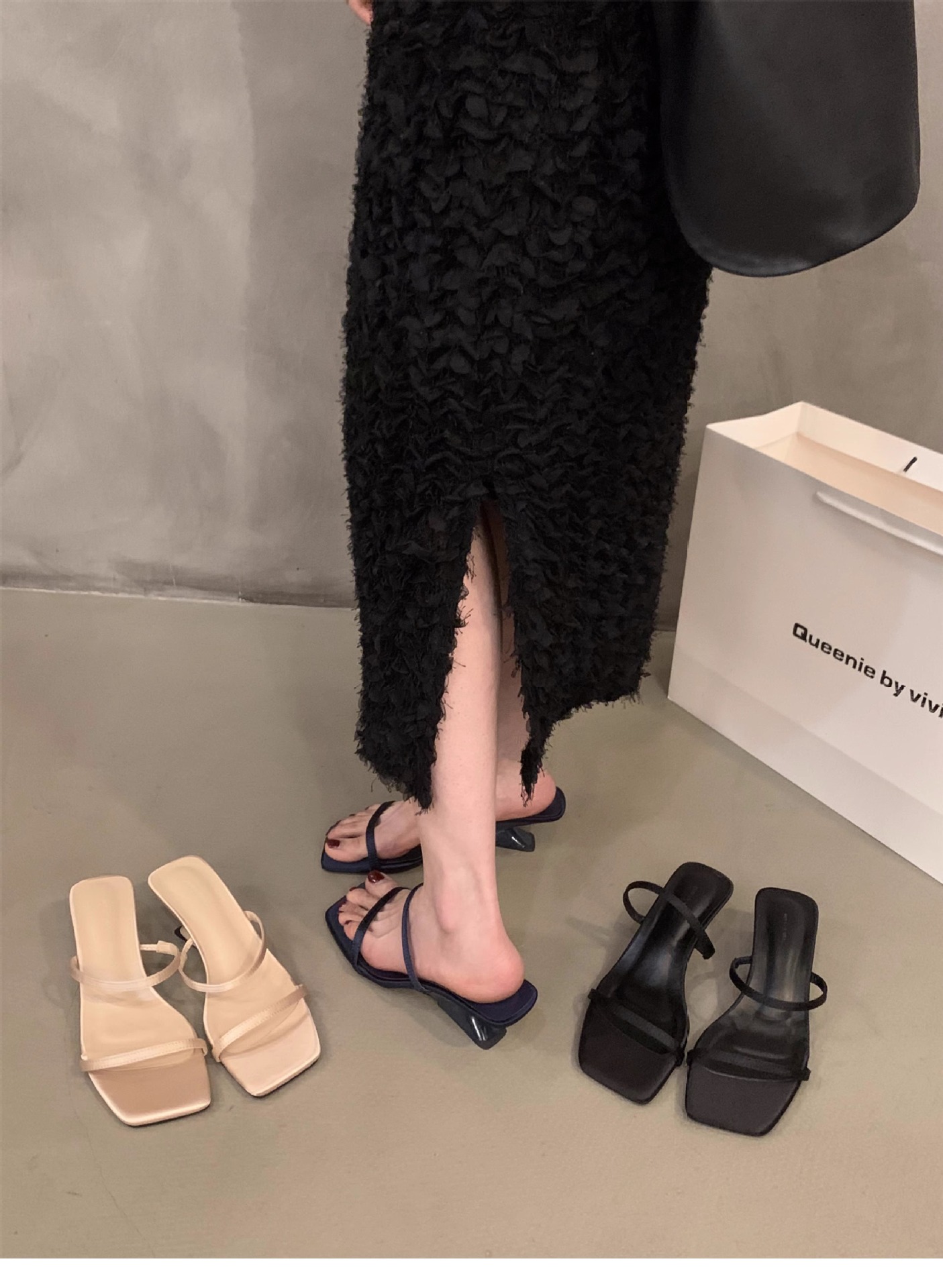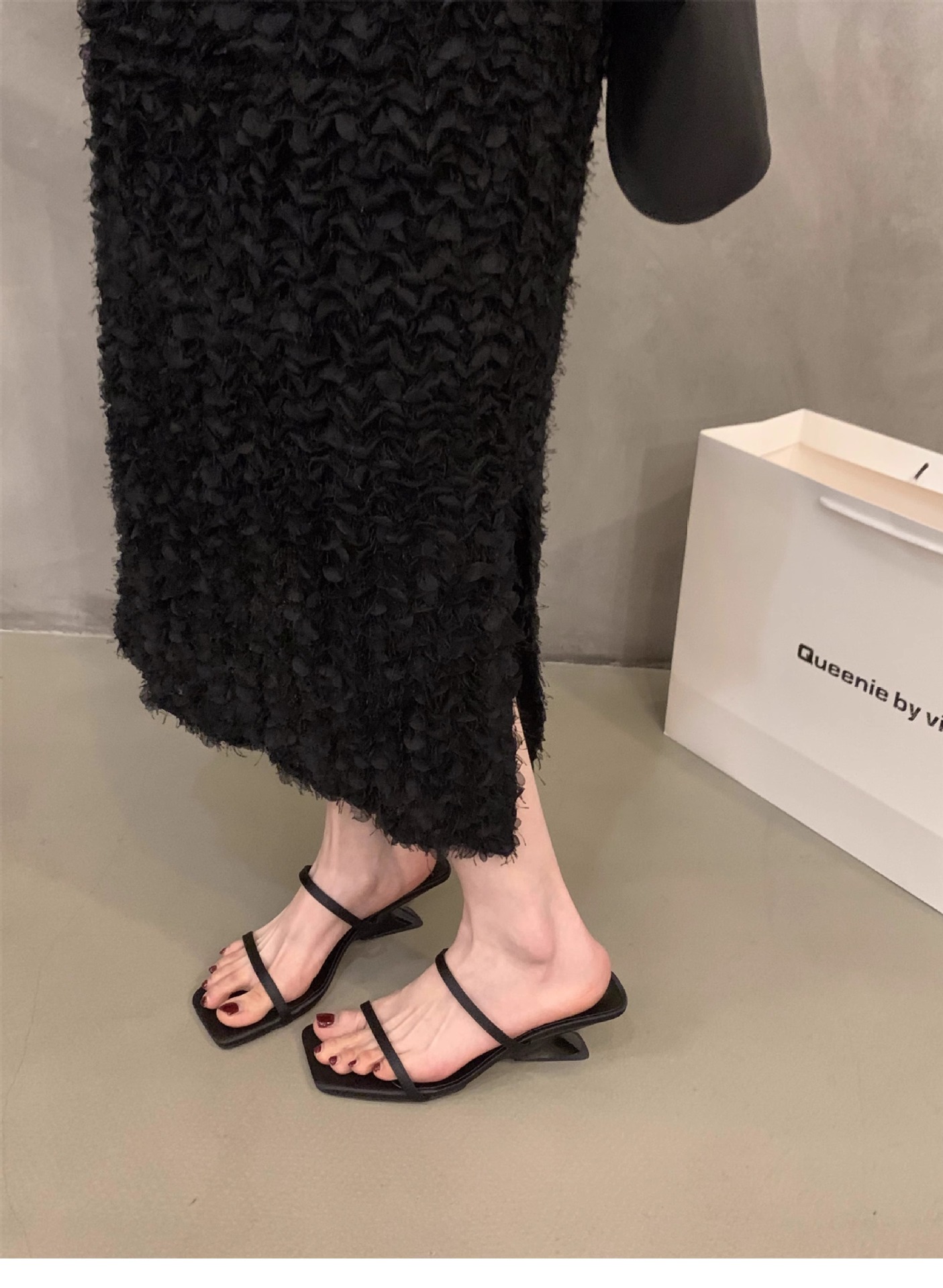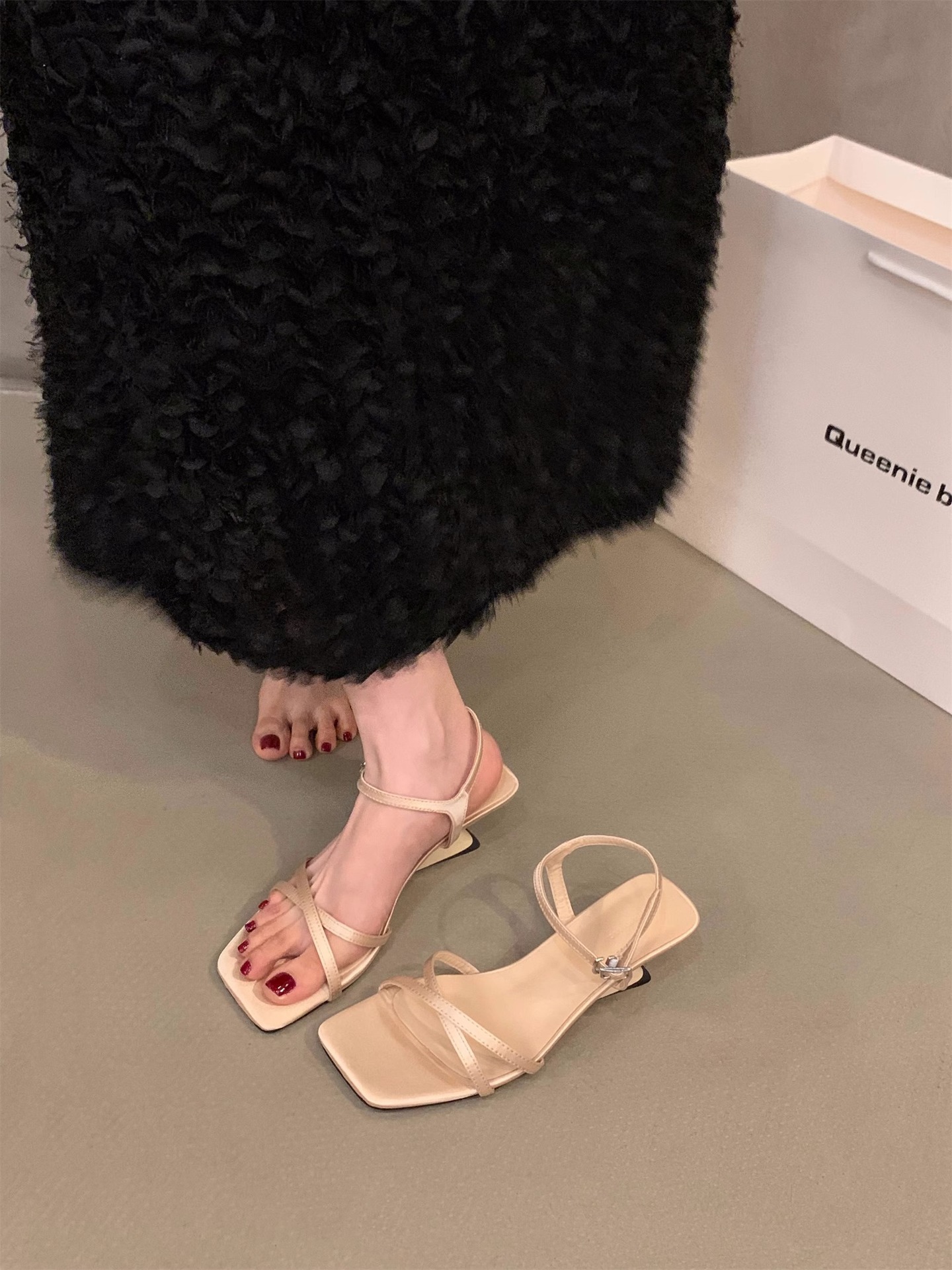 Sensación de diseño de nicho, zapatillas de una palabra, zapatos de hadas, 2024 nuevas sandalias francesas de tacón de cuña de verano, sandalias