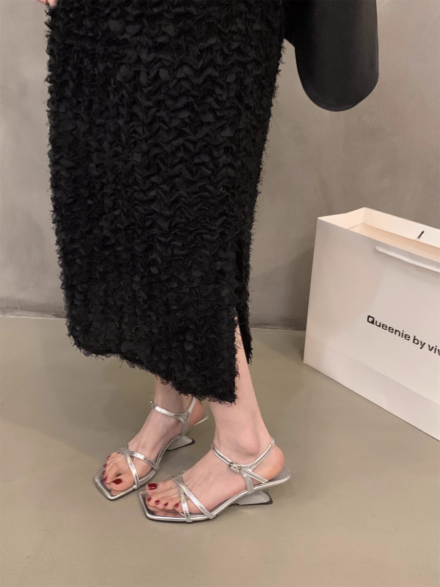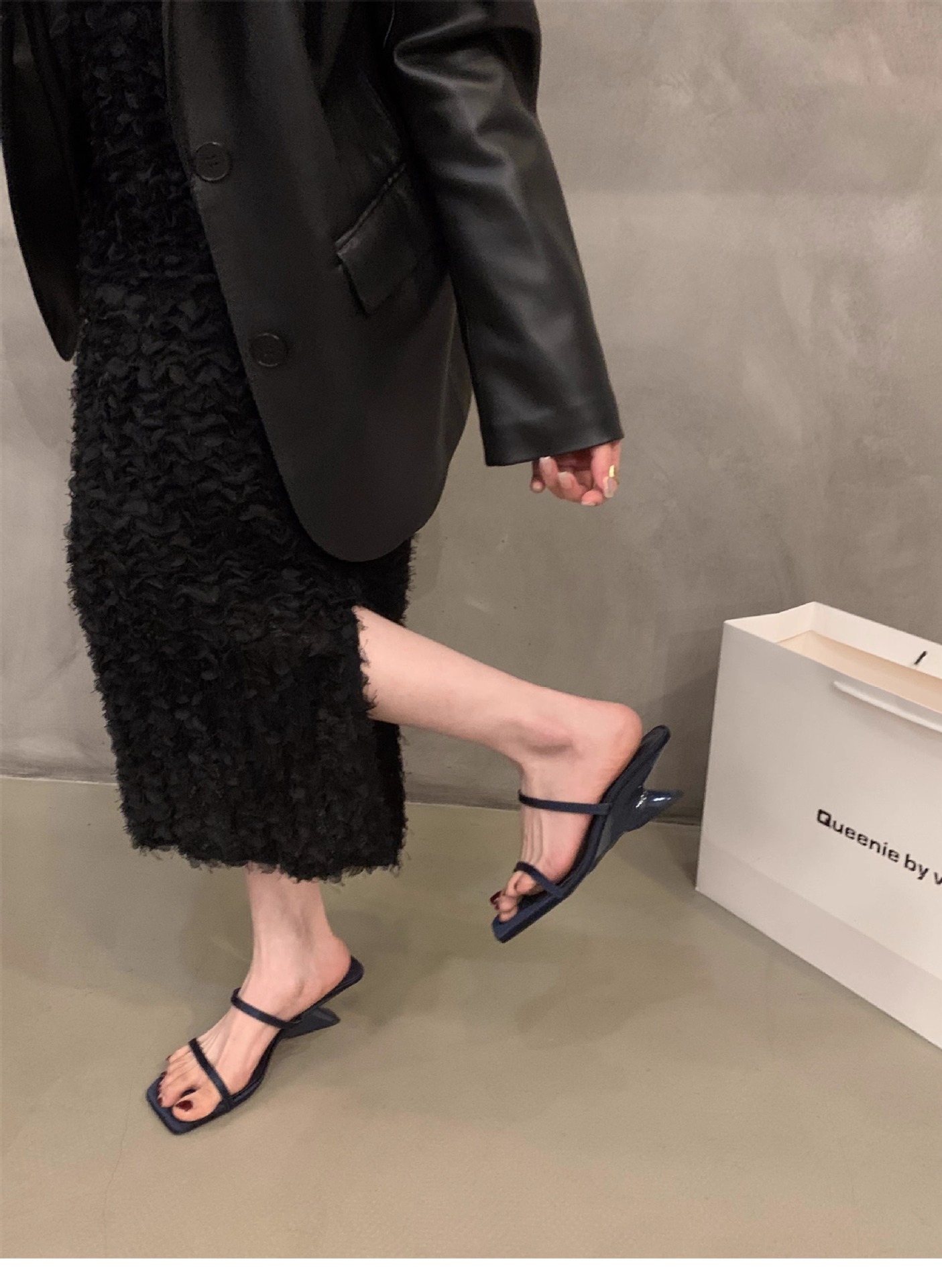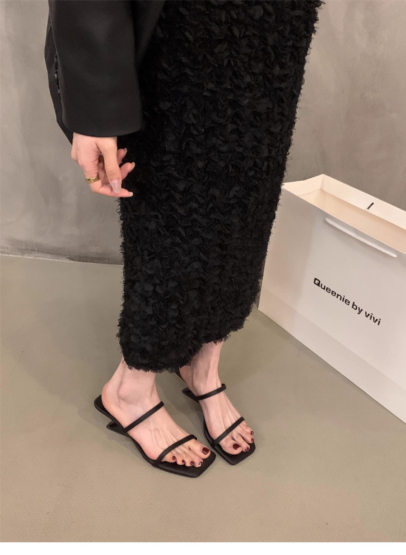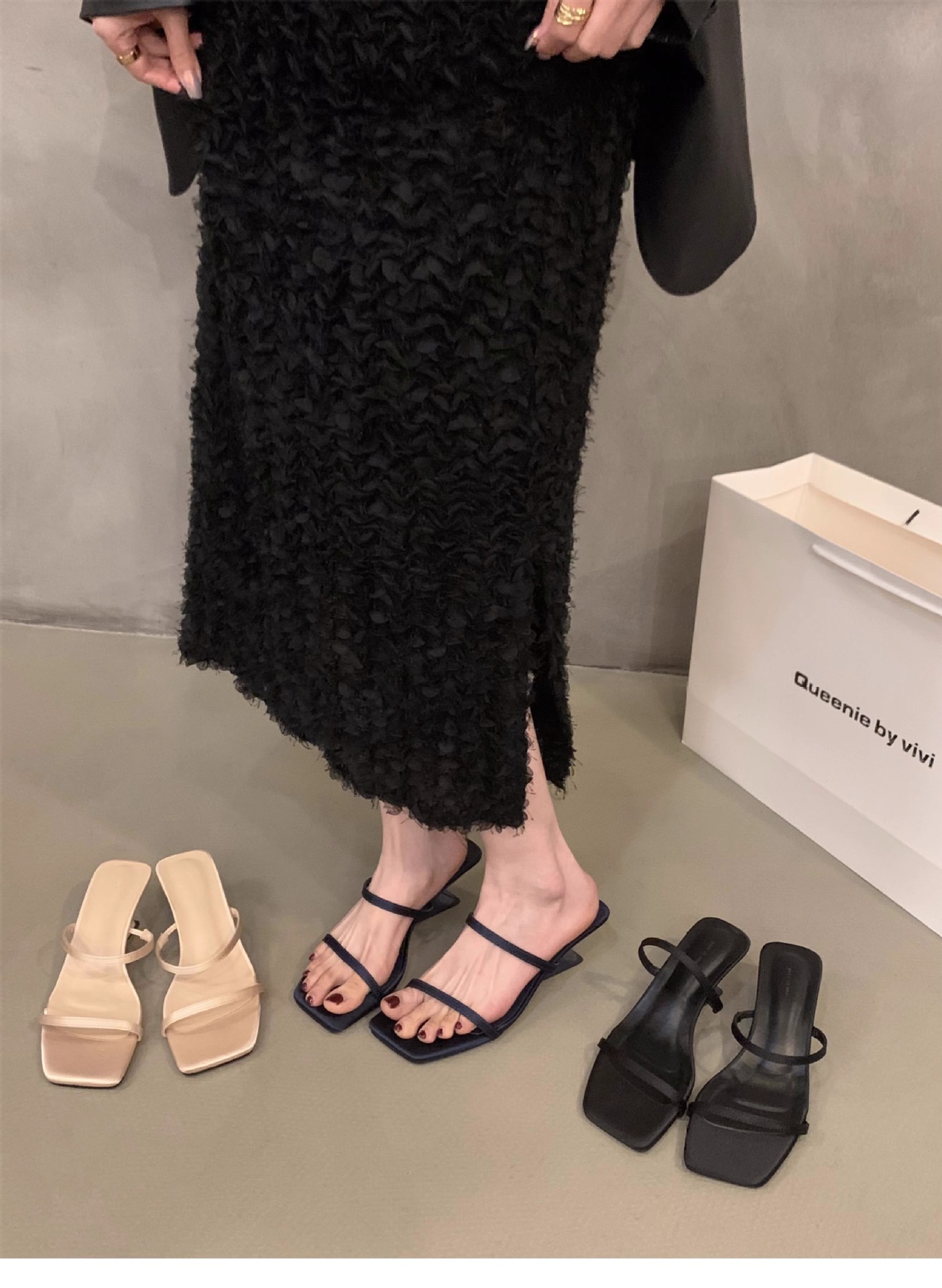 Sensación de diseño de nicho, zapatillas de una palabra, zapatos de hadas, 2024 nuevas sandalias francesas de tacón de cuña de verano, sandalias