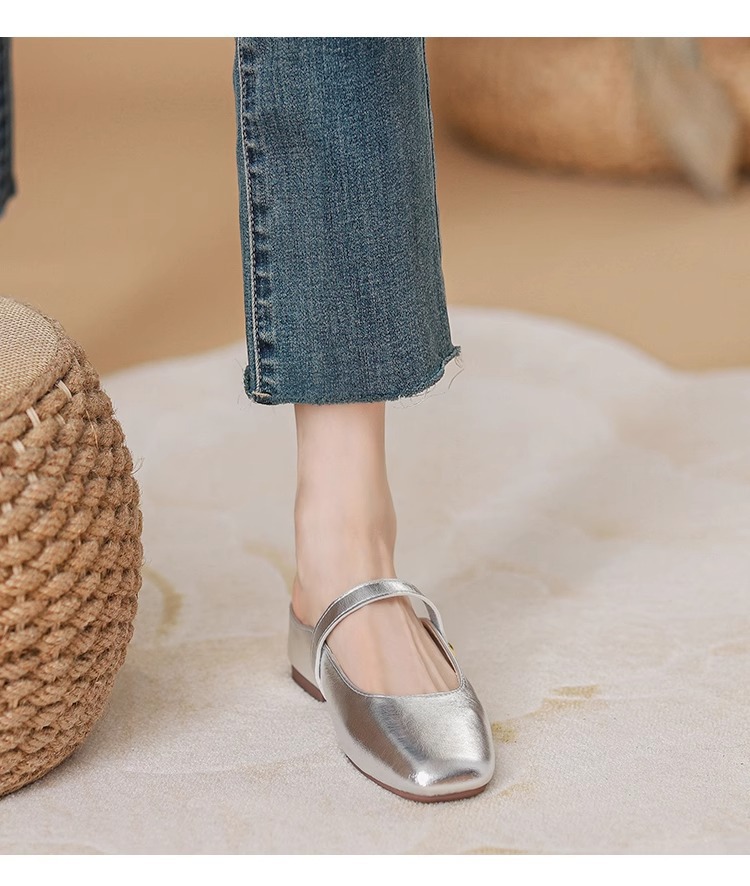 Aumentar la altura interior de la cabeza de la mitad de zapatillas de verano para mujeres nuevas zapatillas de estilo coreano de estilo francés de noche plata zapatillas frías
