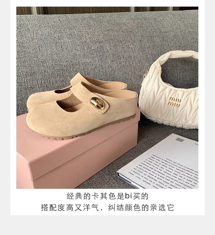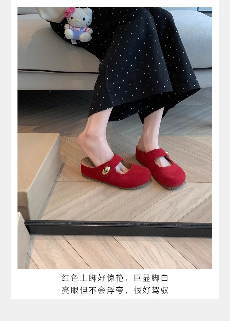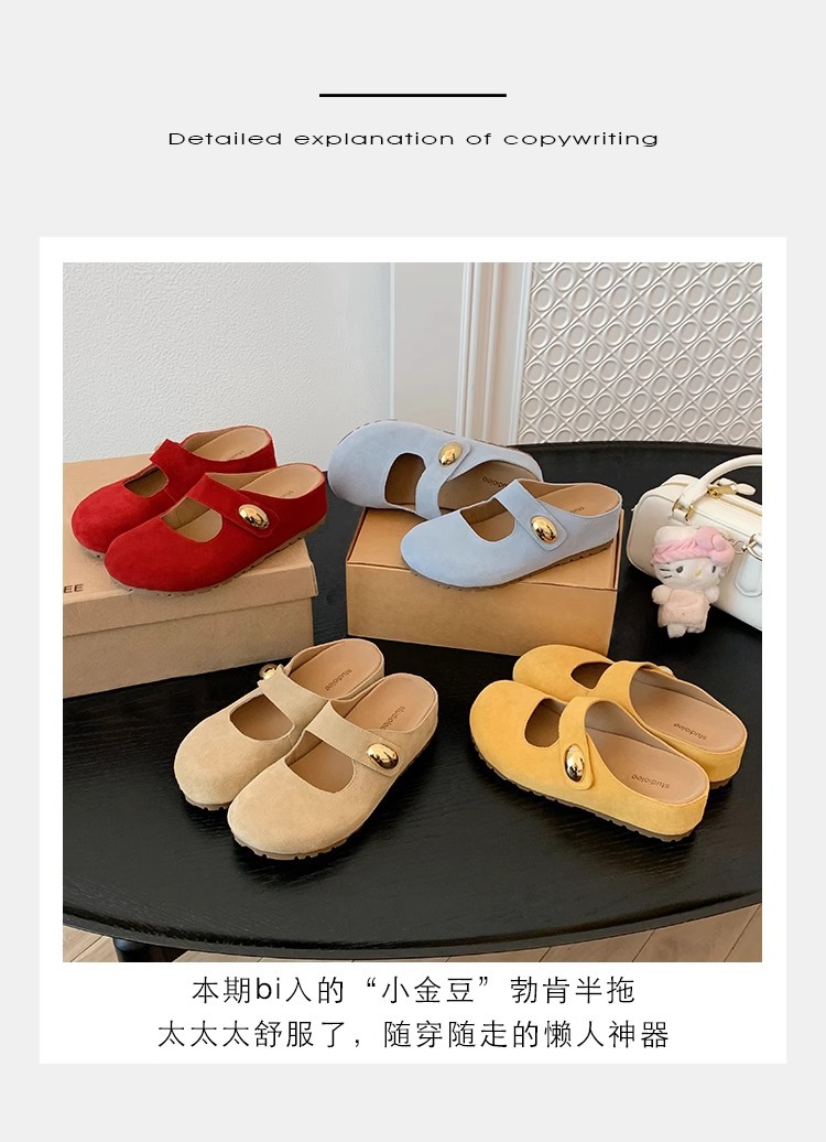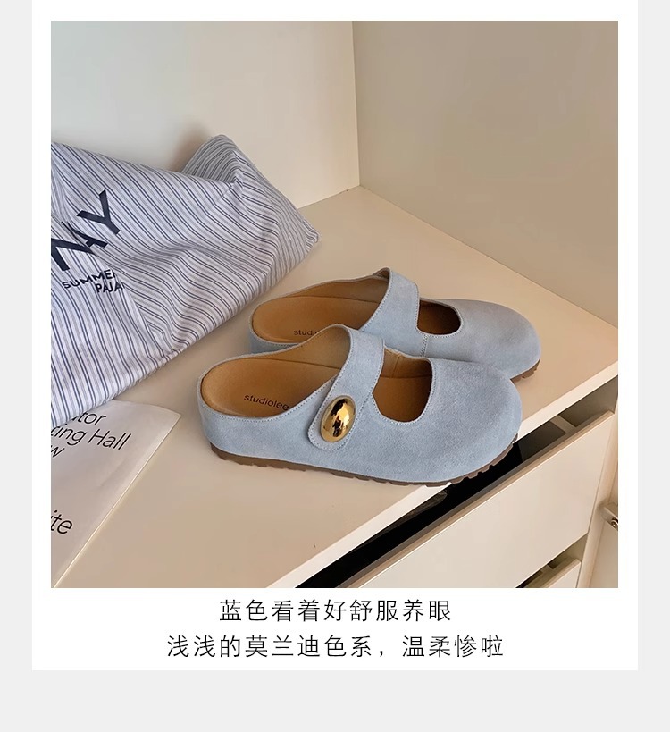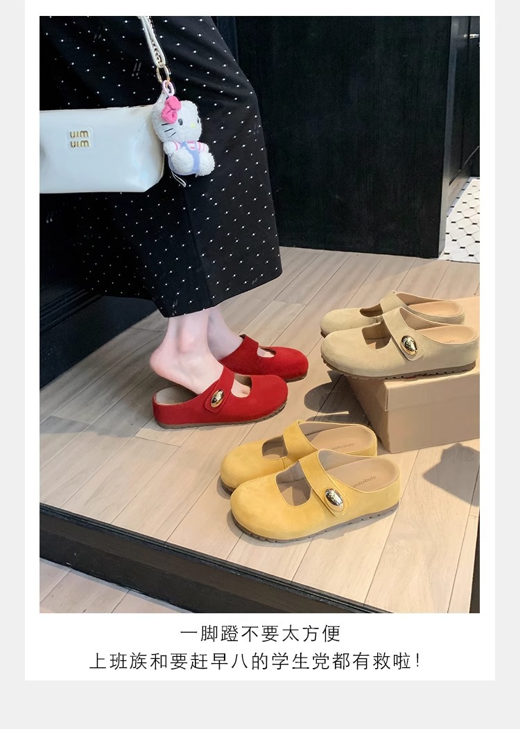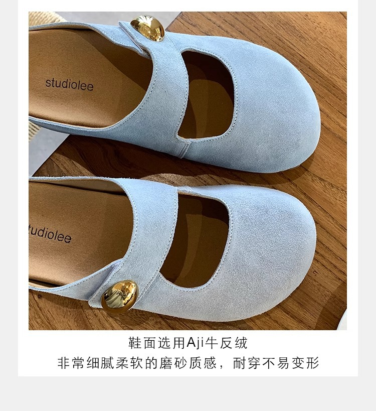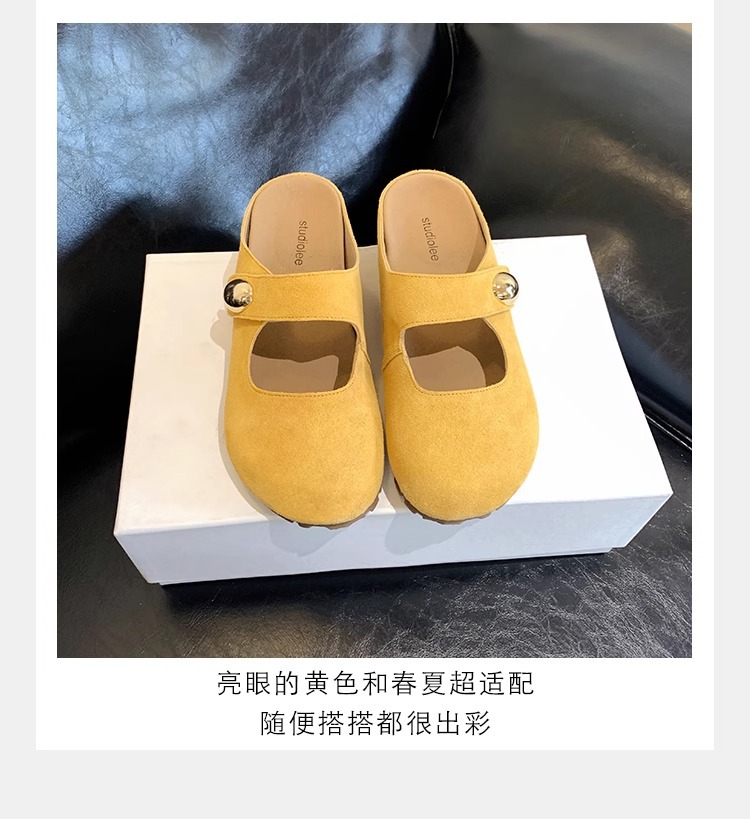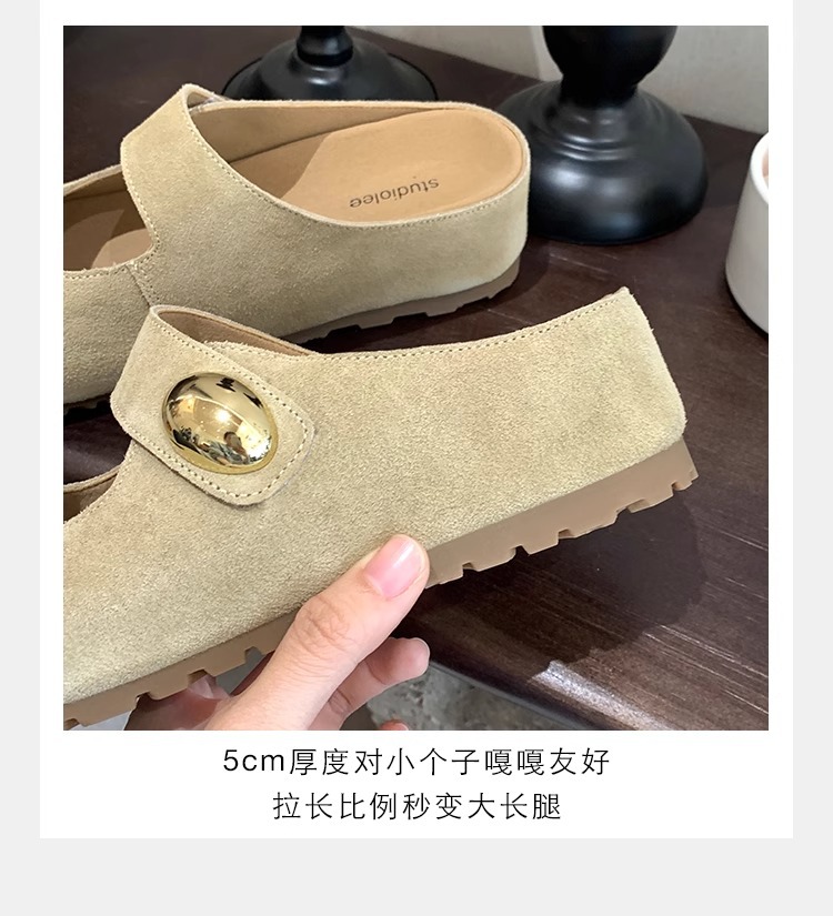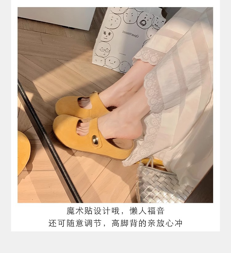 El nuevo estilo de verano de Grape Mom aumenta 5cm ~ Xiaojindou cabeza redonda suave linda Mary Jane suela gruesa media pantuflas mujer