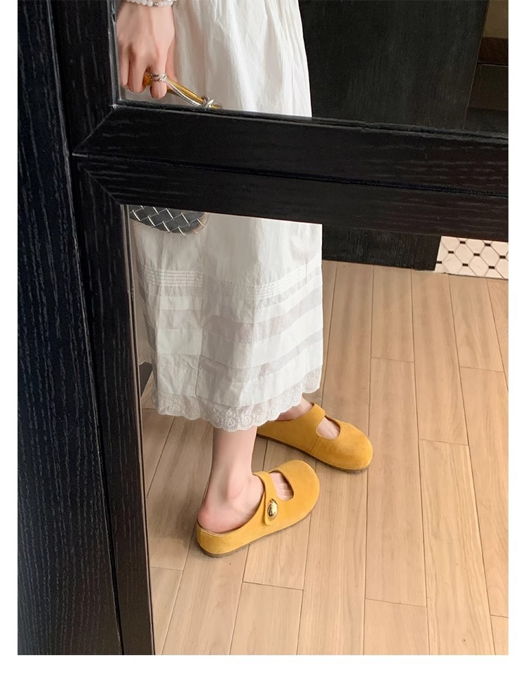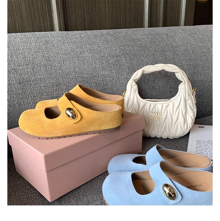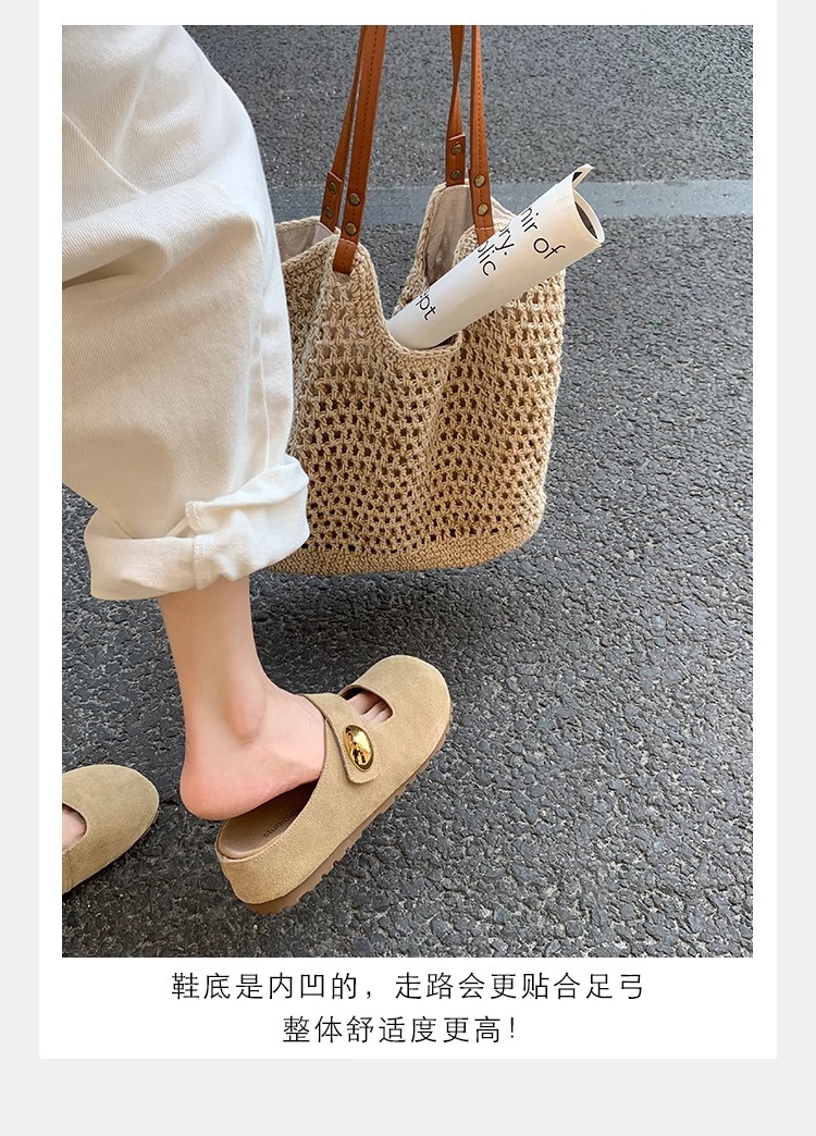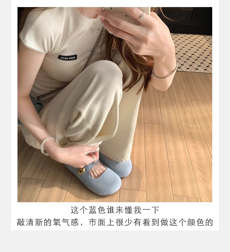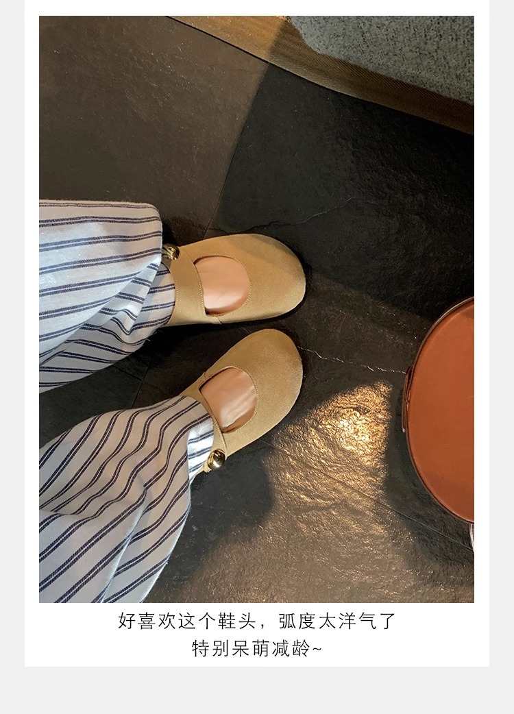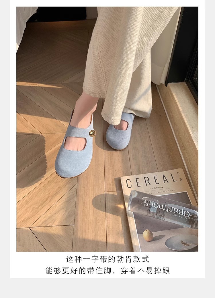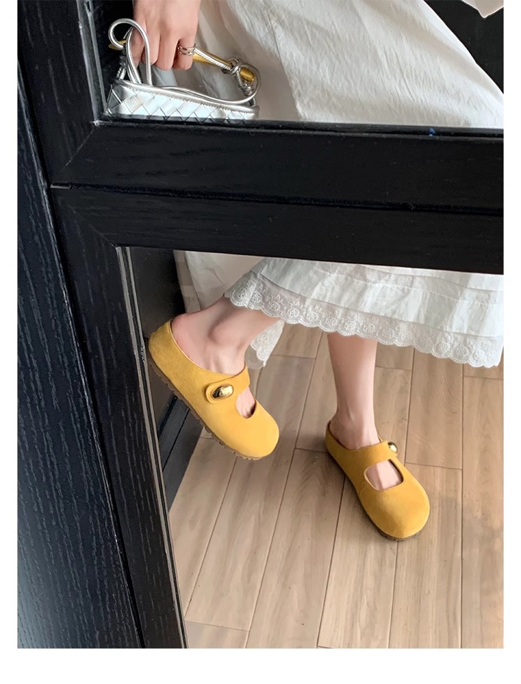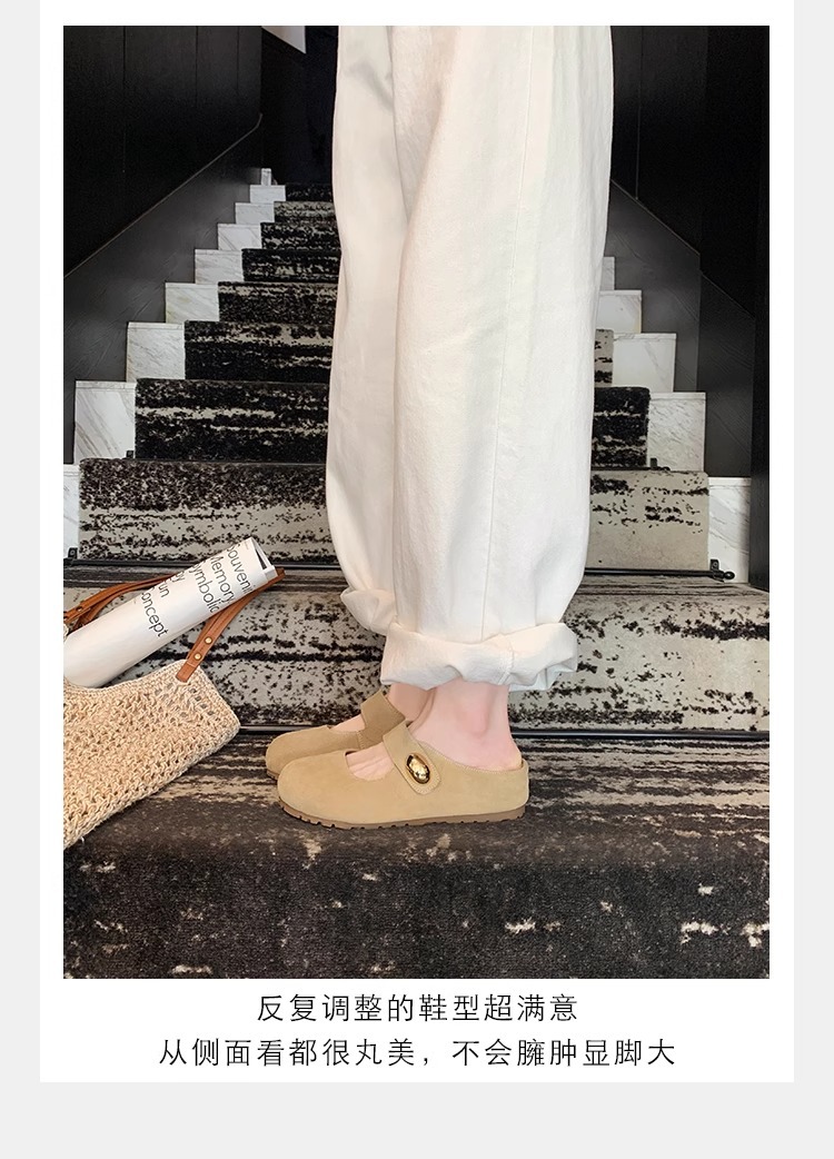 El nuevo estilo de verano de Grape Mom aumenta 5cm ~ Xiaojindou cabeza redonda suave linda Mary Jane suela gruesa media pantuflas mujer