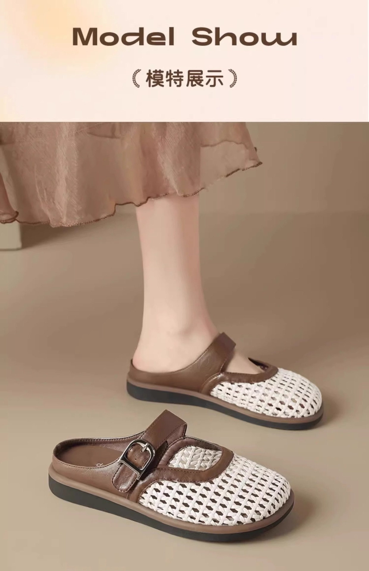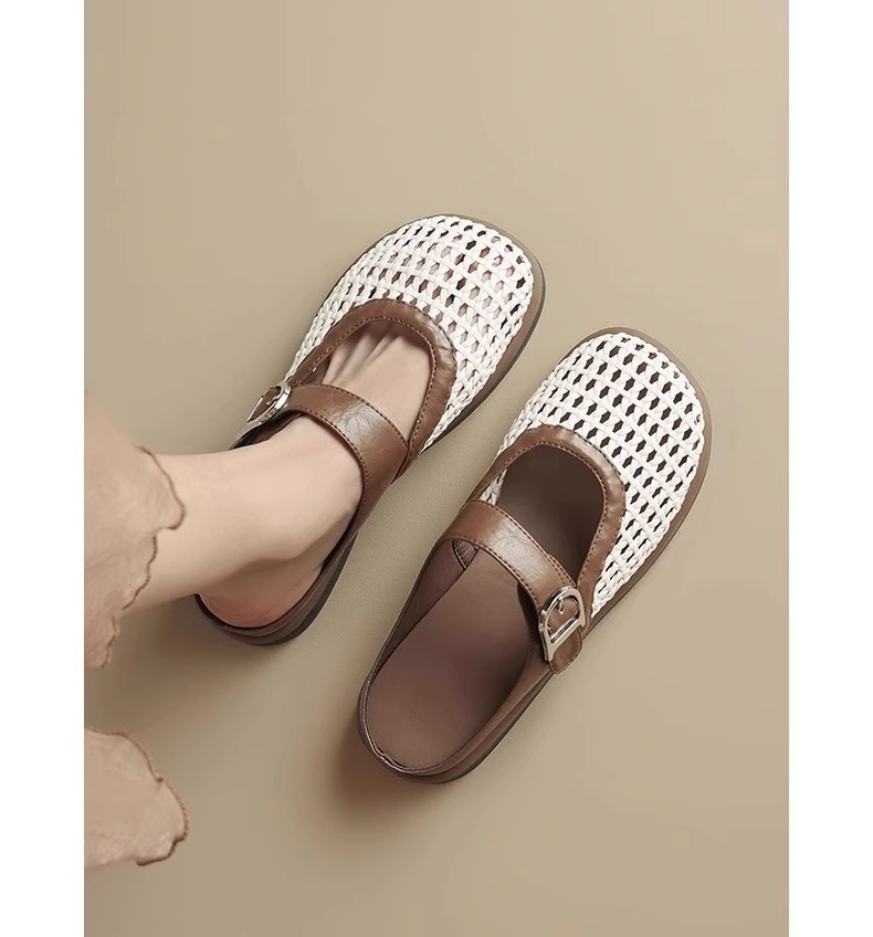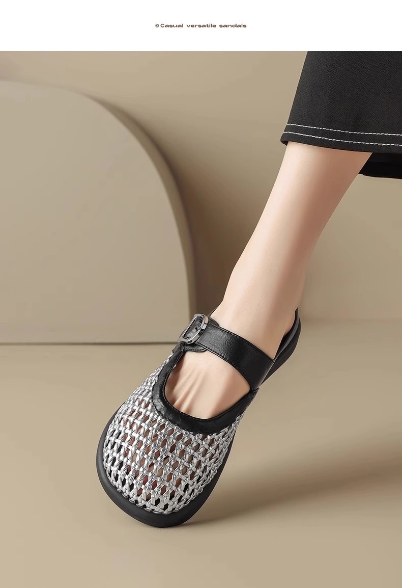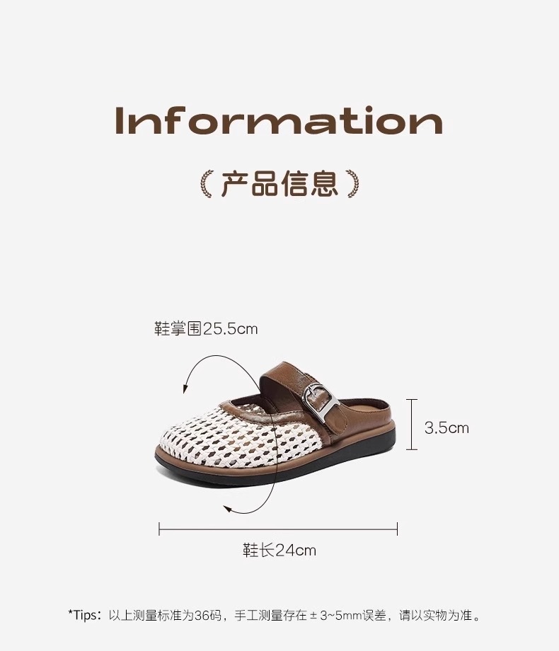 [Su Yinyin mismo párrafo] Hilo de malla streamer ~ Red de diamantes de imitación hebilla transpirable Baotou vacaciones zapatillas mujer medio arrastre verano