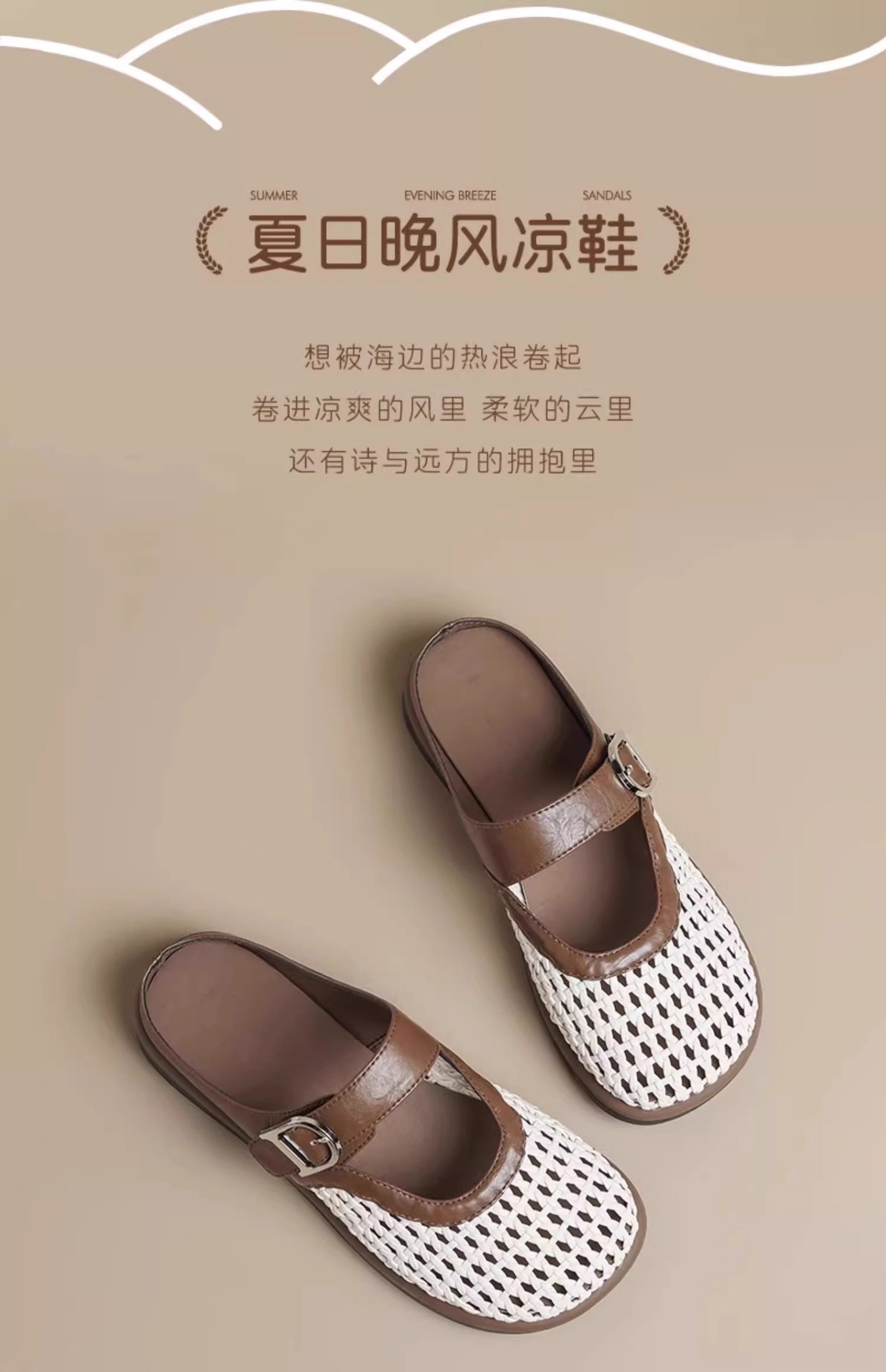Chica mansión ~ Verano nuevo estilo francés elegante retro plataforma de una sola palabra pantuflas de punta abierta de verano para mujer