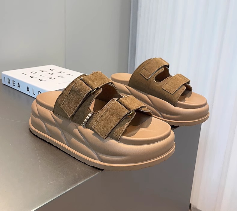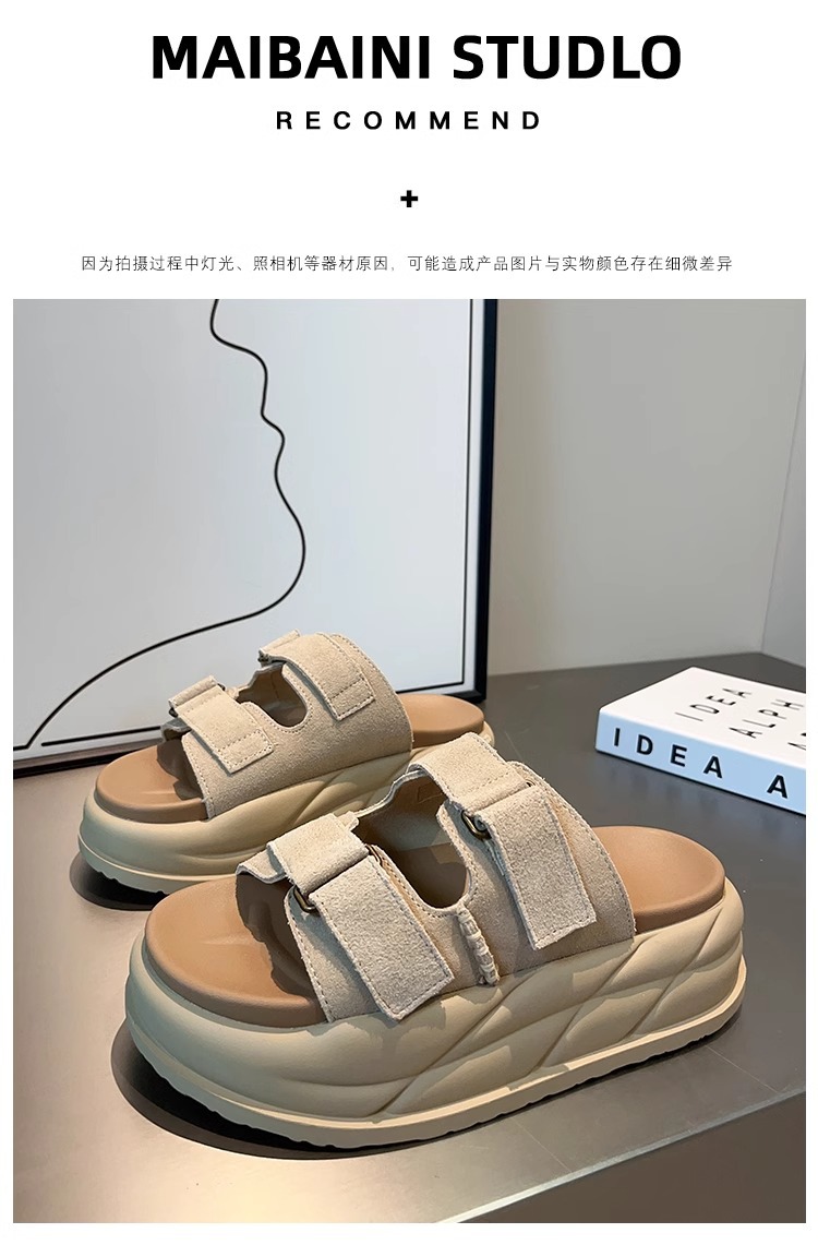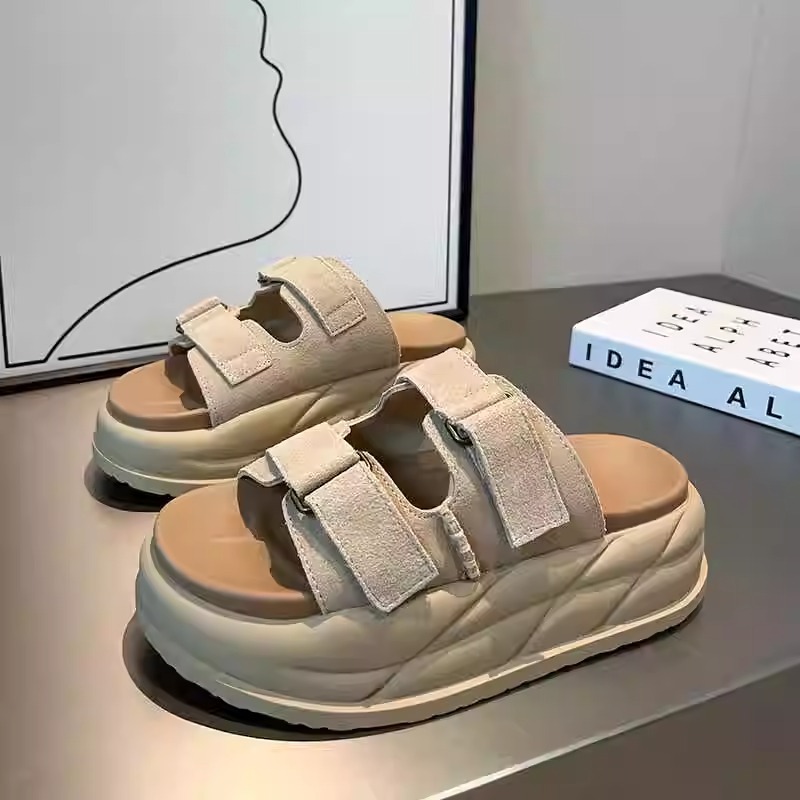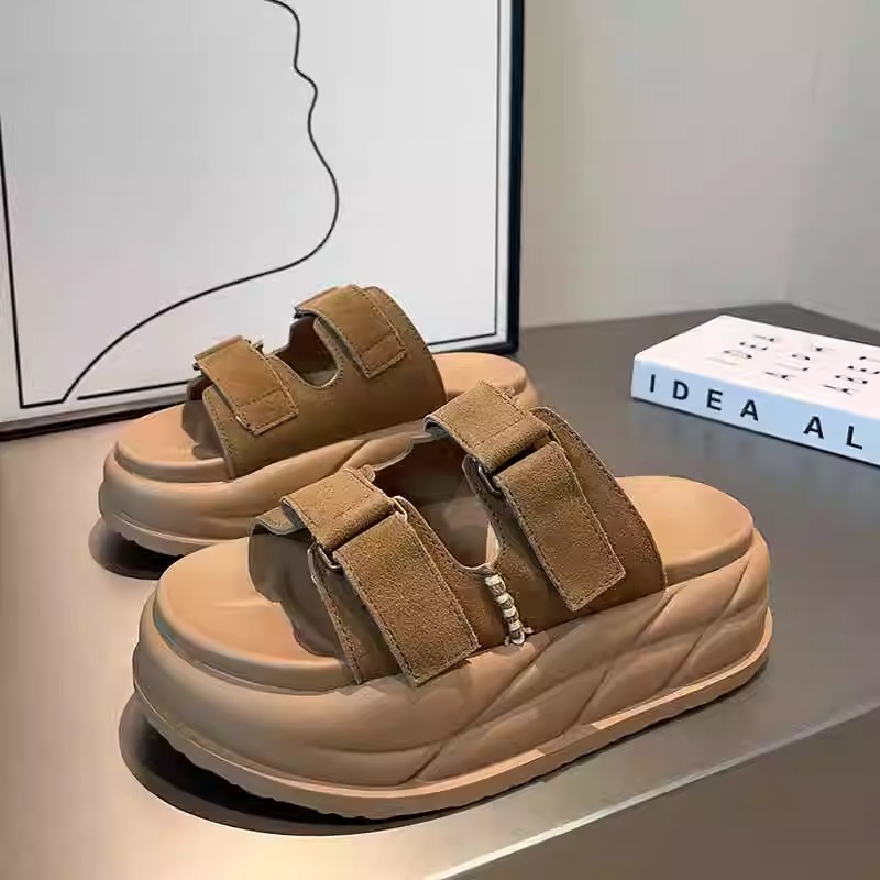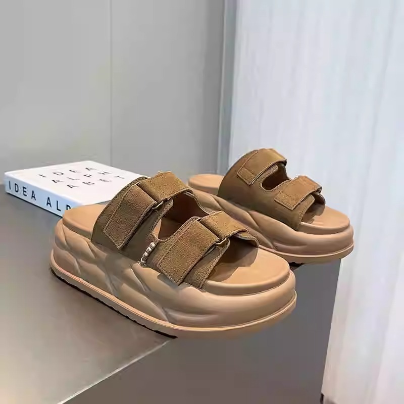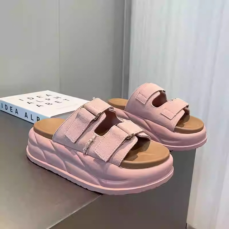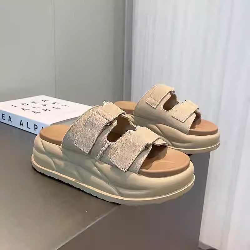 Pantuflas de suela gruesa con velcro en relieve de alta calidad para mujer, verano 2026, sandalias versátiles casuales con relieve para parejas, tallas grandes.