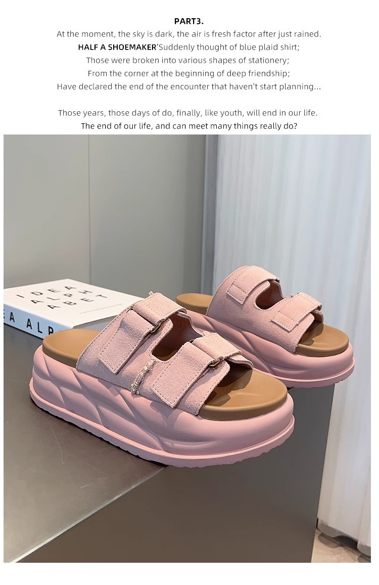 La marea no es sur ~ Pantuflas de suela gruesa súper suaves para mujer, uso de verano 2025, bizcocho, estilo de vacaciones de celebridades de Internet, sandalias y zapatillas de pan de una palabra