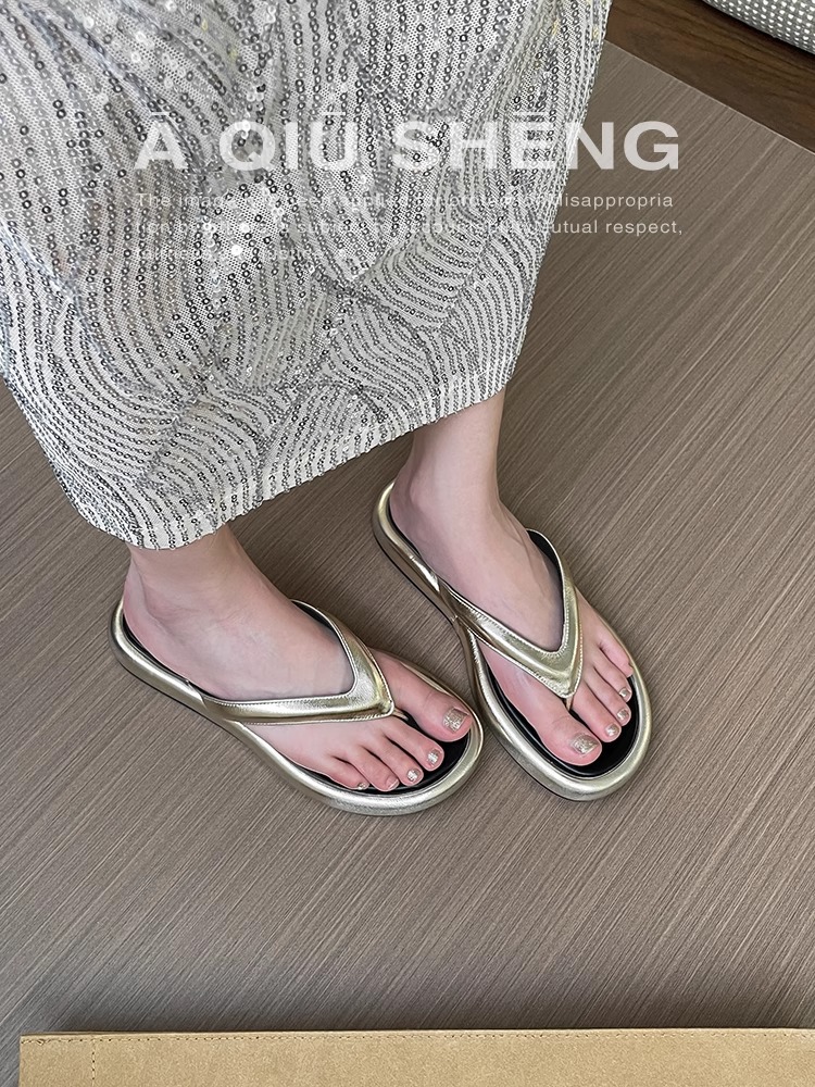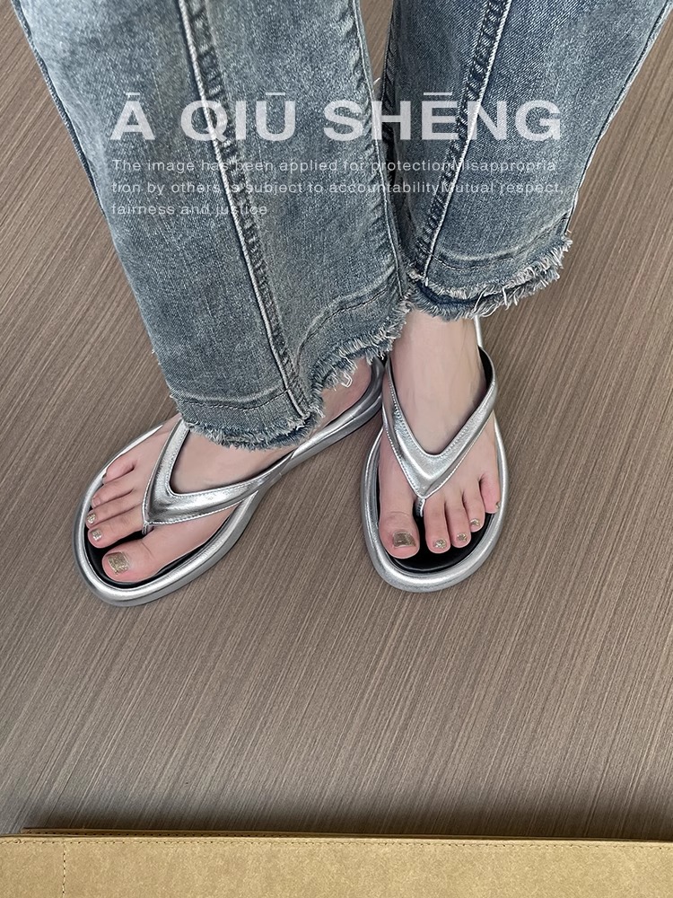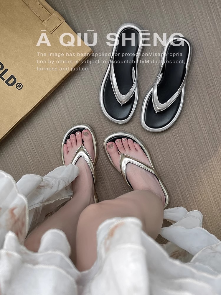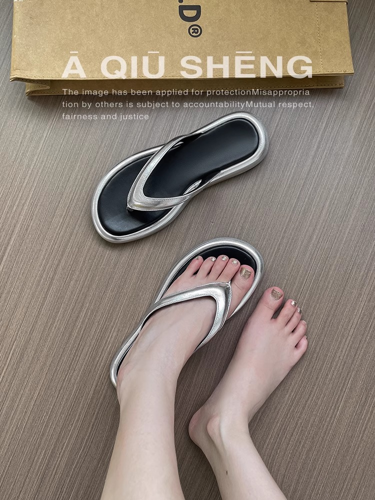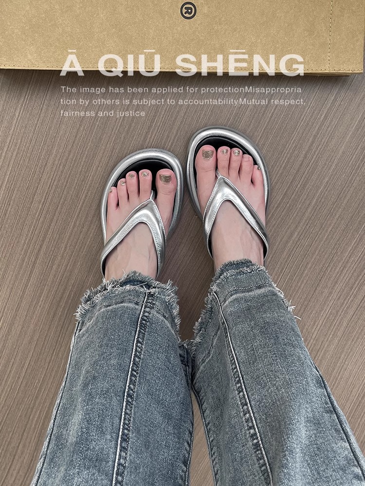 Chao no sur ~ flip flops para mujeres 2025 nuevo verano exterior plano zapatillas de mujer zapatillas de plata perezosas