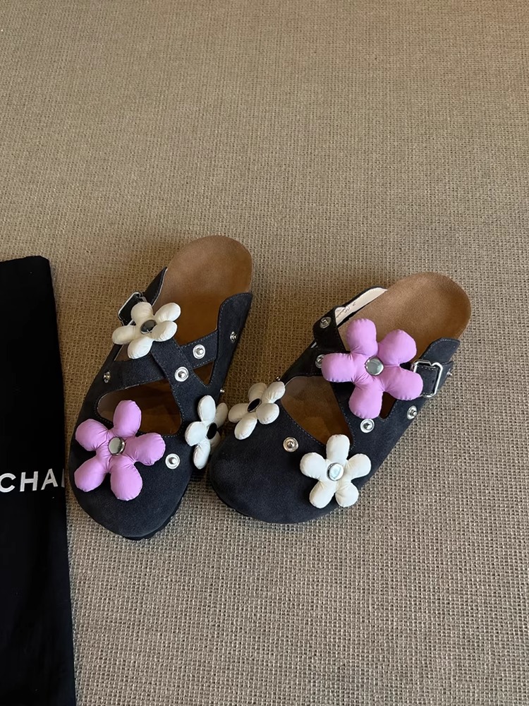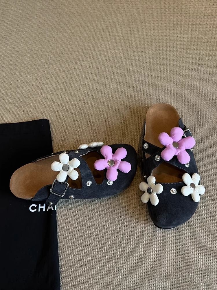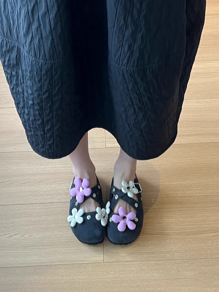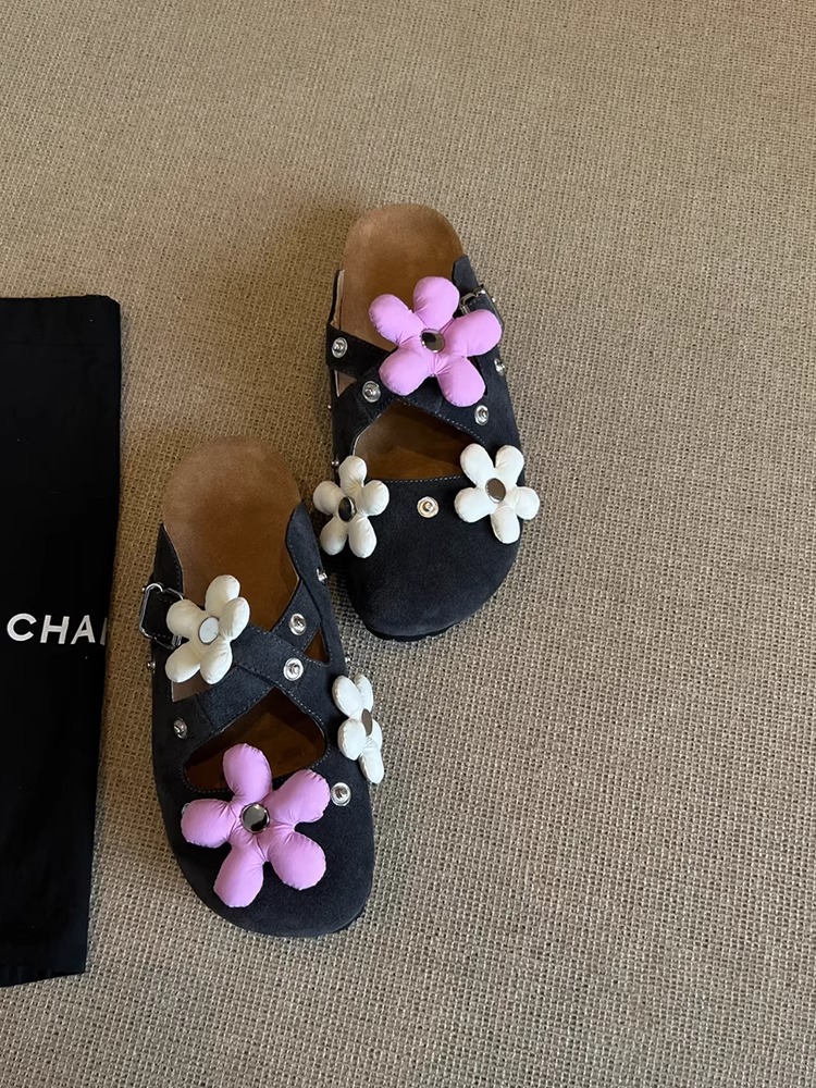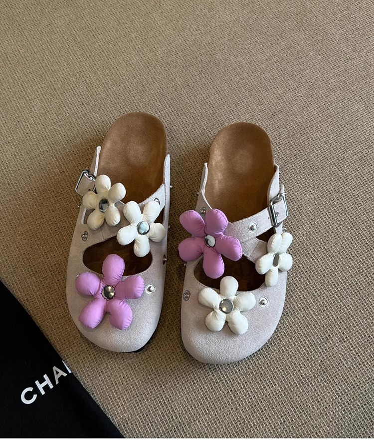 Versión de piel de oveja ~ Diseño de nicho hebilla de flor desmontable Birkenmuller zapatos mujer remache retro suela gruesa zapatillas de puntera