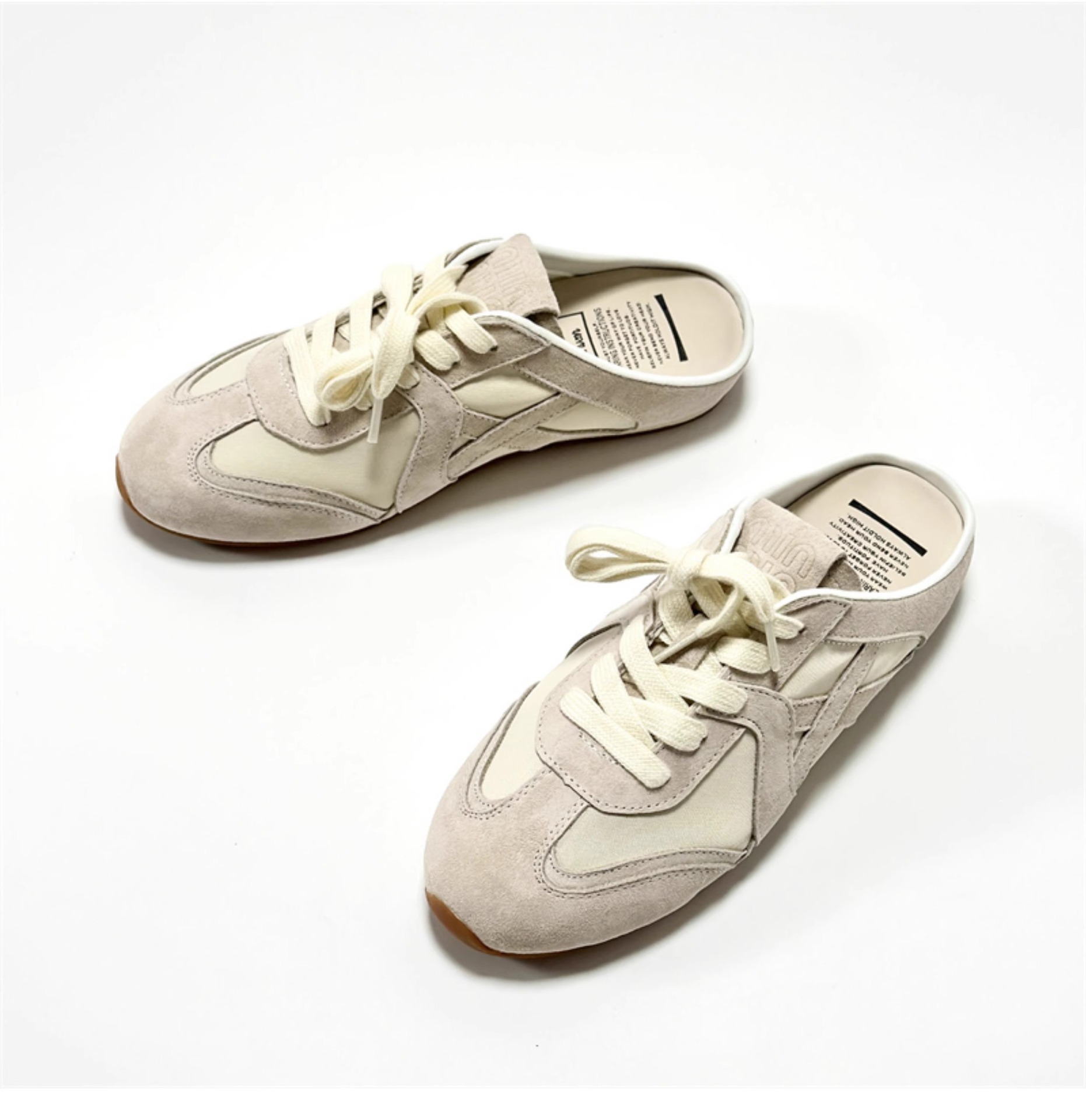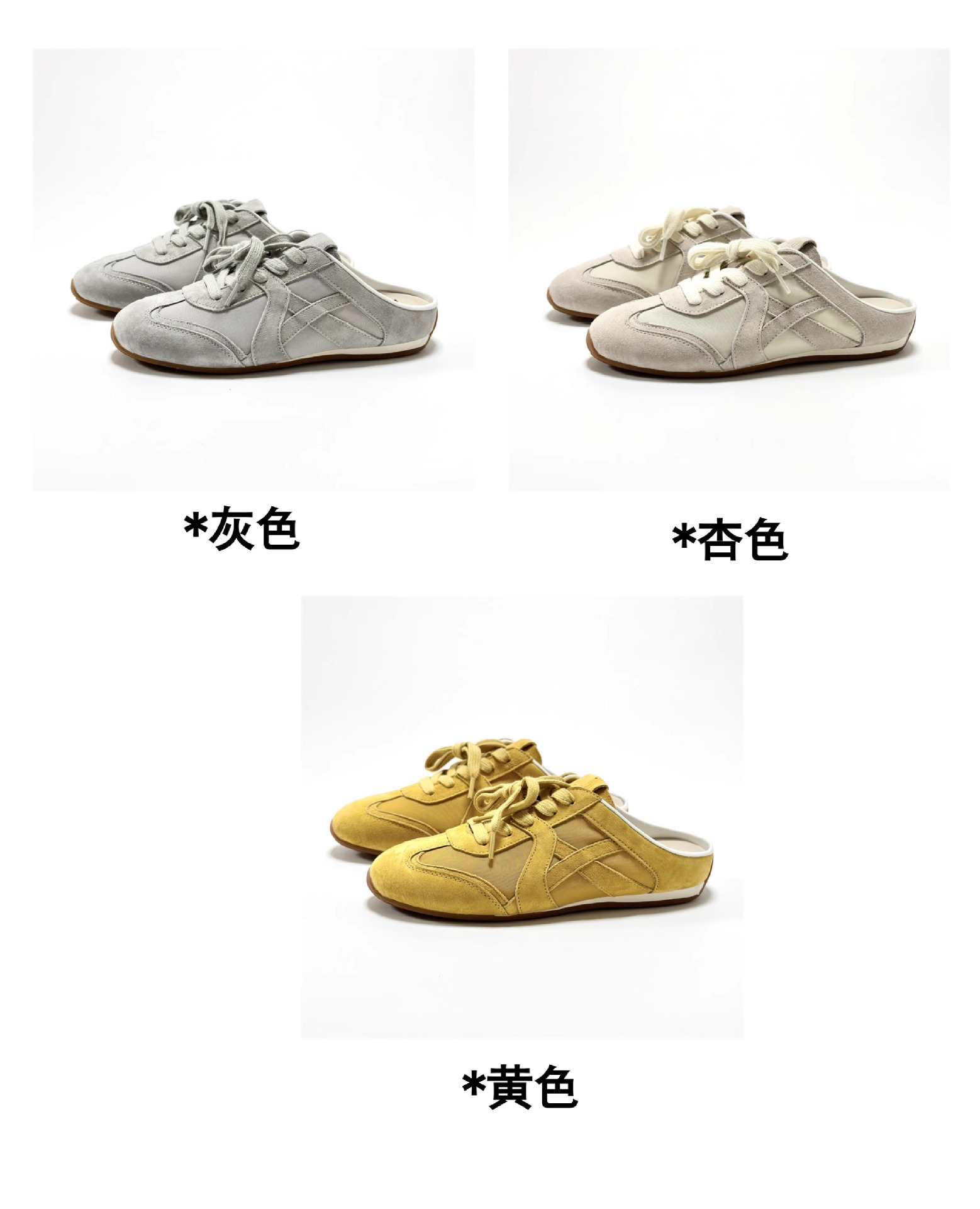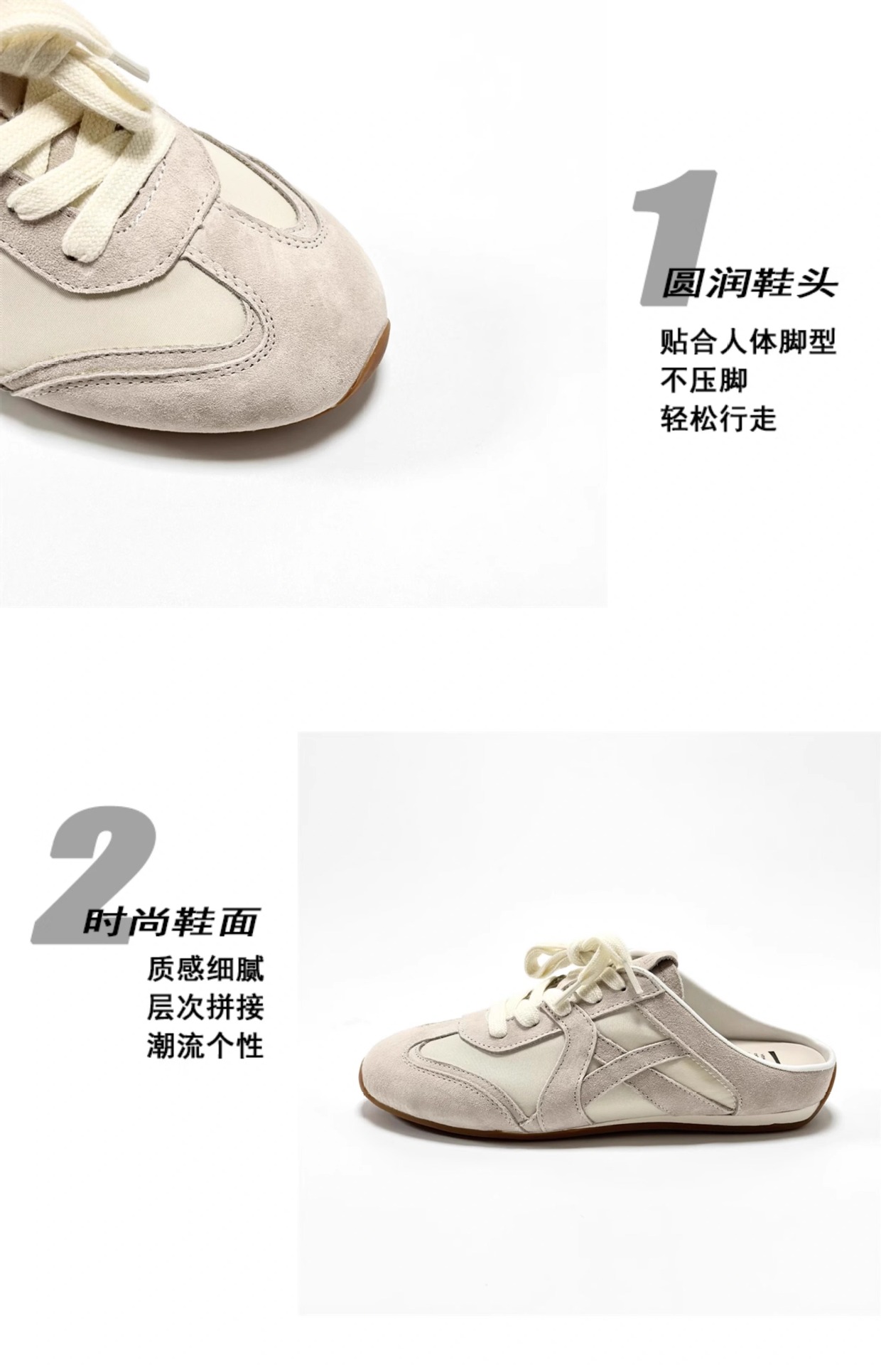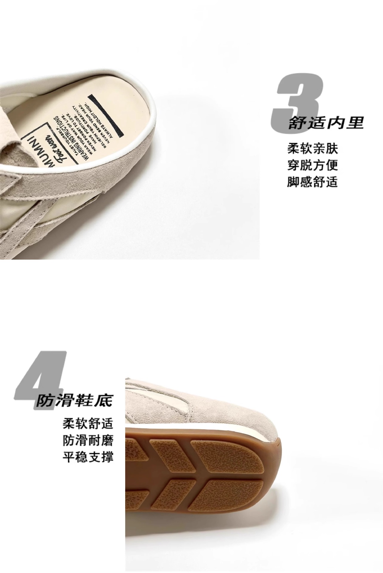 Versión coreana de las medias pantuflas de entrenamiento alemán para mujer, ropa exterior de verano, medias pantuflas de cuero a juego de color plano, zapatos blancos perezosos sin tacón