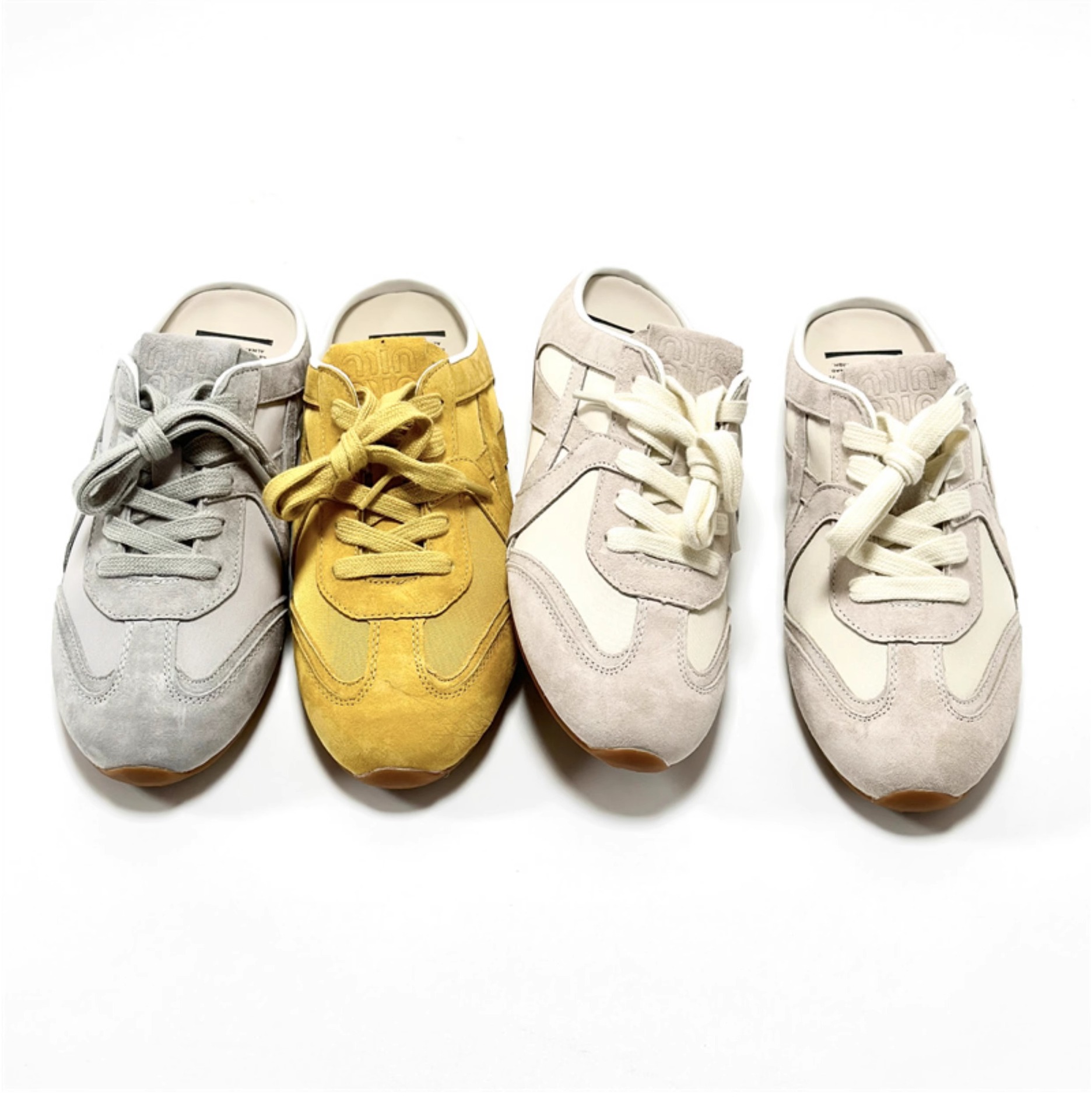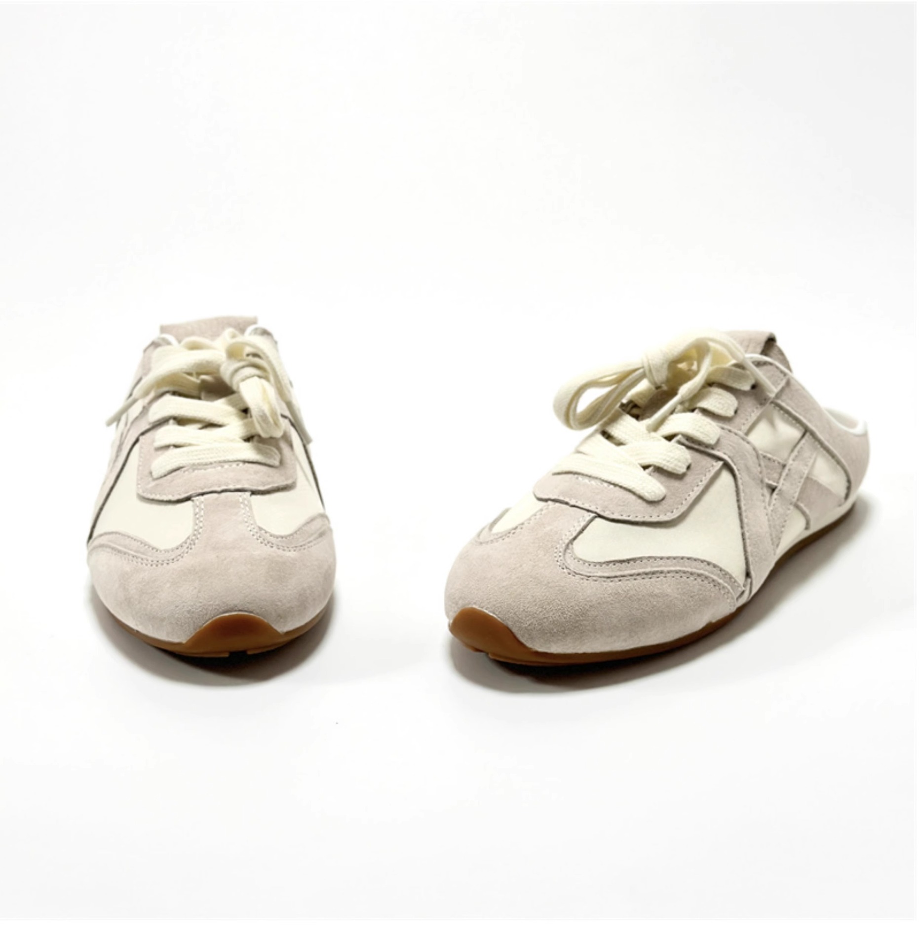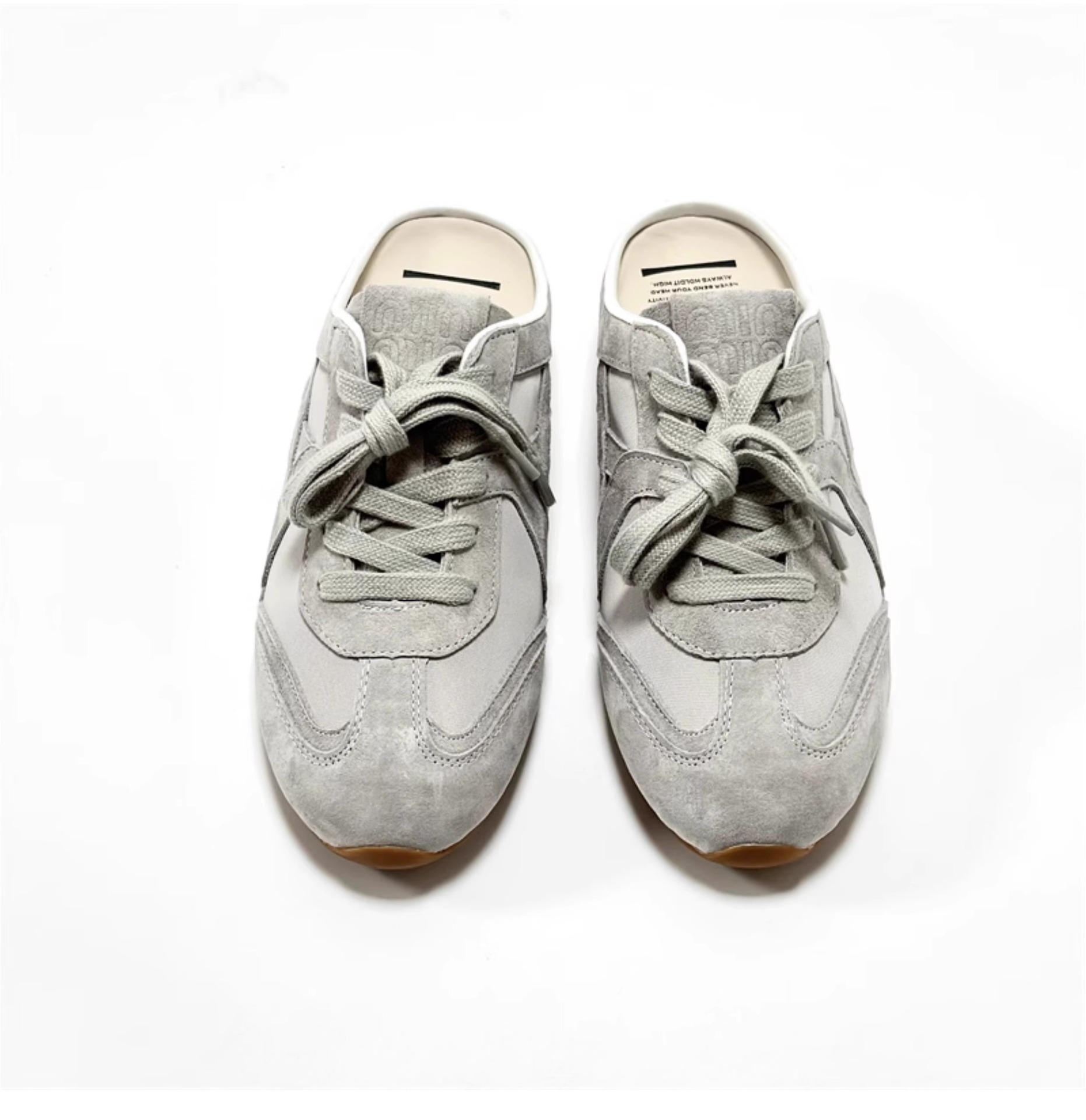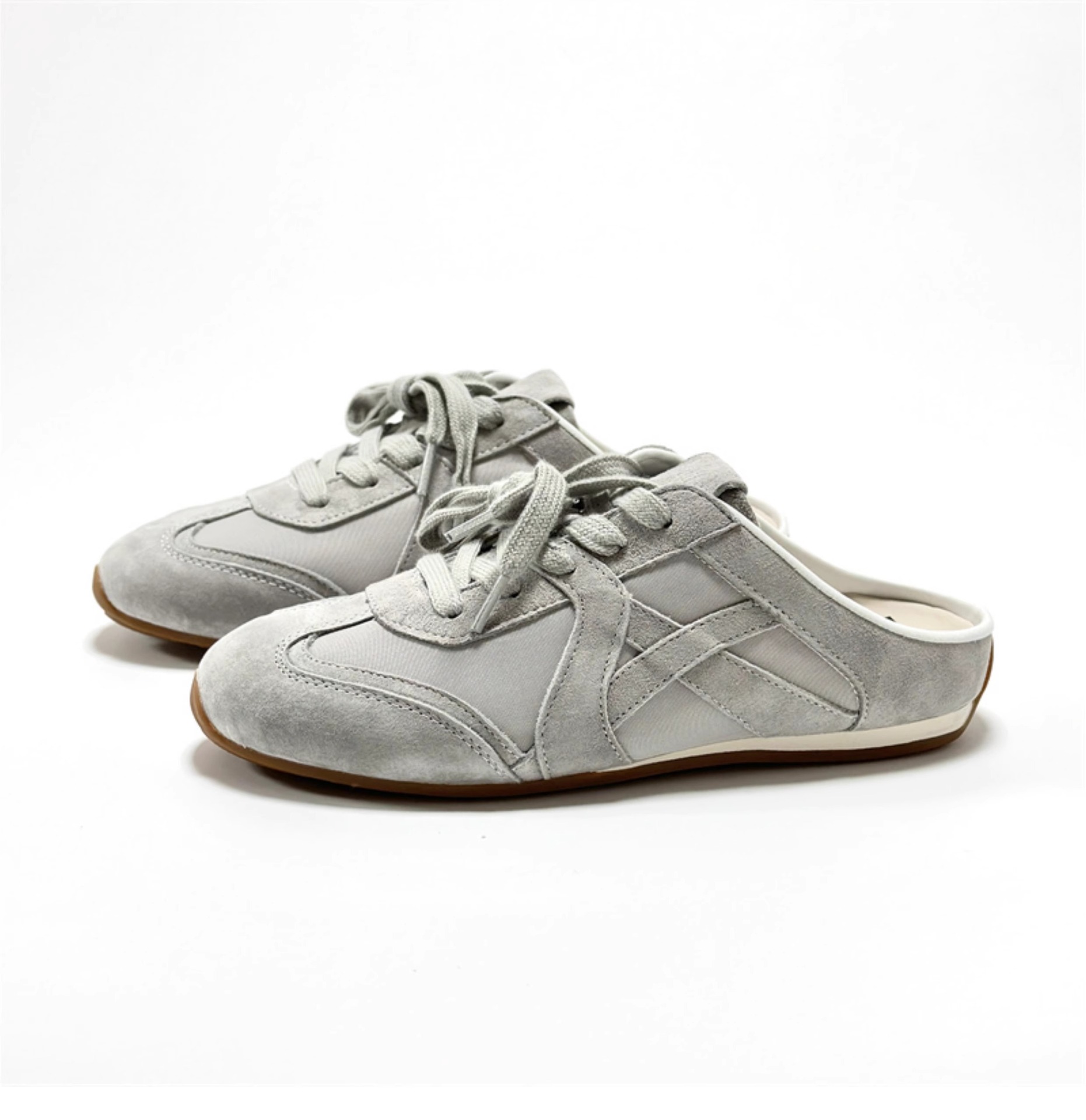 Versión coreana de las medias pantuflas de entrenamiento alemán para mujer, ropa exterior de verano, medias pantuflas de cuero a juego de color plano, zapatos blancos perezosos sin tacón