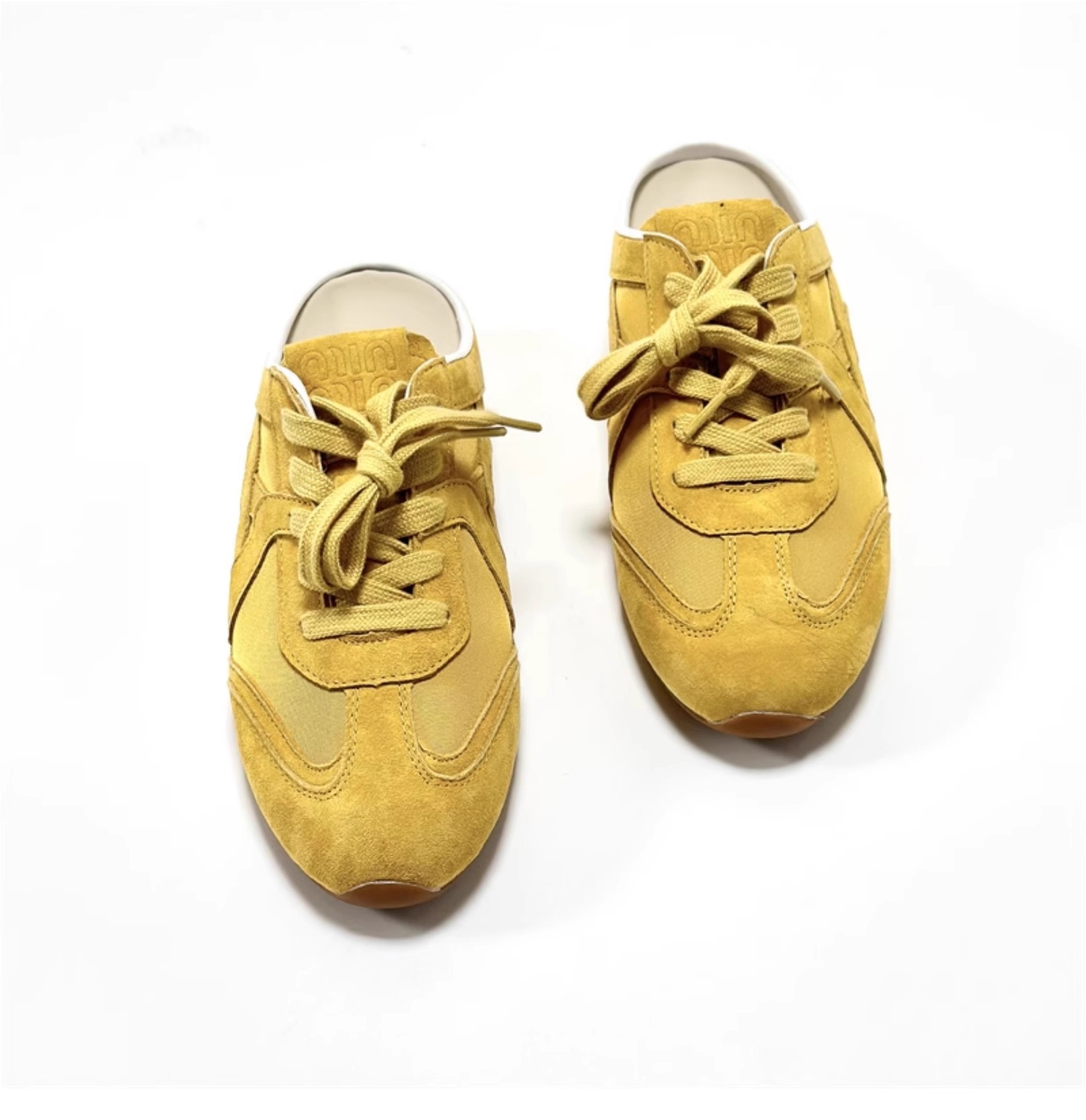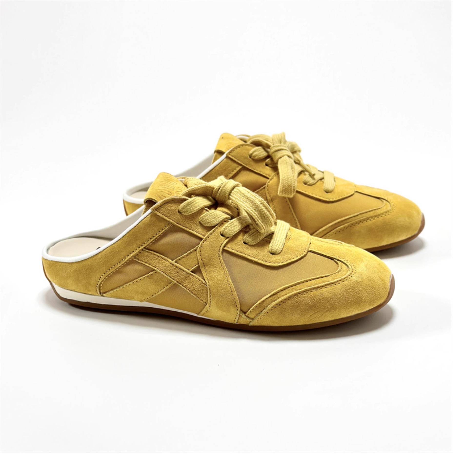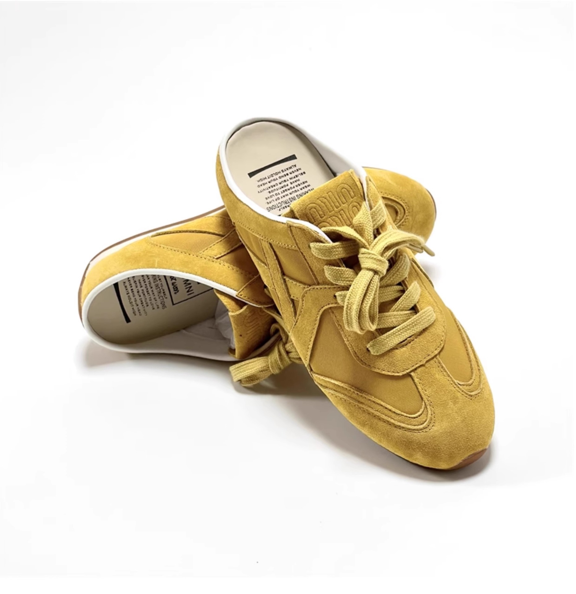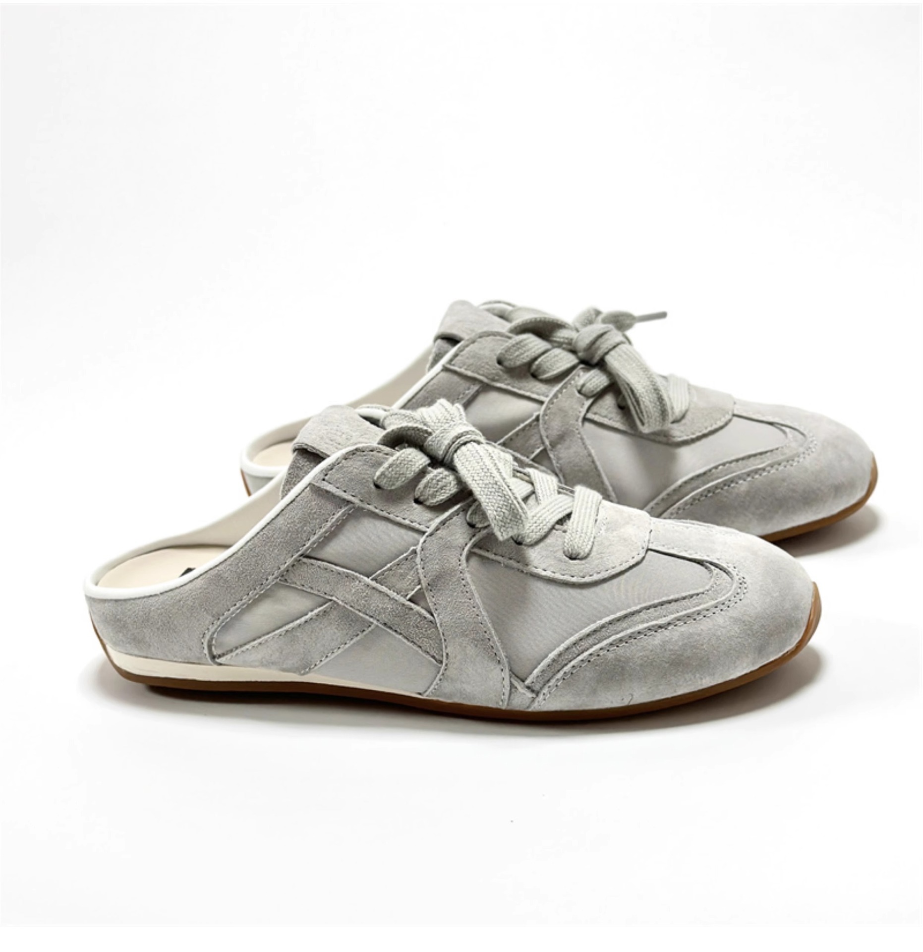 Versión coreana de las medias pantuflas de entrenamiento alemán para mujer, ropa exterior de verano, medias pantuflas de cuero a juego de color plano, zapatos blancos perezosos sin tacón