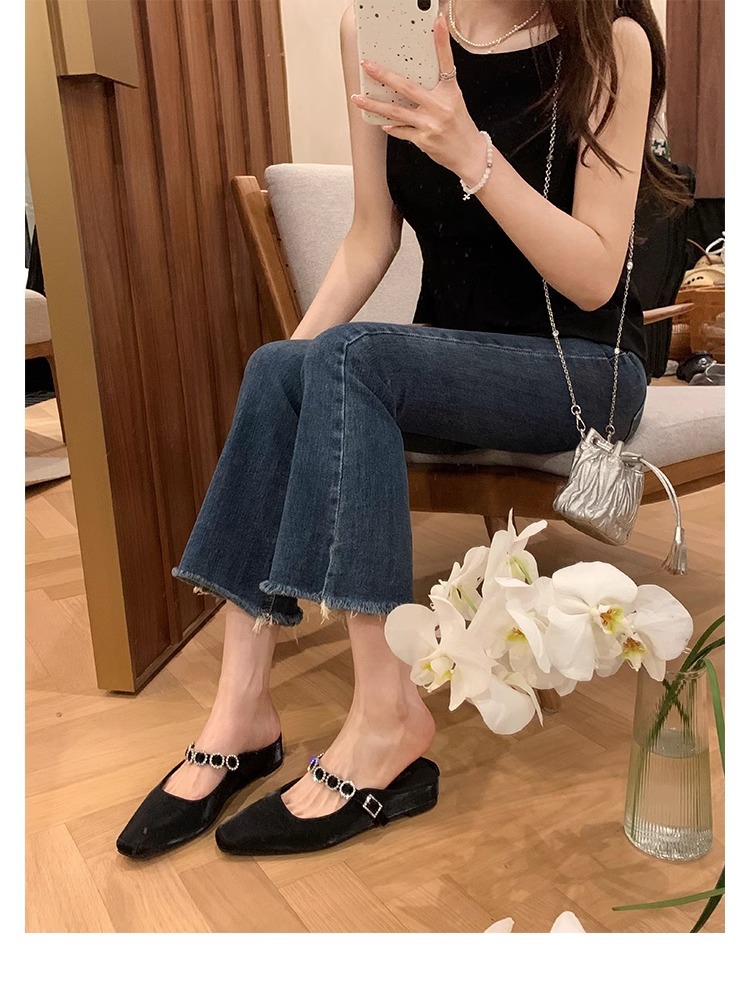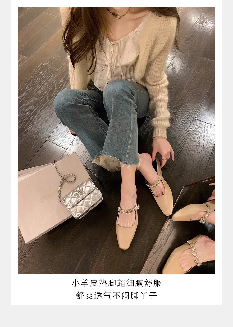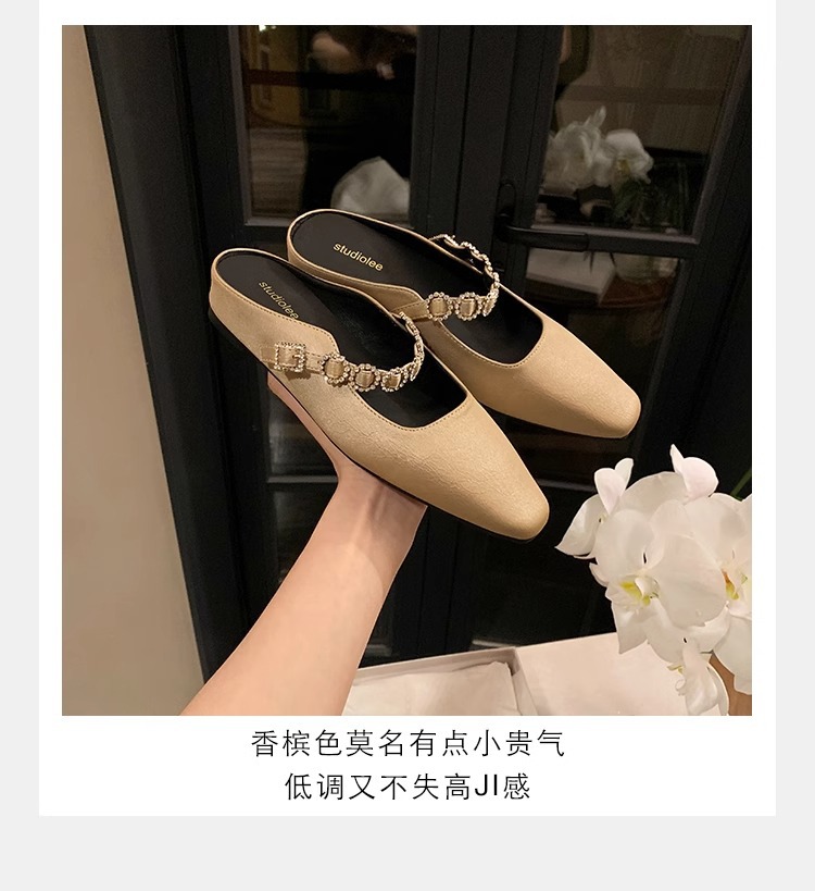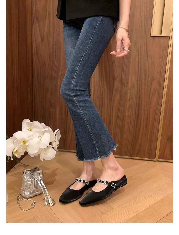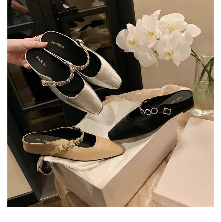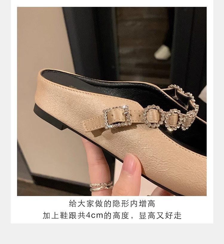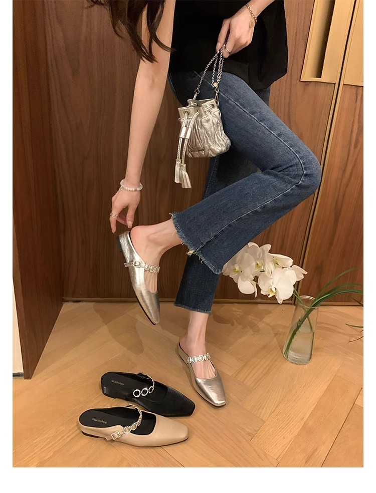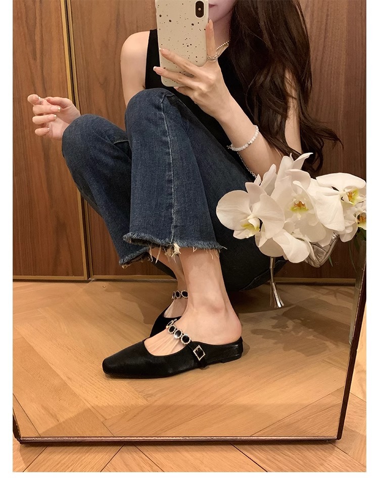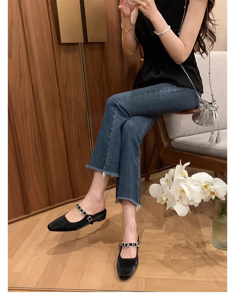 Media pantuflas de punta cuadrada con correa de taladro de una palabra