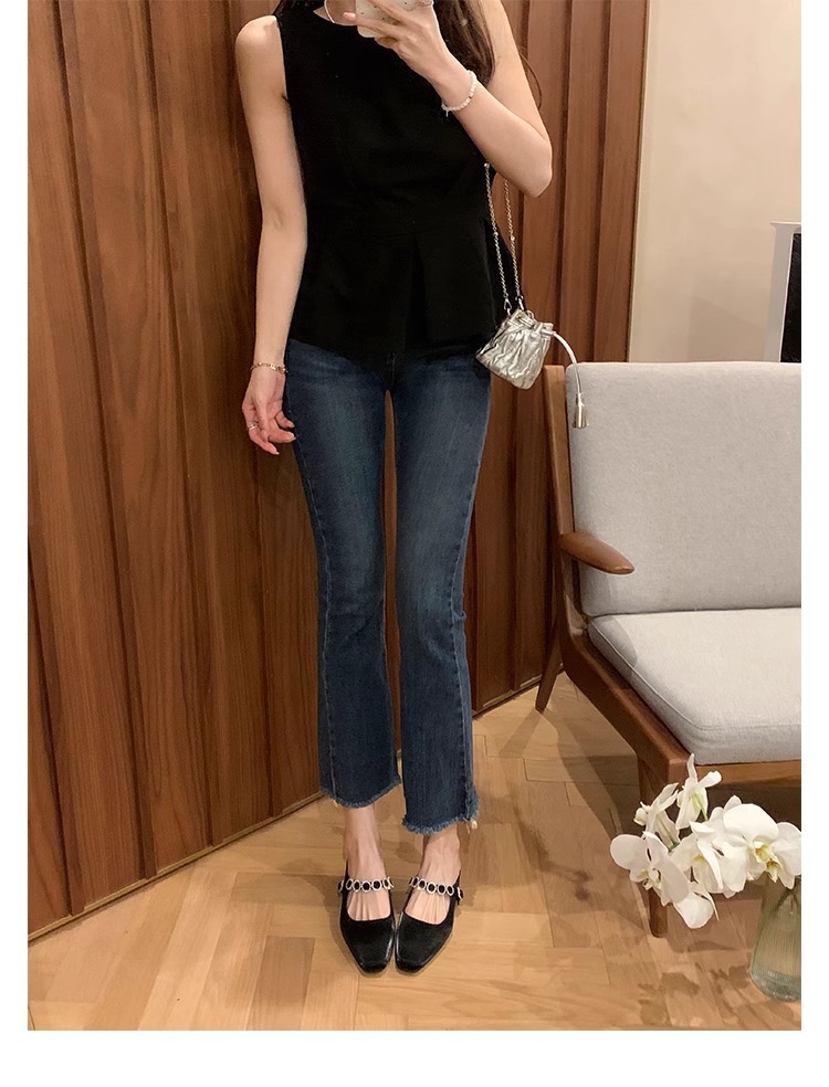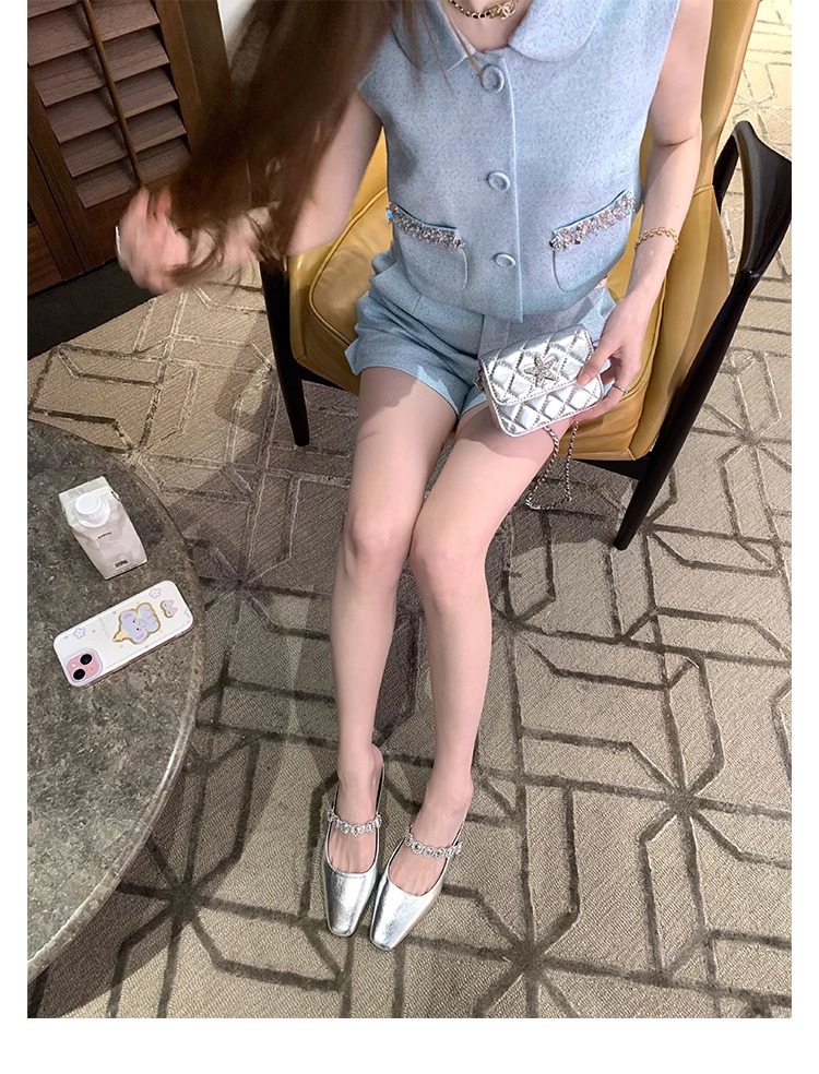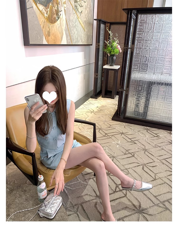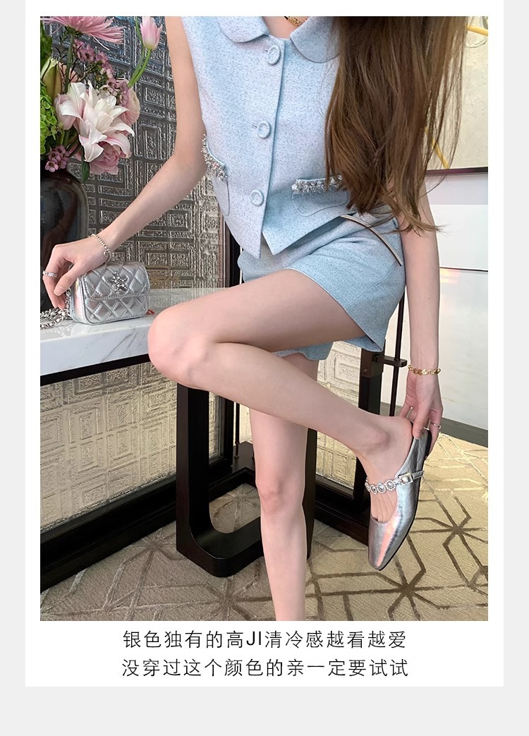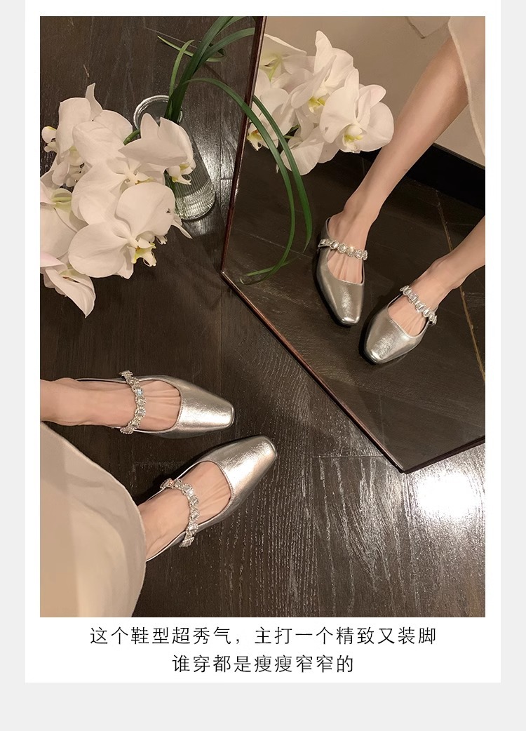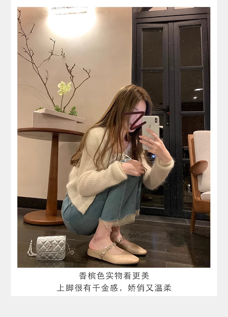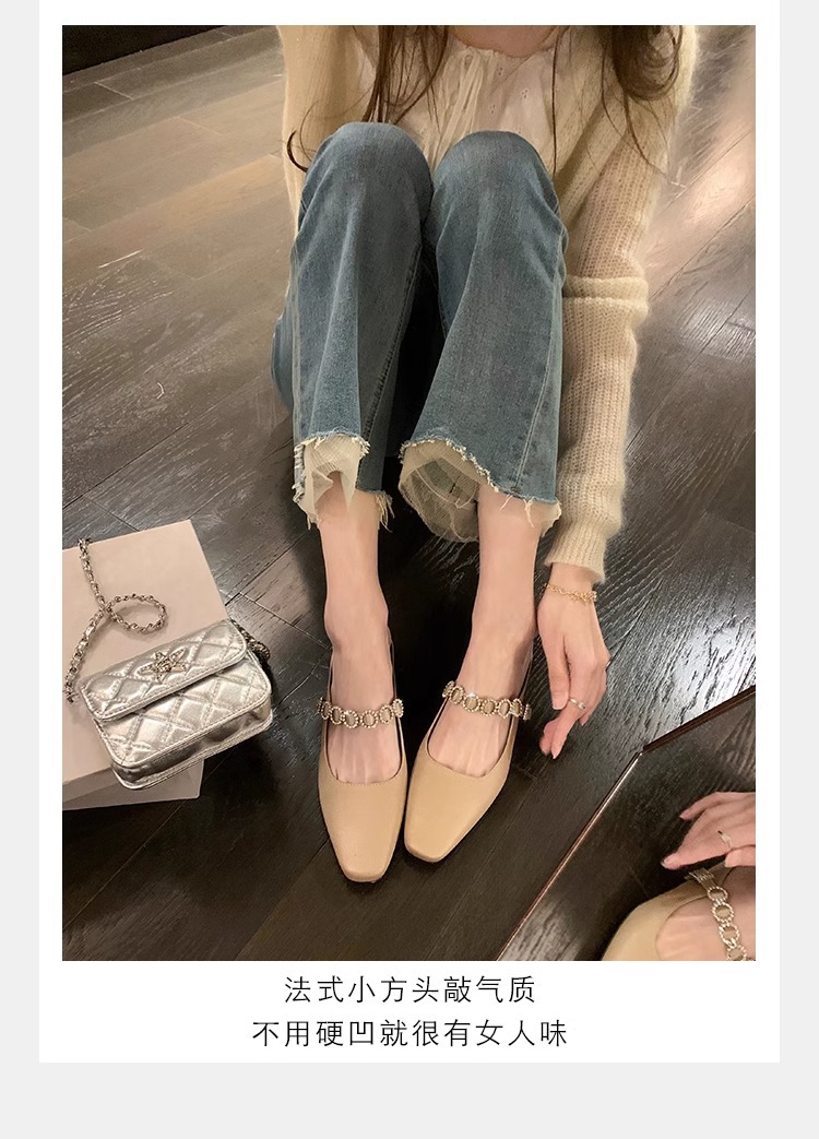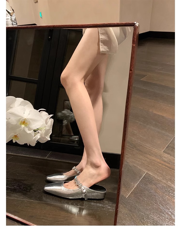 Media pantuflas de punta cuadrada con correa de taladro de una palabra