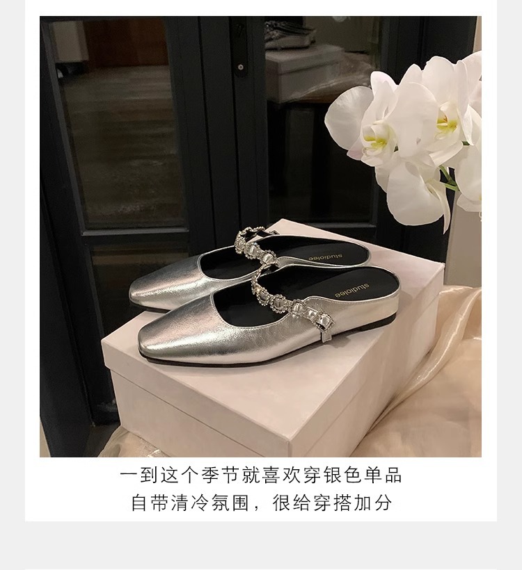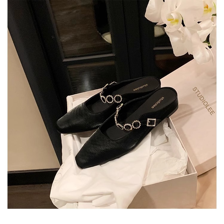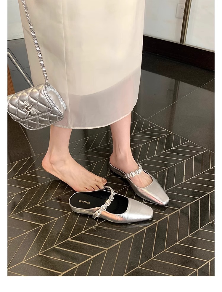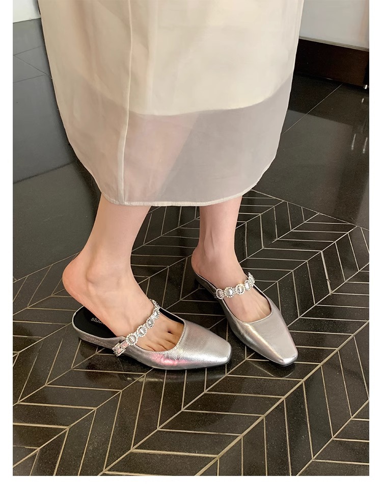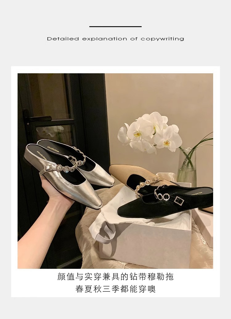 2025 verano diamantes de imitación diamantes red de pesca Baotou cabeza grande Baotou medias pantuflas sandalias zapatos de Tobken zapatos planos de mujer