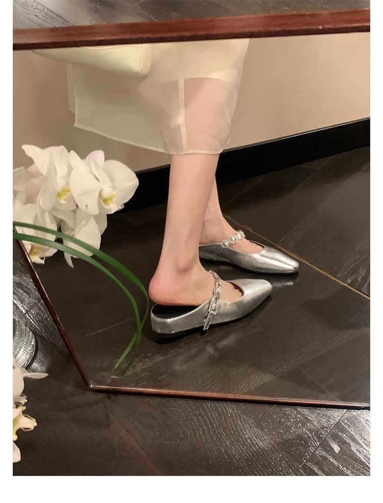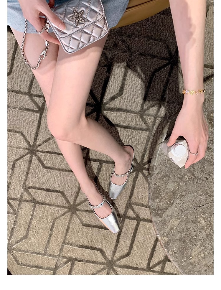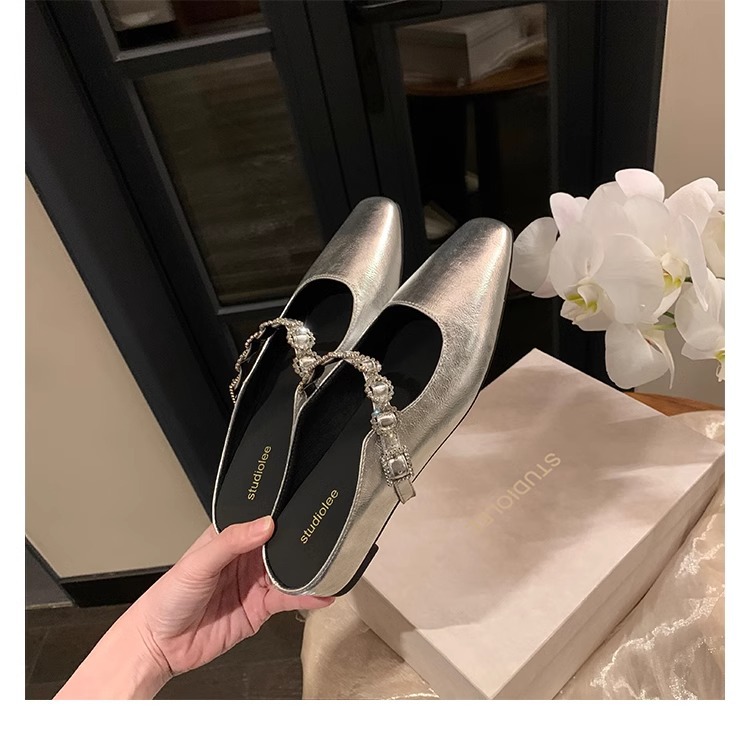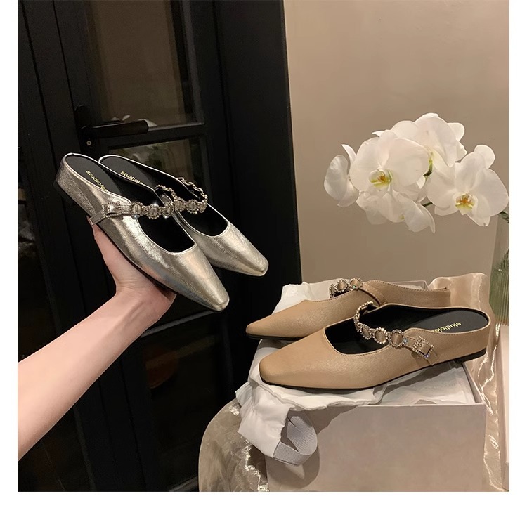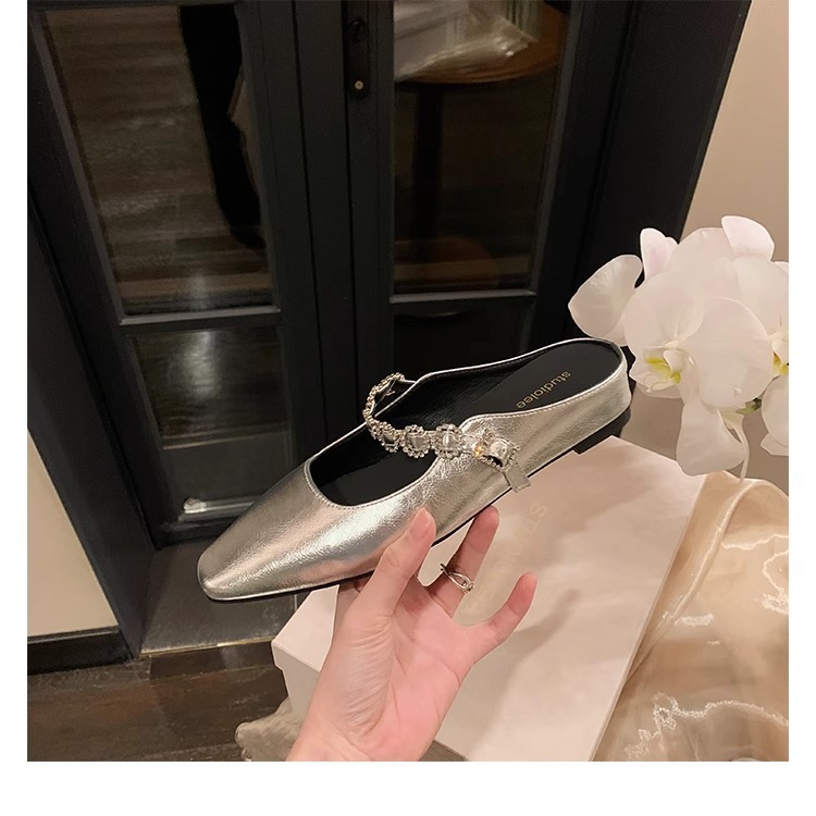 2025 verano diamantes de imitación diamantes red de pesca Baotou cabeza grande Baotou medias pantuflas sandalias zapatos de Tobken zapatos planos de mujer