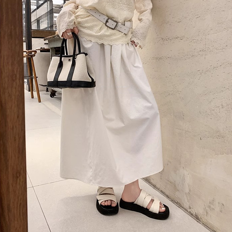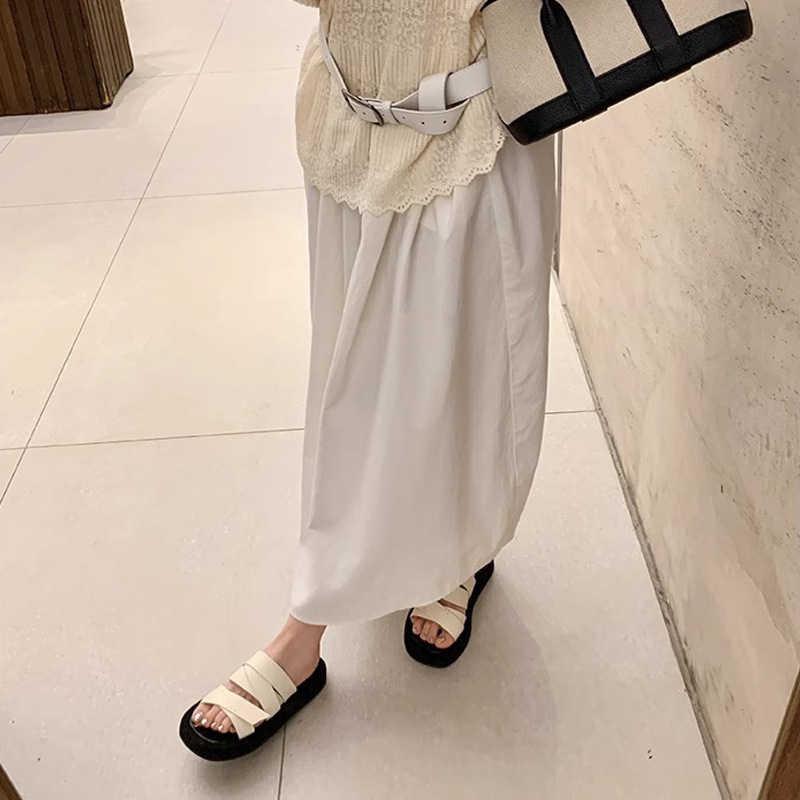 Duff Oguping para Baotou Semi-pantuflas mujeres de verano transpirable tejido con falda sandalias romanas