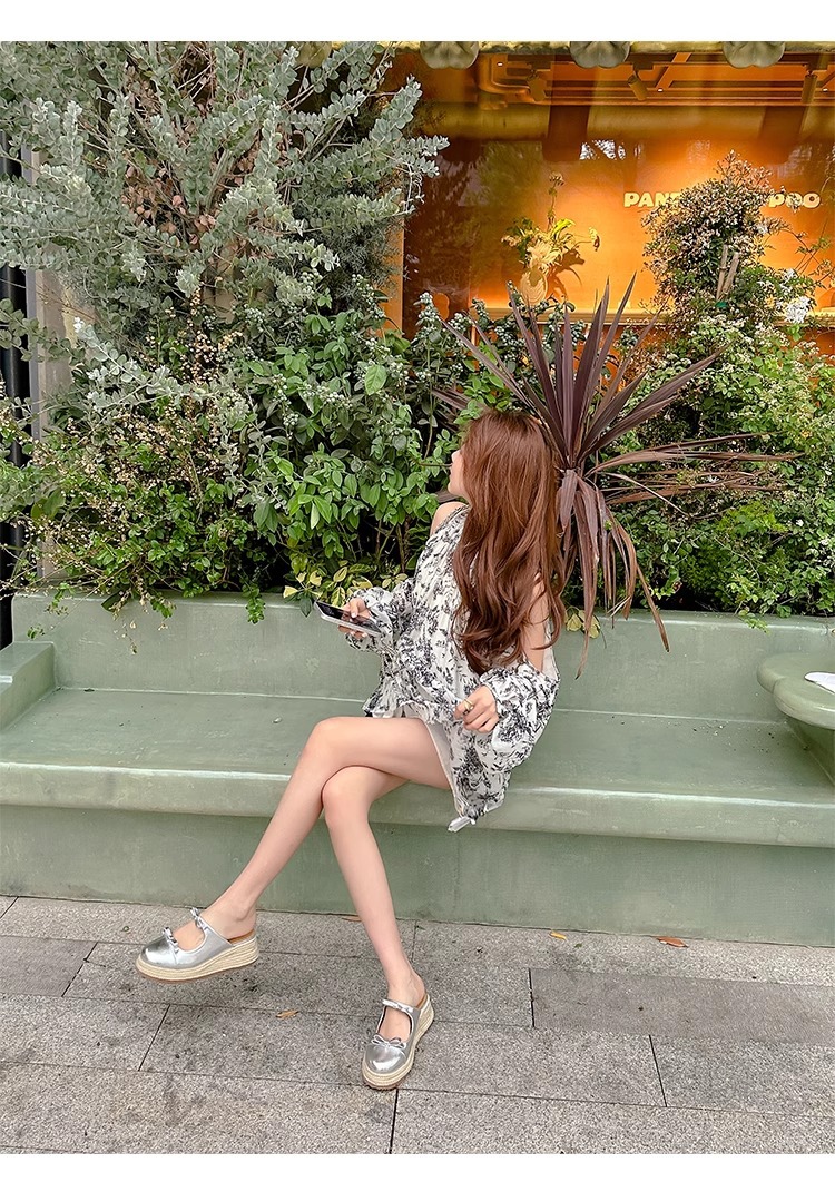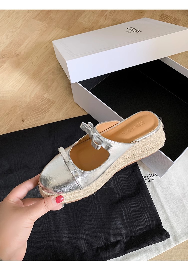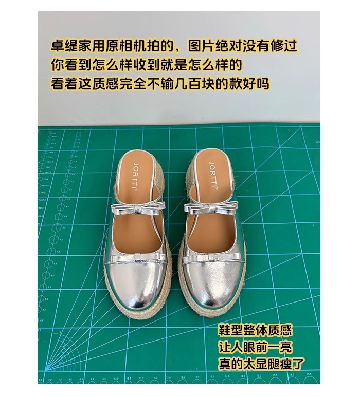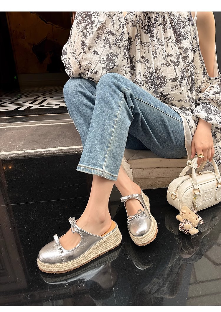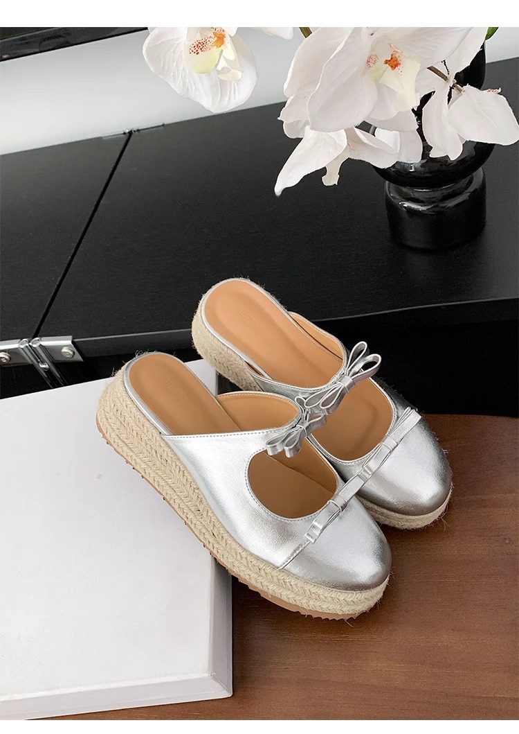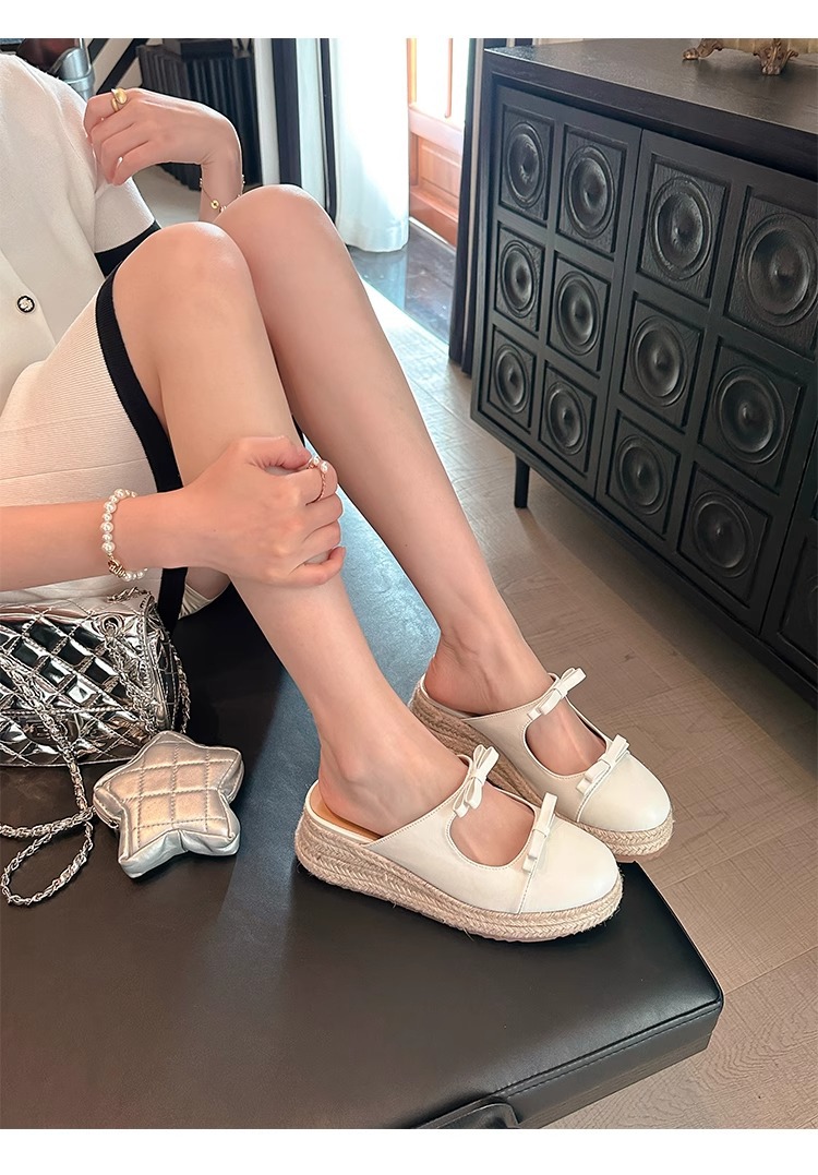 Versión de piel de oveja ~ Pastel de plataforma retro Baotou bowknot sandalias y zapatillas 2025 verano nuevo estilo ropa exterior media pantuflas mujeres