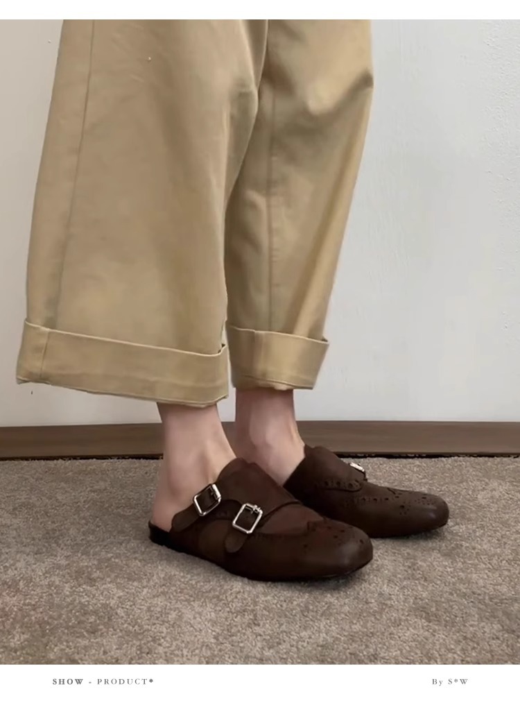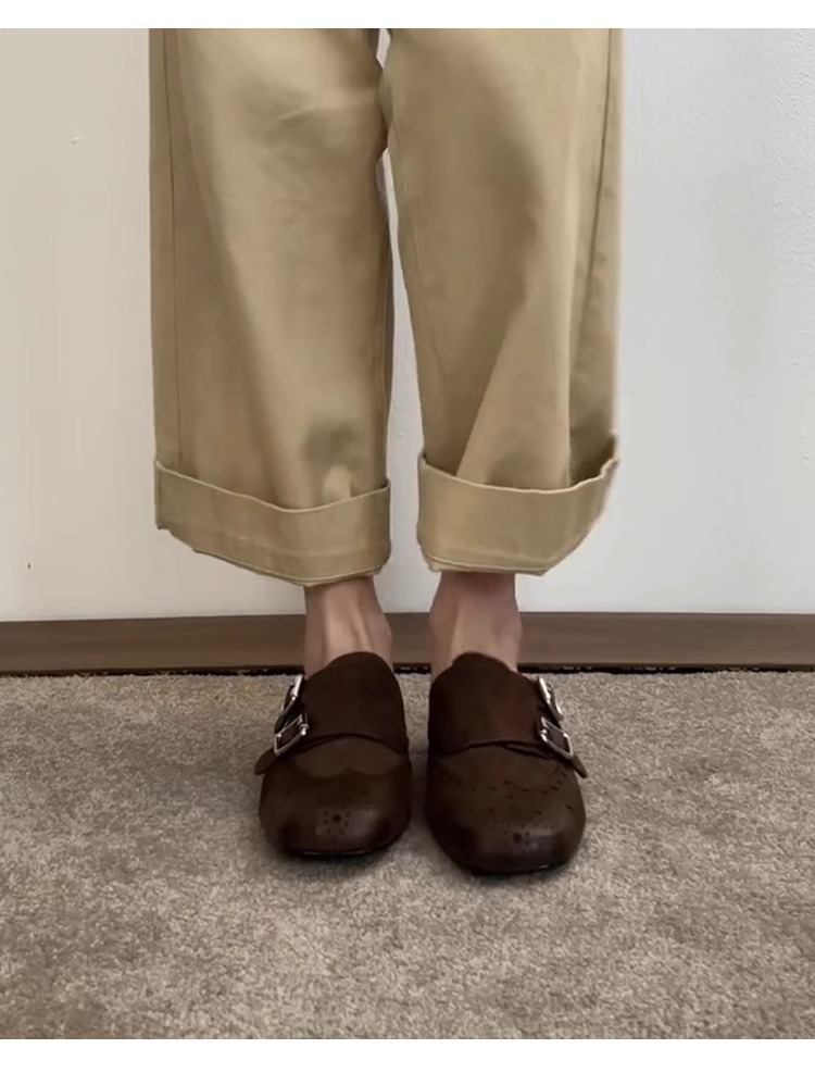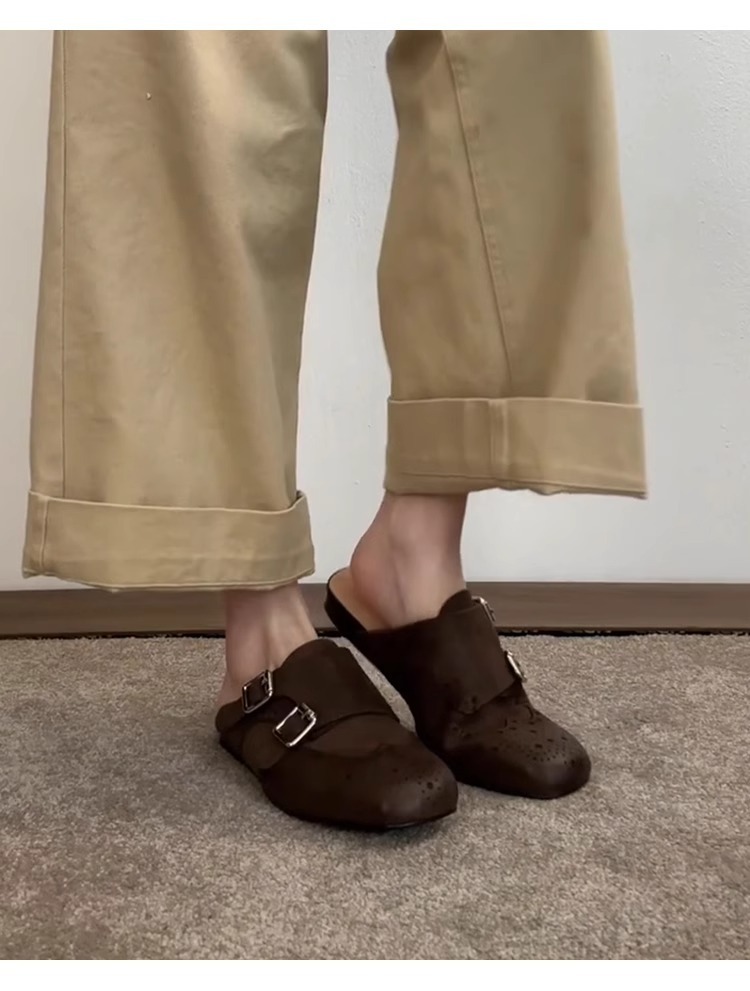Zapatos Bocken suaves de primavera de 2025 nuevos zapatos de moda retro de un solo pie con un par de zapatos de cabeza