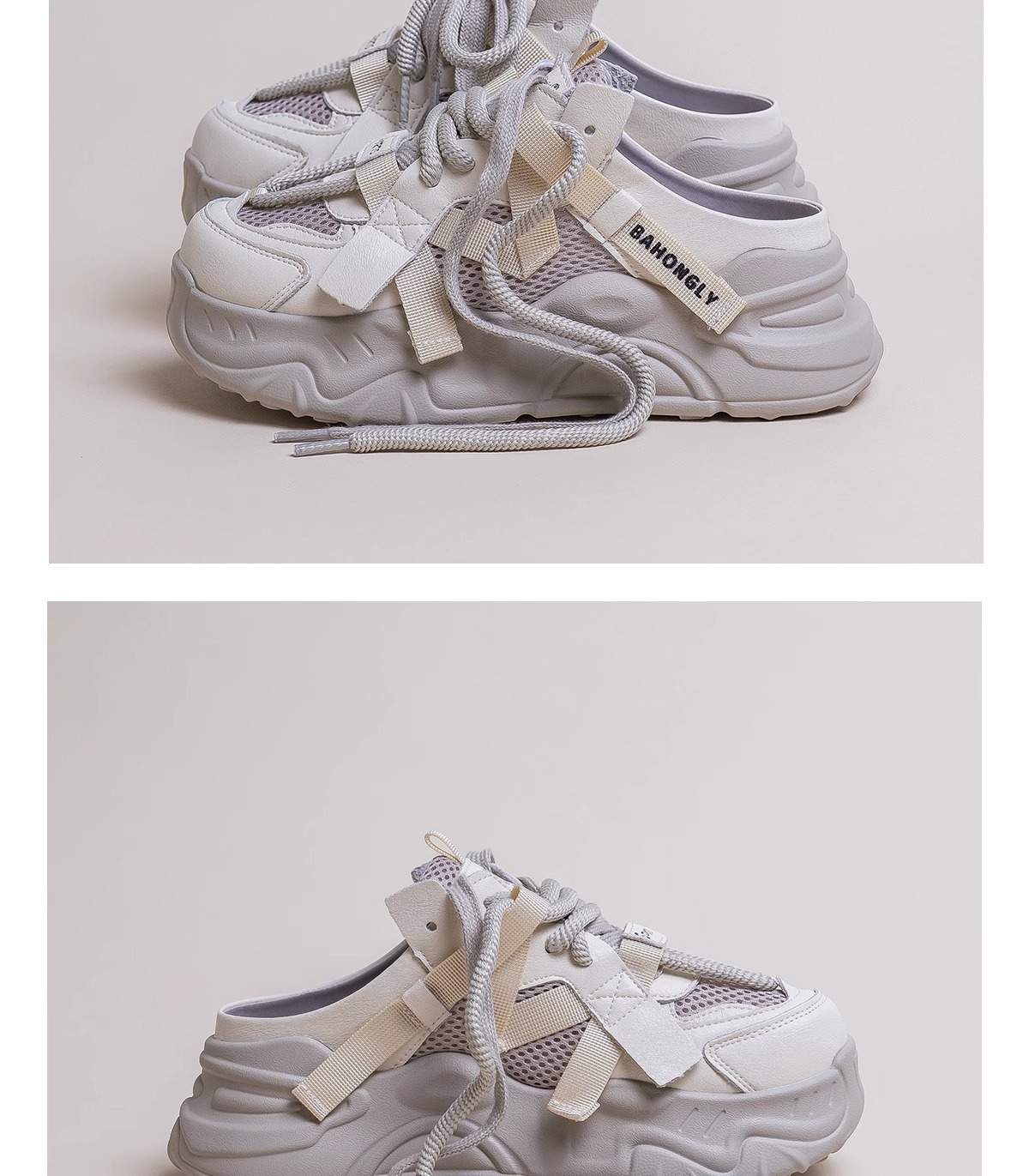 Baotou mitad zapatillas de mujer primavera y verano 2025 nueva red transpirable perezosas explosión de zapatos casuales de suela gruesa