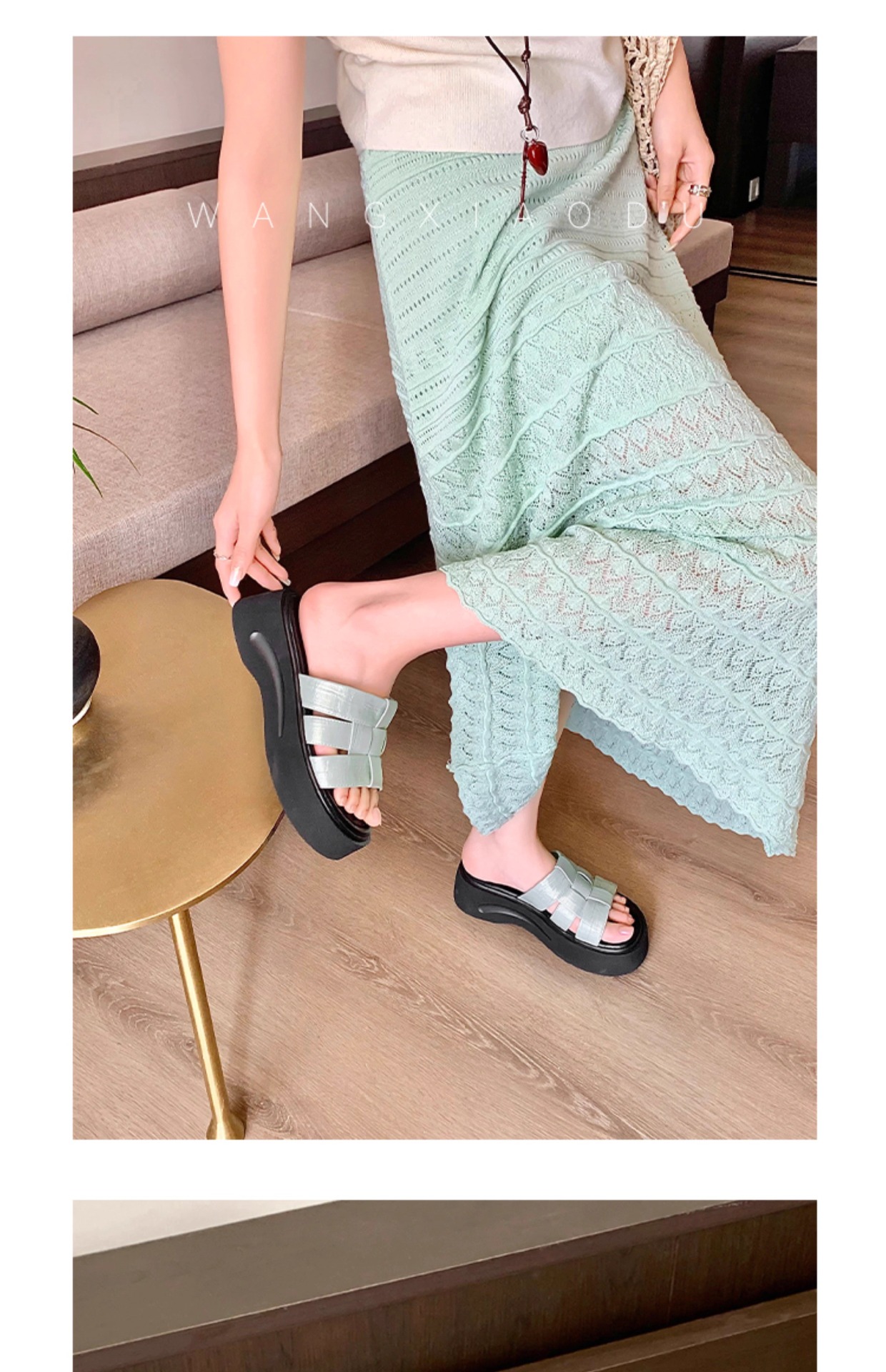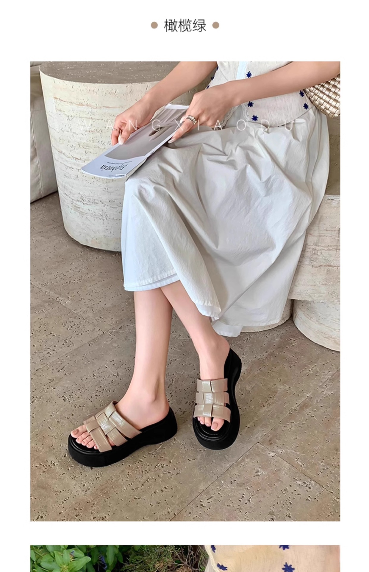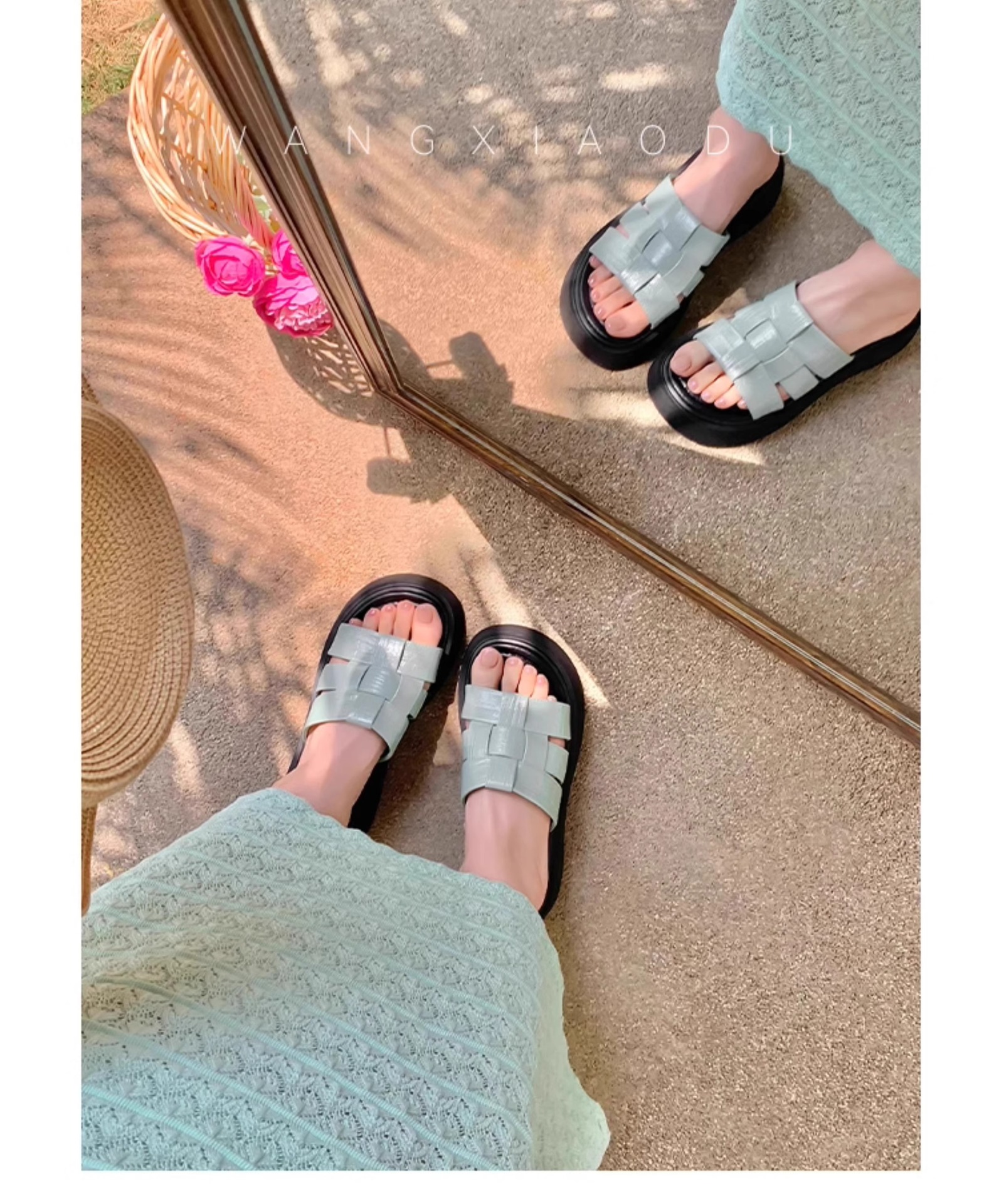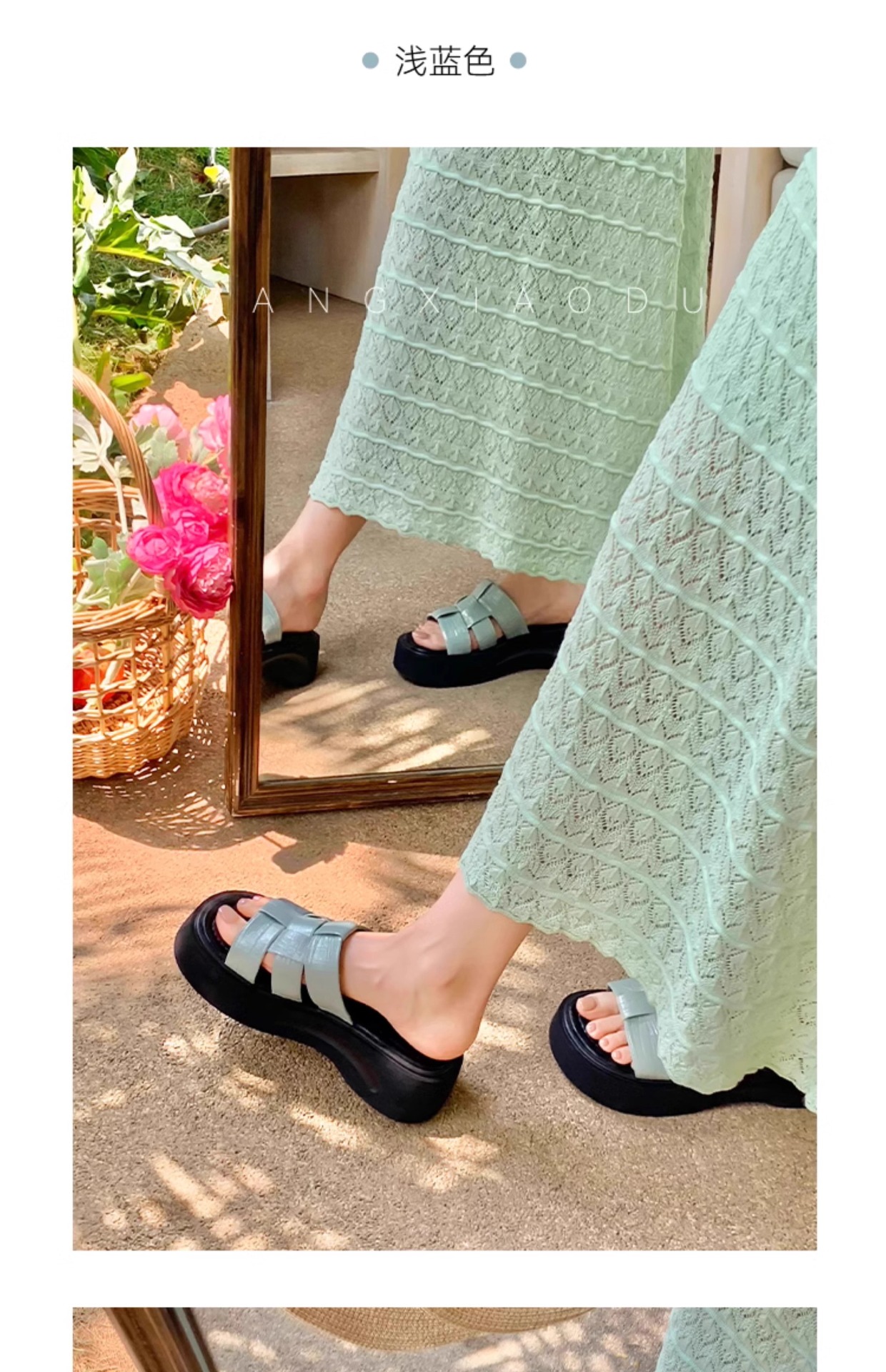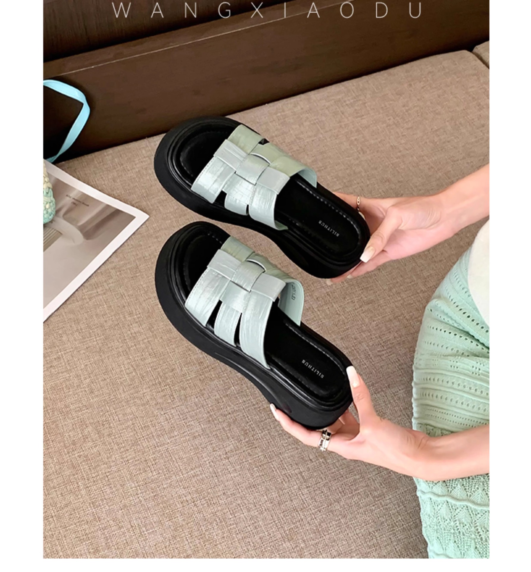 [Chao Bounan] Mint Weating ● Chanclas brillantes de 5,5 cm, zapatillas de pan de estilo romano de fondo grueso para mujer
