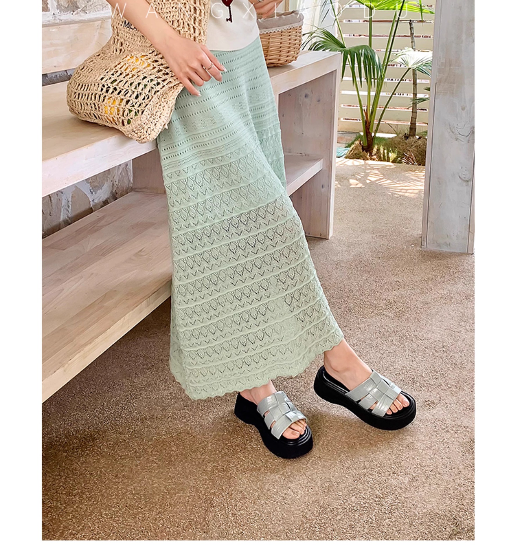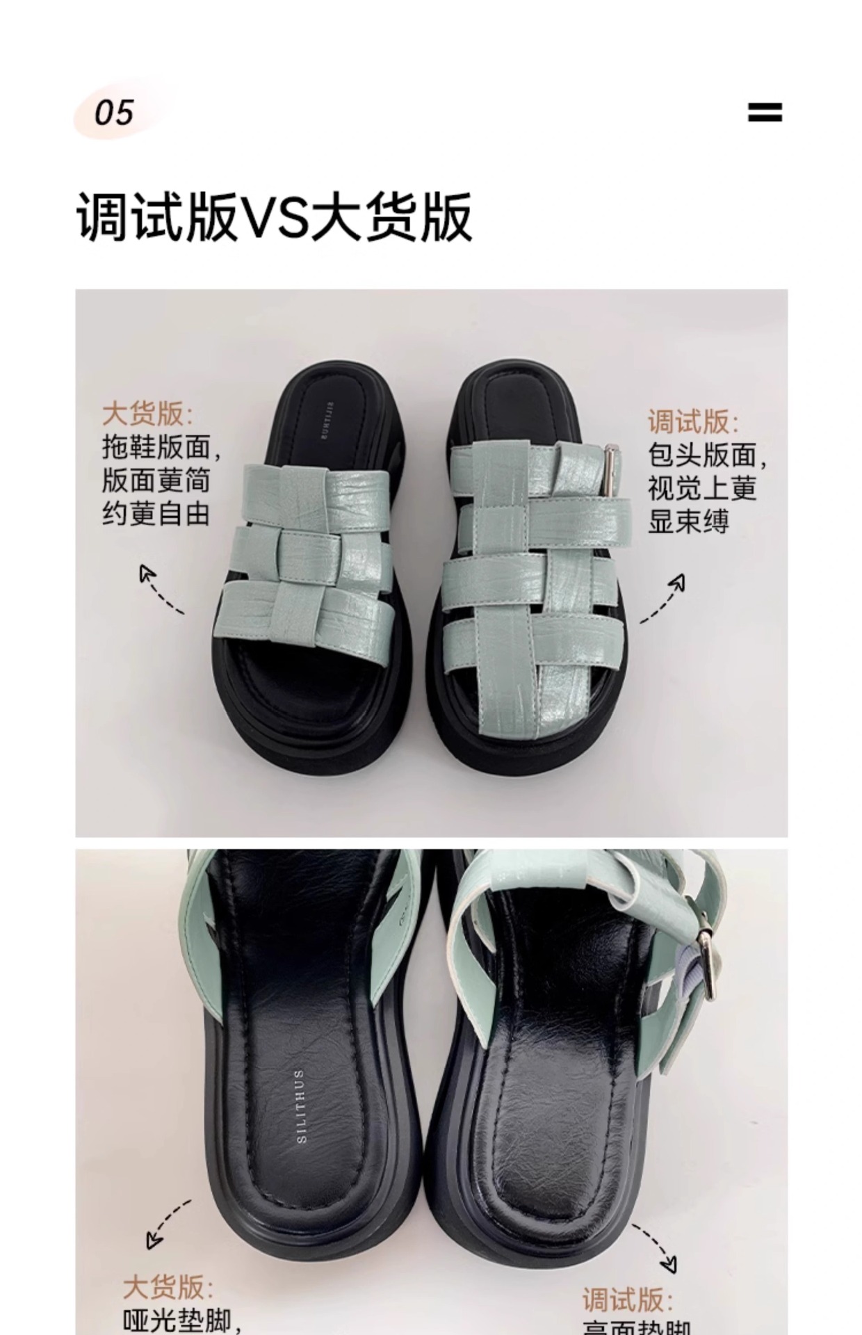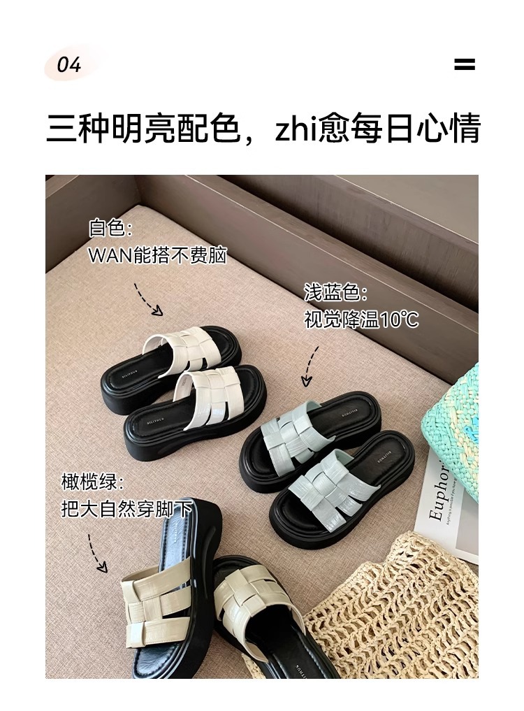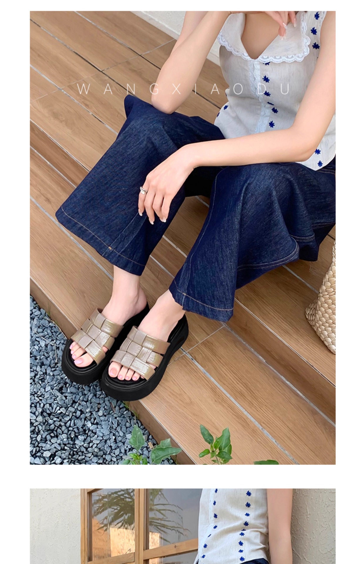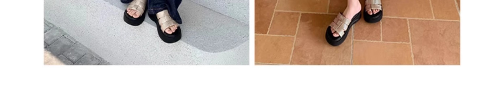 [Chao Bounan] Mint Weating ● Chanclas brillantes de 5,5 cm, zapatillas de pan de estilo romano de fondo grueso para mujer