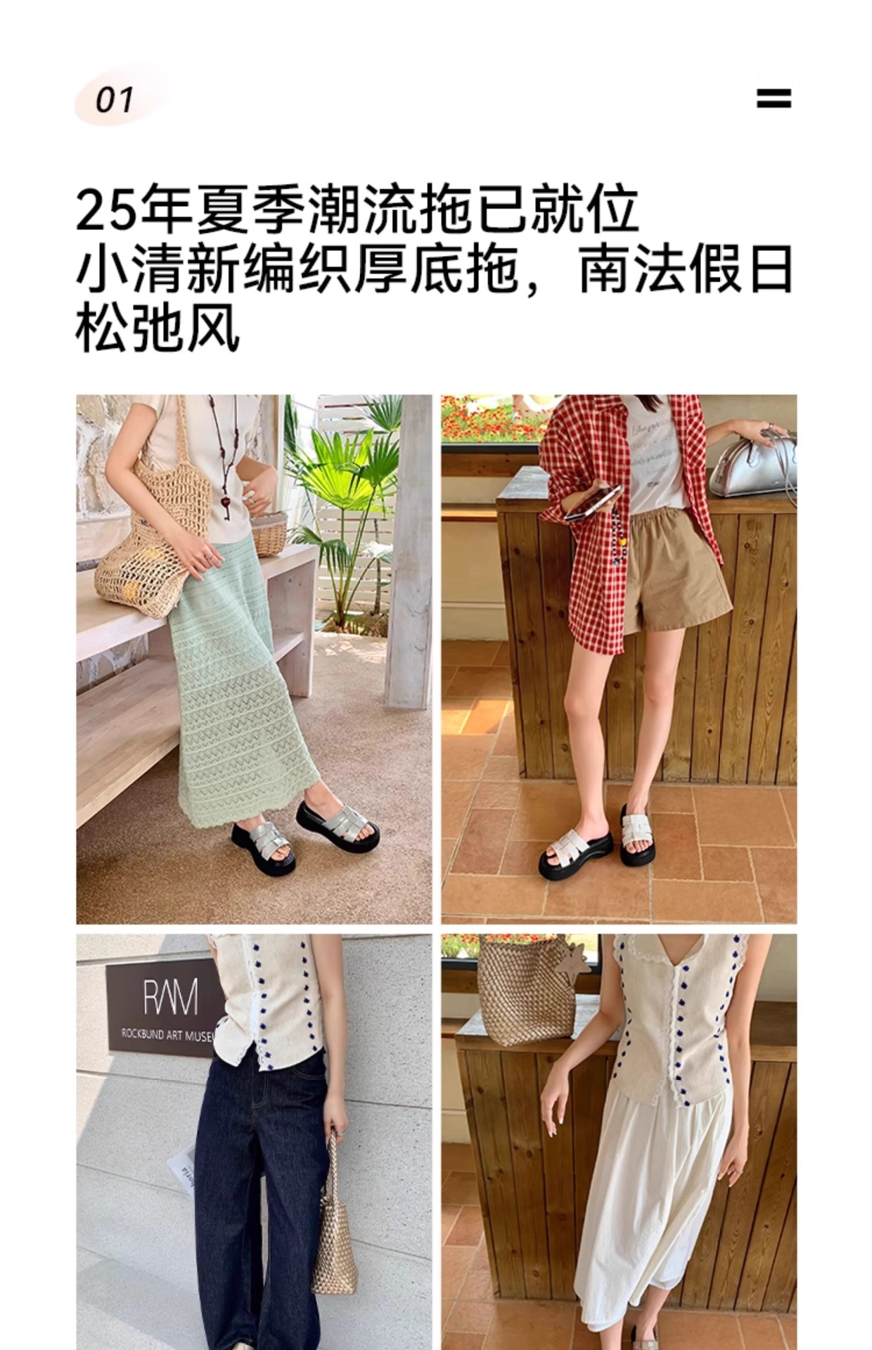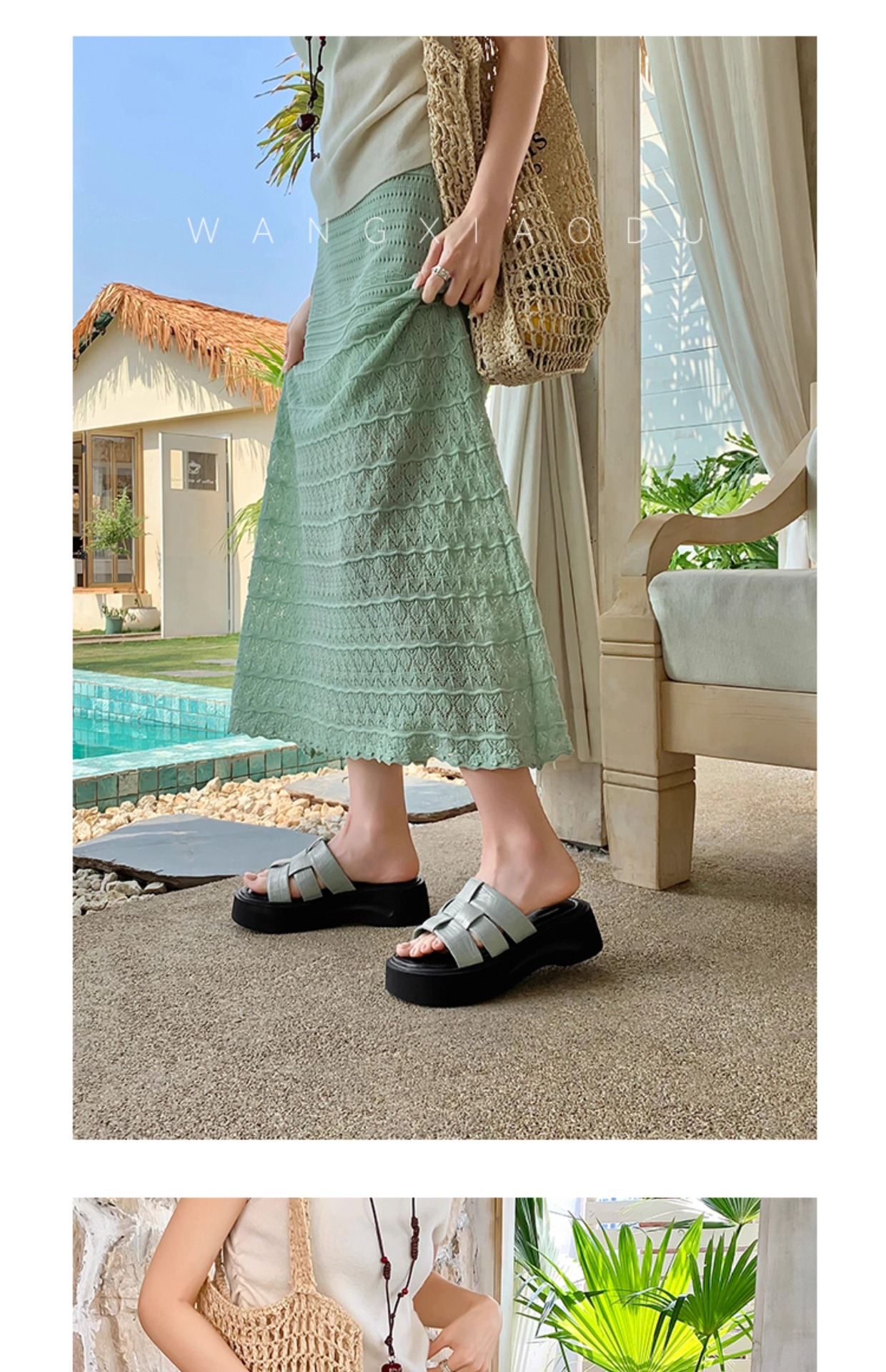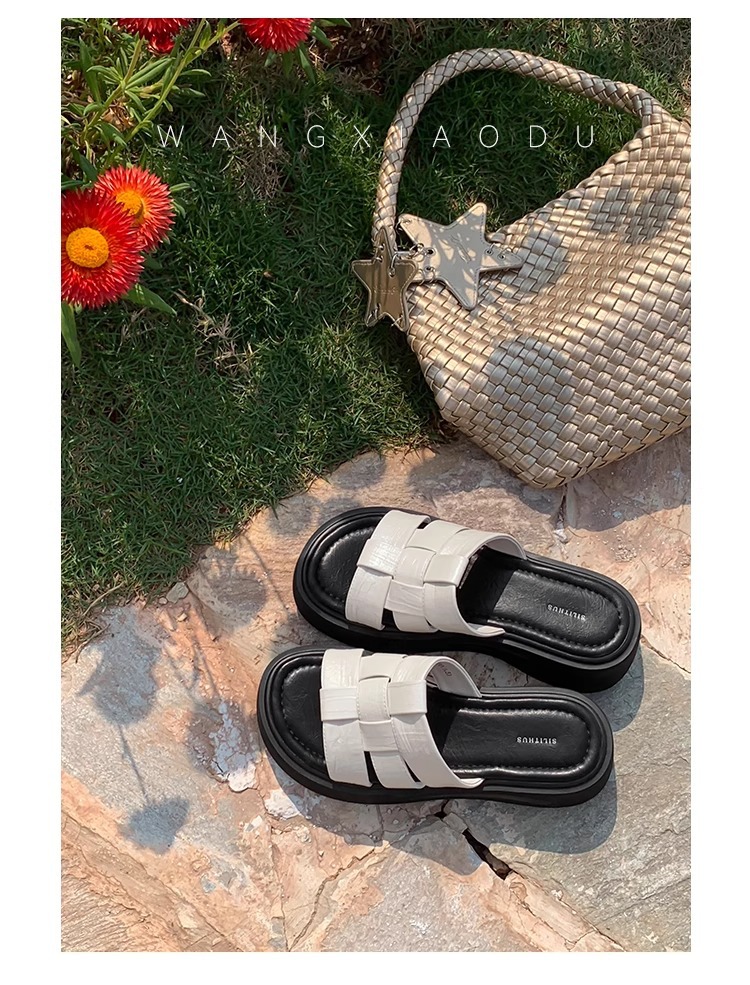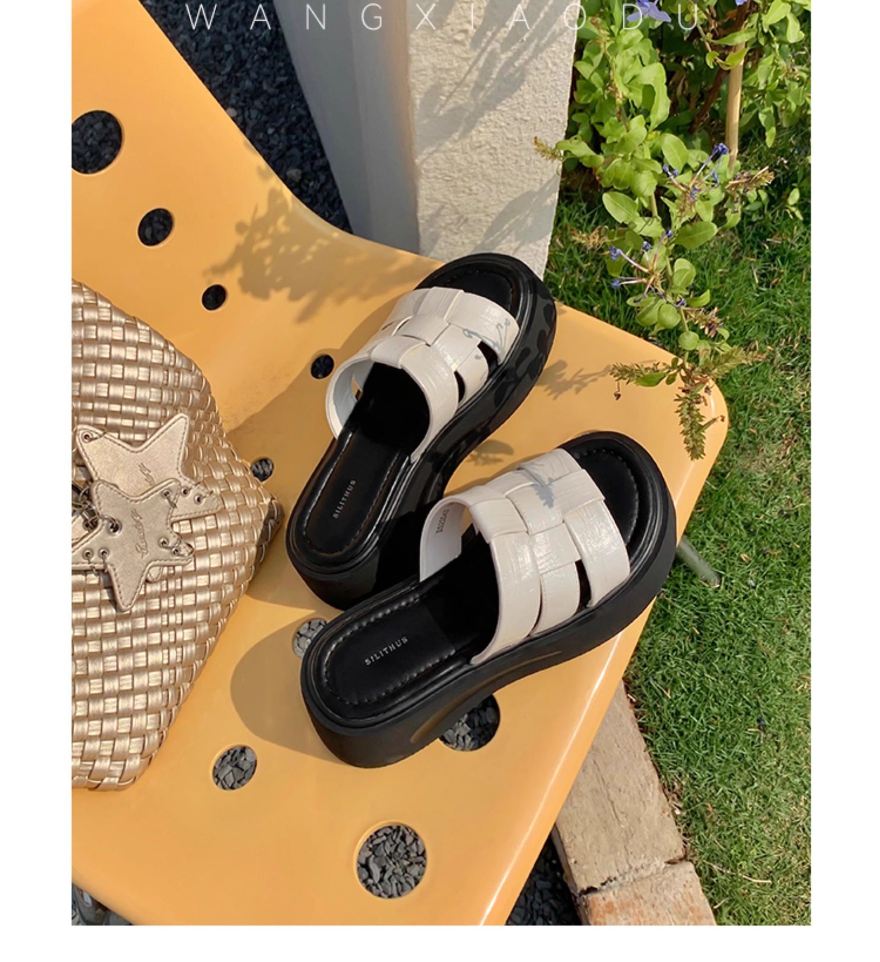 Estilo de vacaciones francés retro tejido a mano Baotou arrastre para llevar verano femenino con sandalias y zapatillas Baotou de tacón medio suave