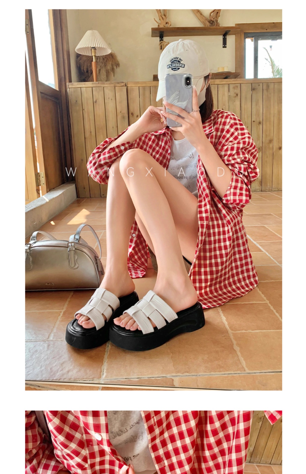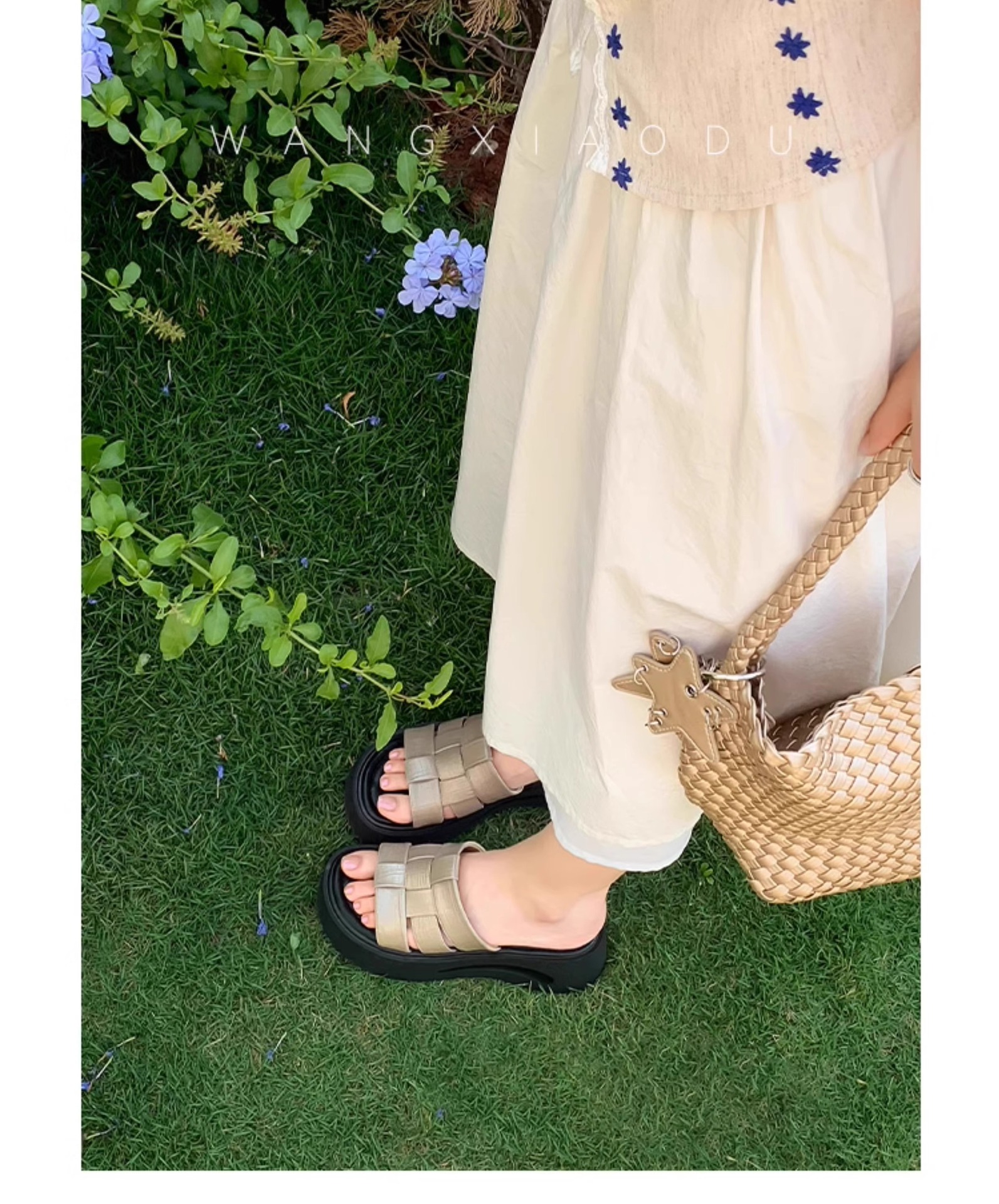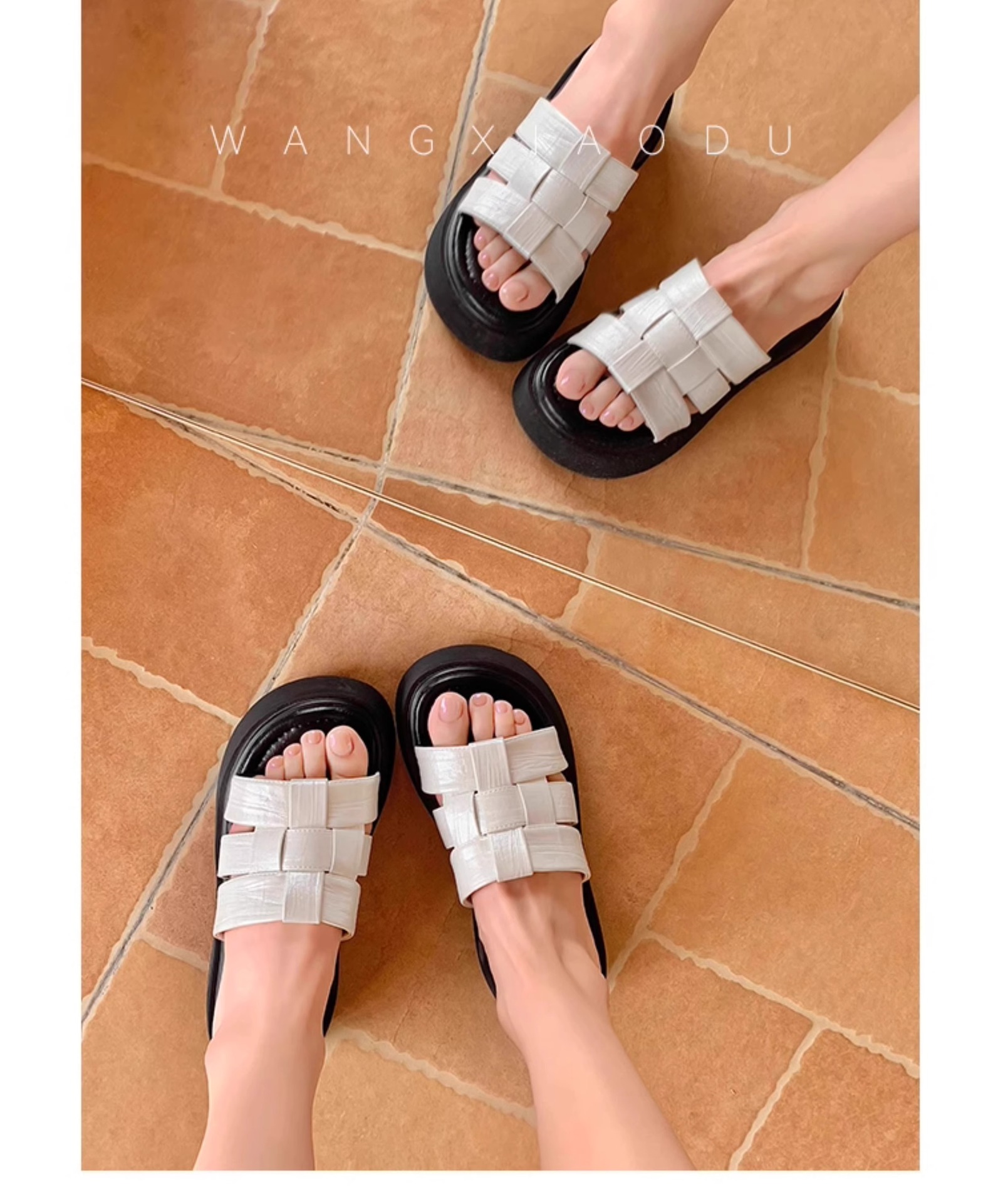 Chanclas de verano para mujer, fondo grueso, sandalias antideslizantes y resistentes al desgaste, EVA, sentido de la mierda en el hogar, zapatillas de alta gama de todo fósforo