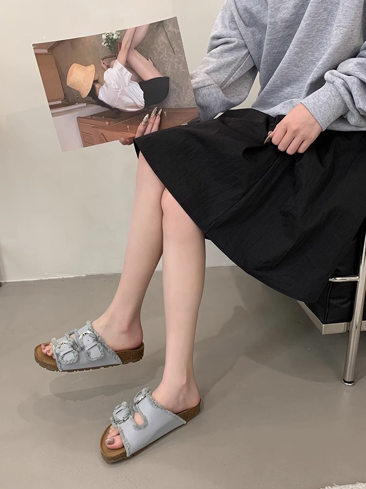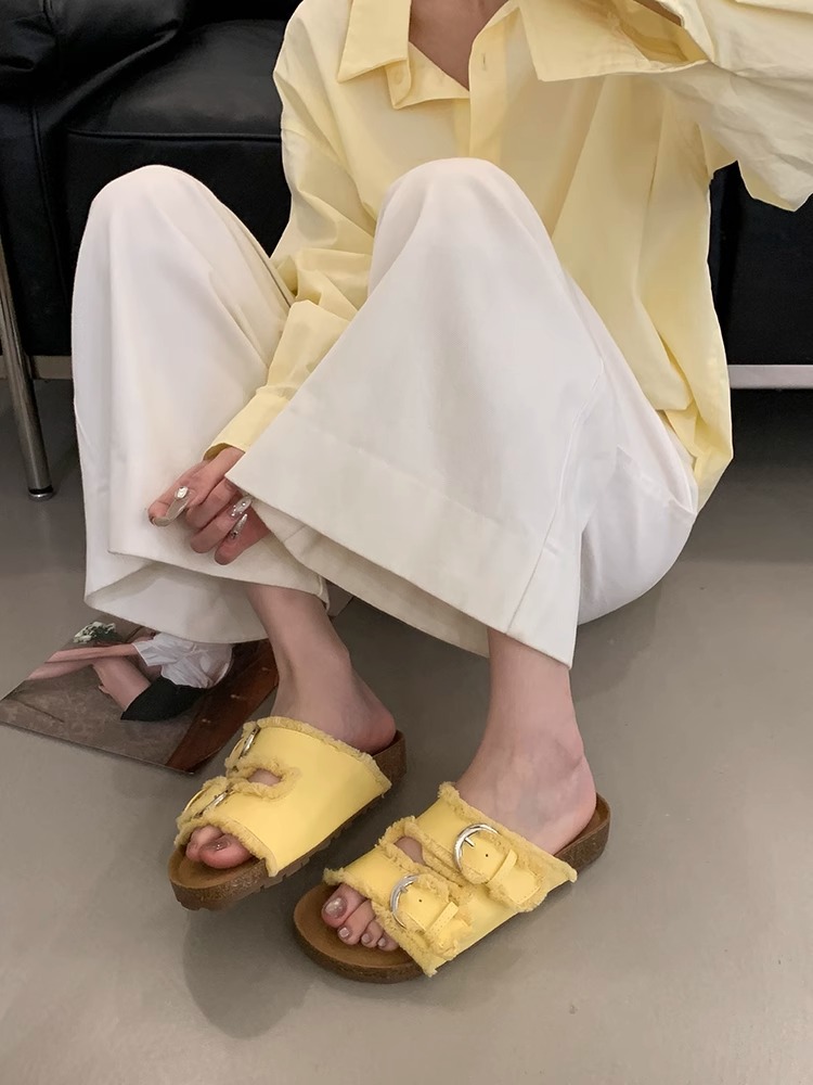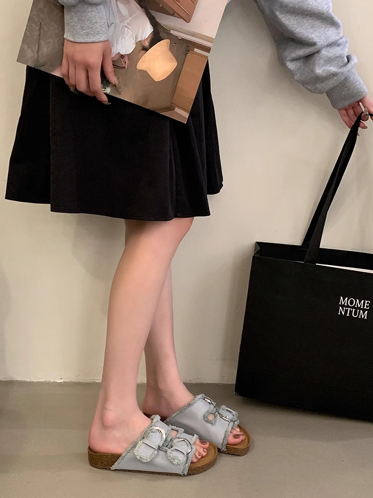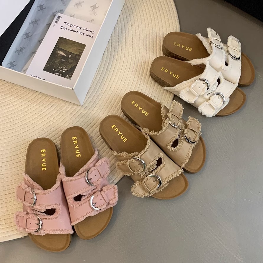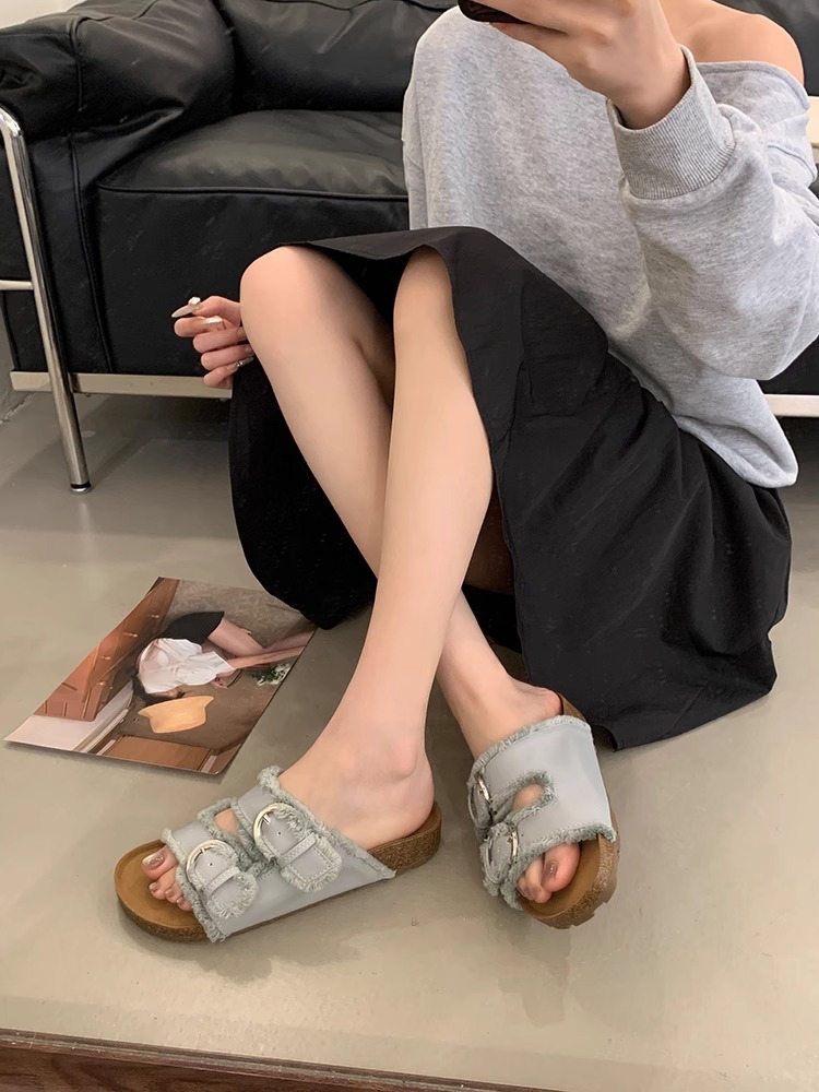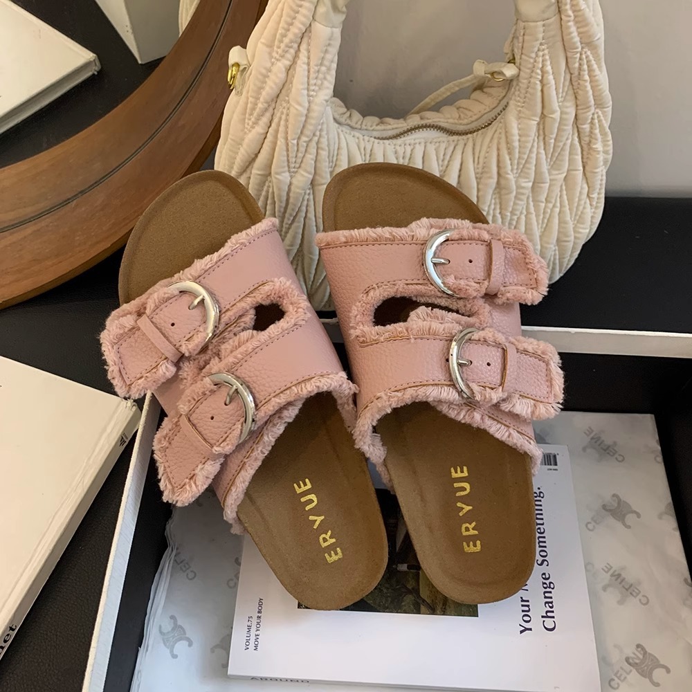 Zapatillas Birkenstock de suela gruesa para mujer en verano 2025 retro hada viento borla fea linda dama plana sandalias Boken marea