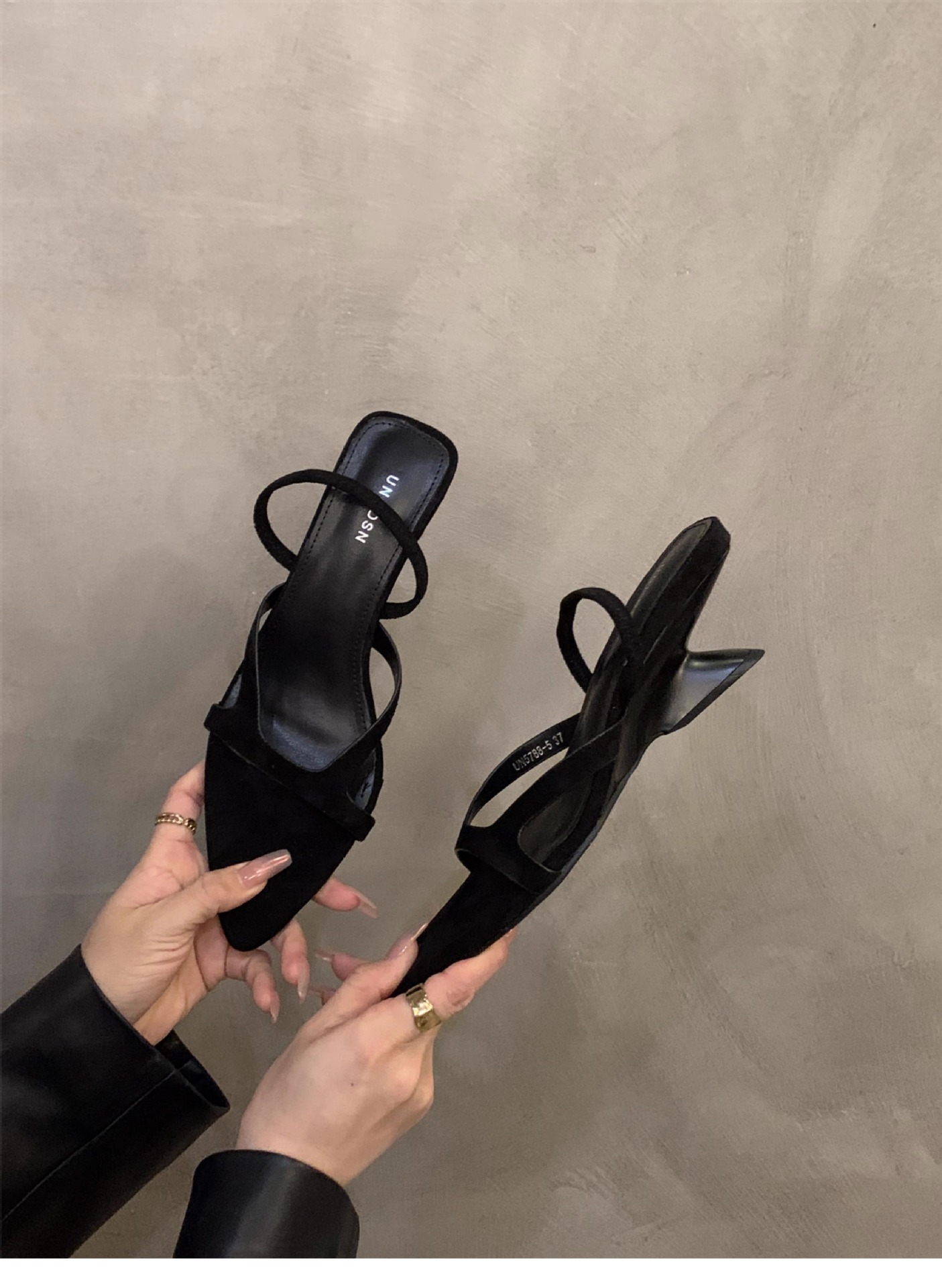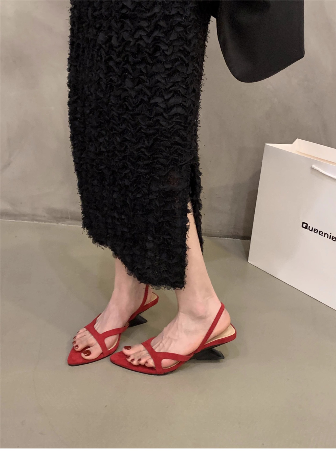 Pantuflas rojas de tacón alto de cuña, zapatos de hadas, desgaste exterior, verano 2025 con falda, sandalias francesas, sandalias
