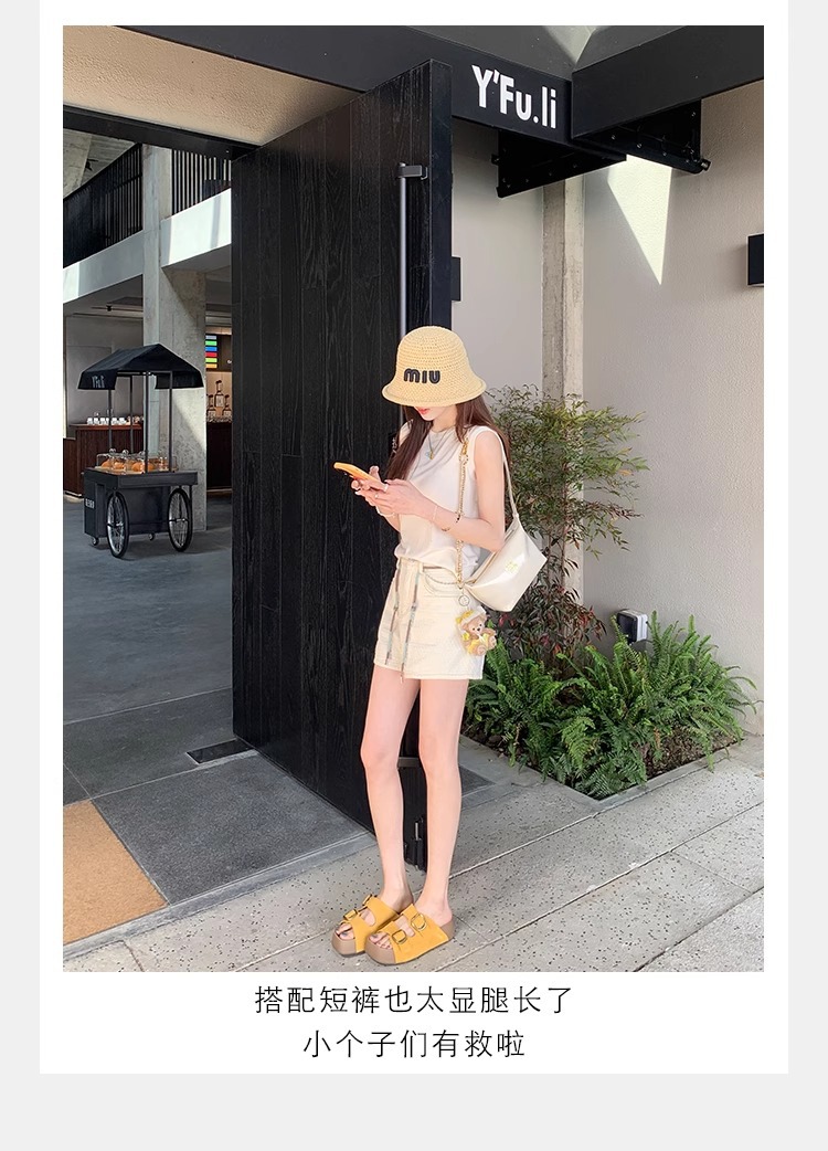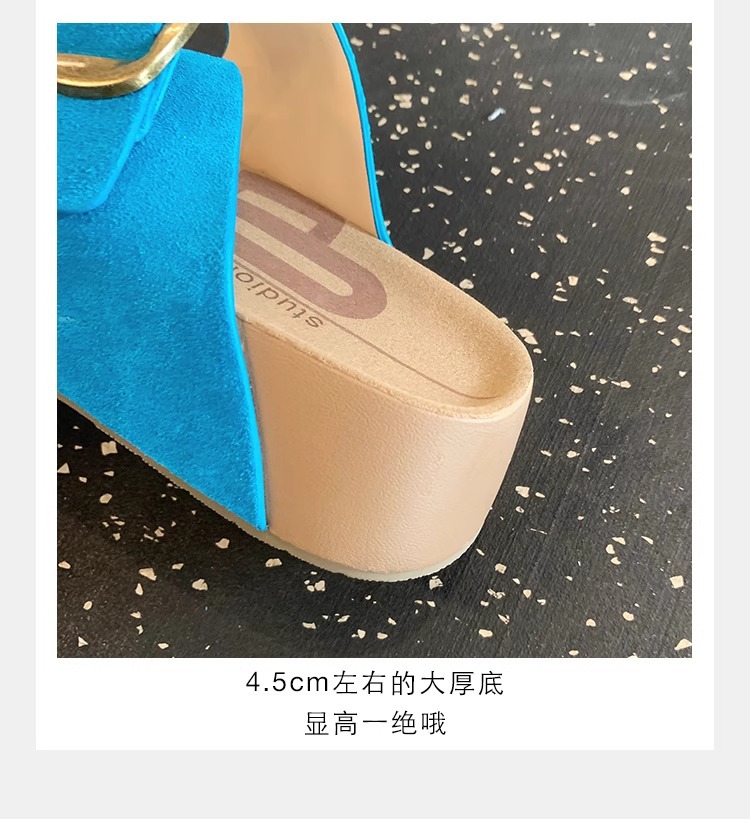 El nuevo estilo de verano de Grape Mom aumenta 5cm ~ Xiaojindou cabeza redonda suave linda Mary Jane suela gruesa media pantuflas mujer