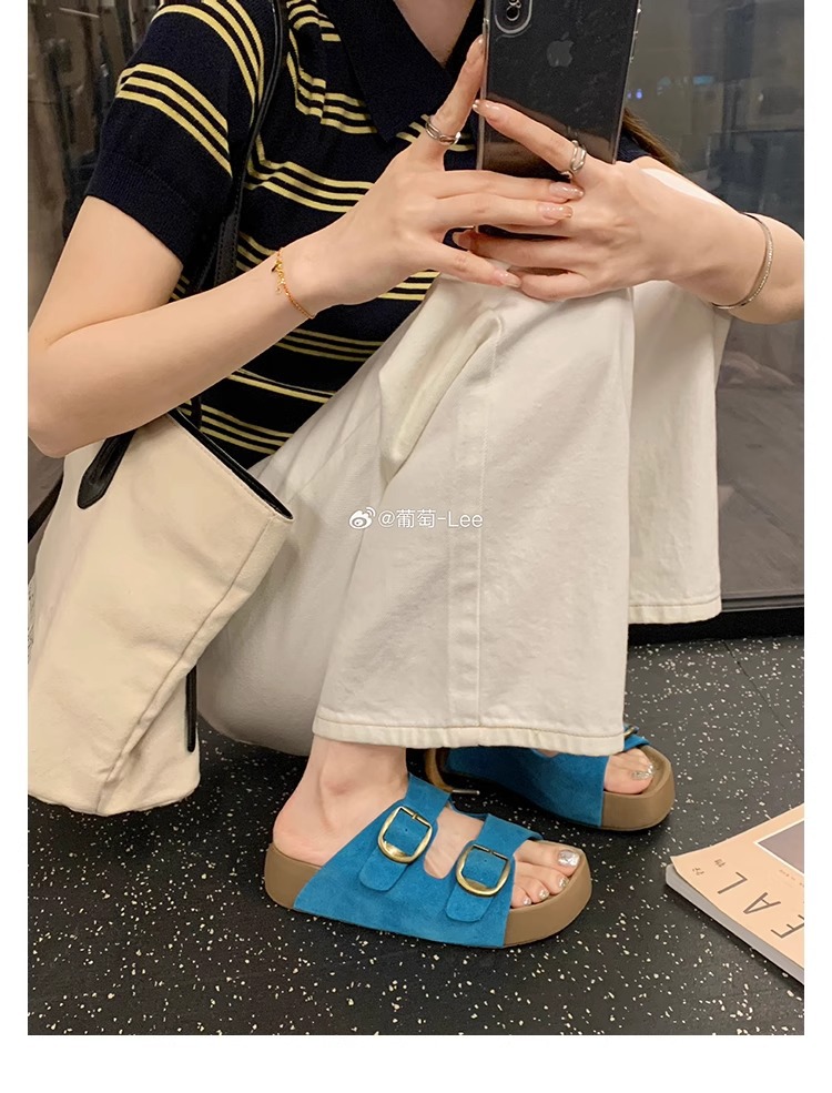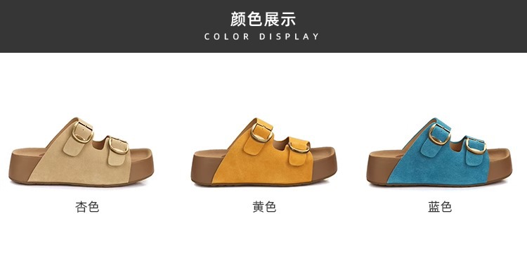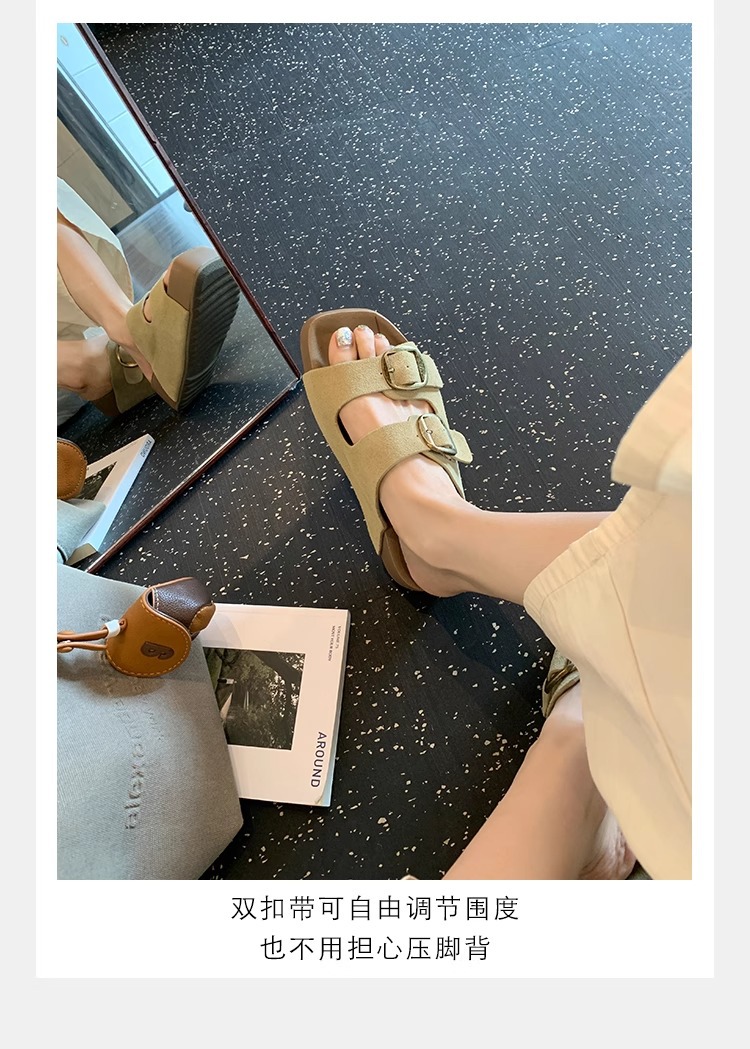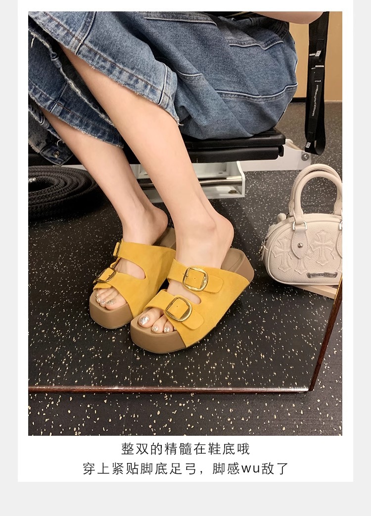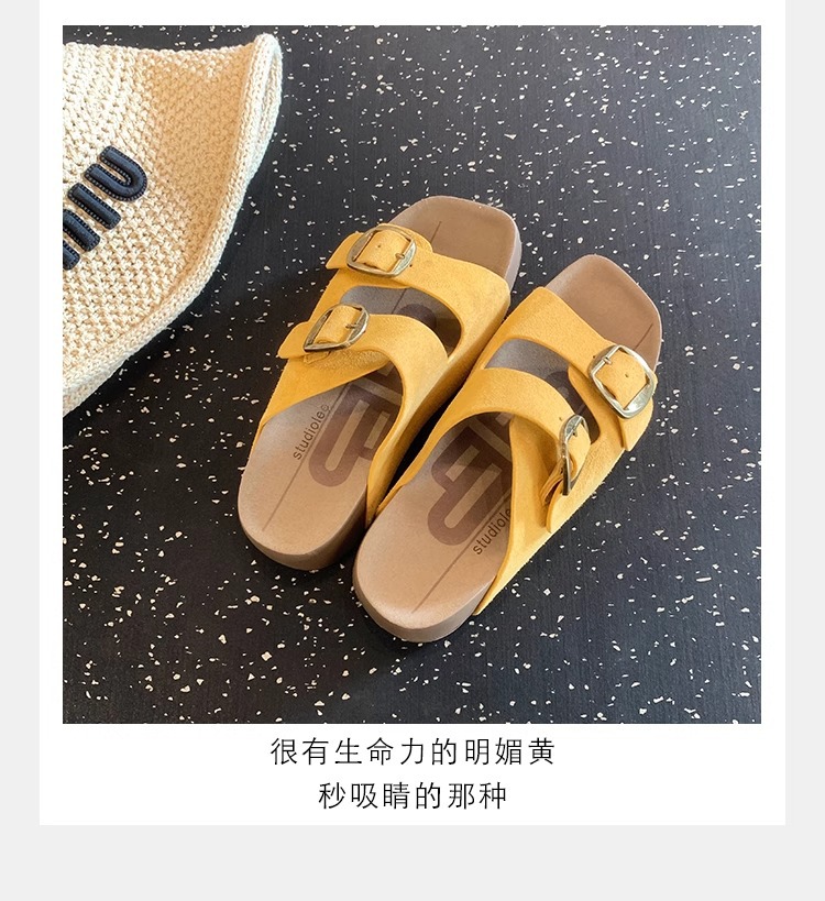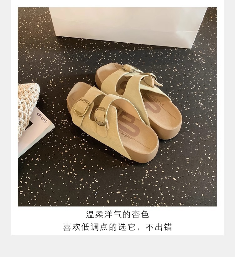 Grape Mom verano nuevo estilo hebilla doble de una palabra 4,5 cm fondo grueso aumento Birkenborn perezoso playa sandalias y pantuflas mujeres verano