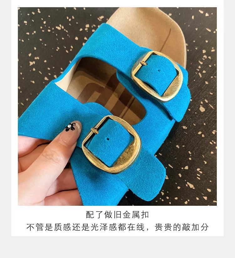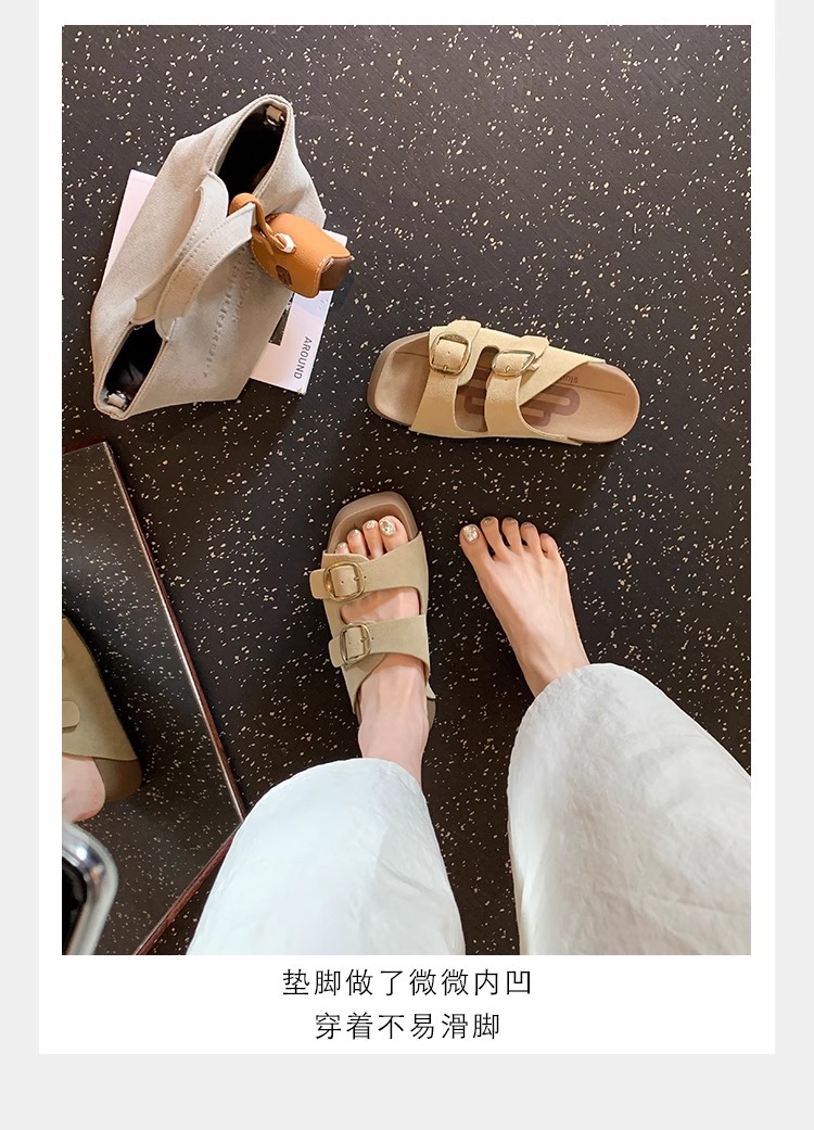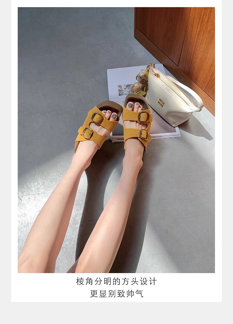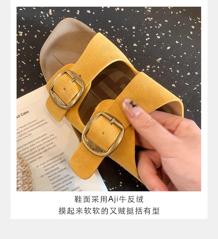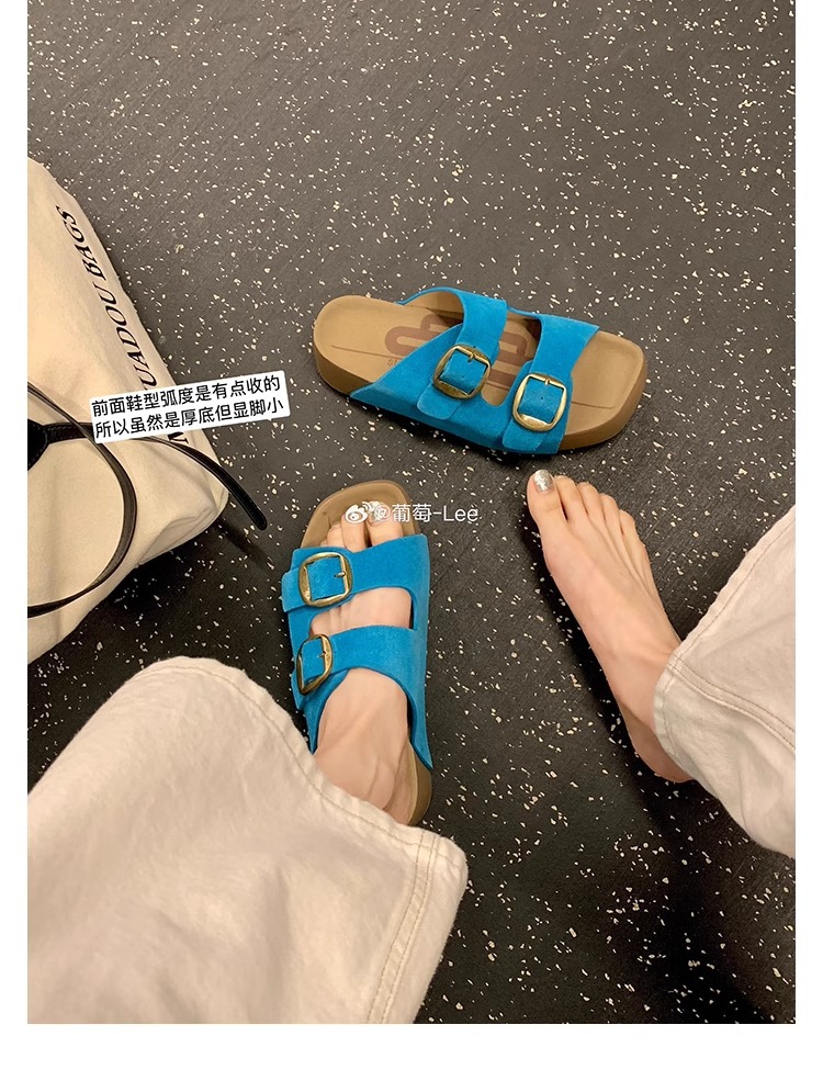 Grape Mom verano nuevo estilo hebilla doble de una palabra 4,5 cm fondo grueso aumento Birkenborn perezoso playa sandalias y pantuflas mujeres verano