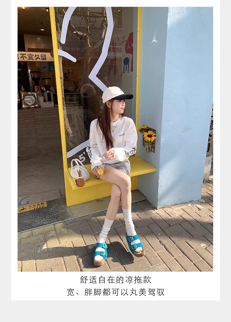 Zapatillas de suela gruesa para mujer de Europa y América ins moda al aire libre verano casual Internet celebridad estilo una línea Eva sandalias