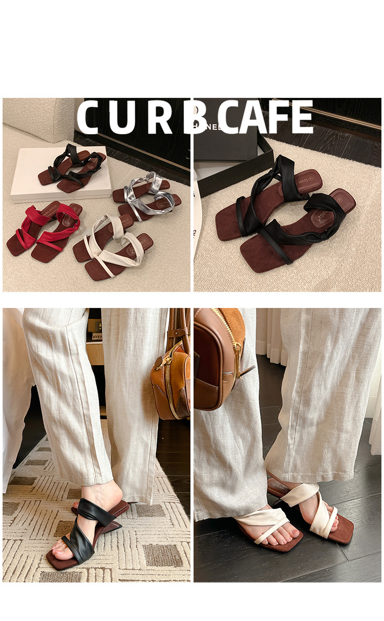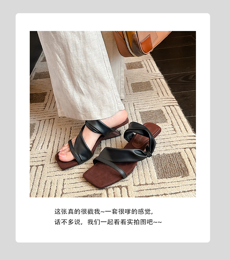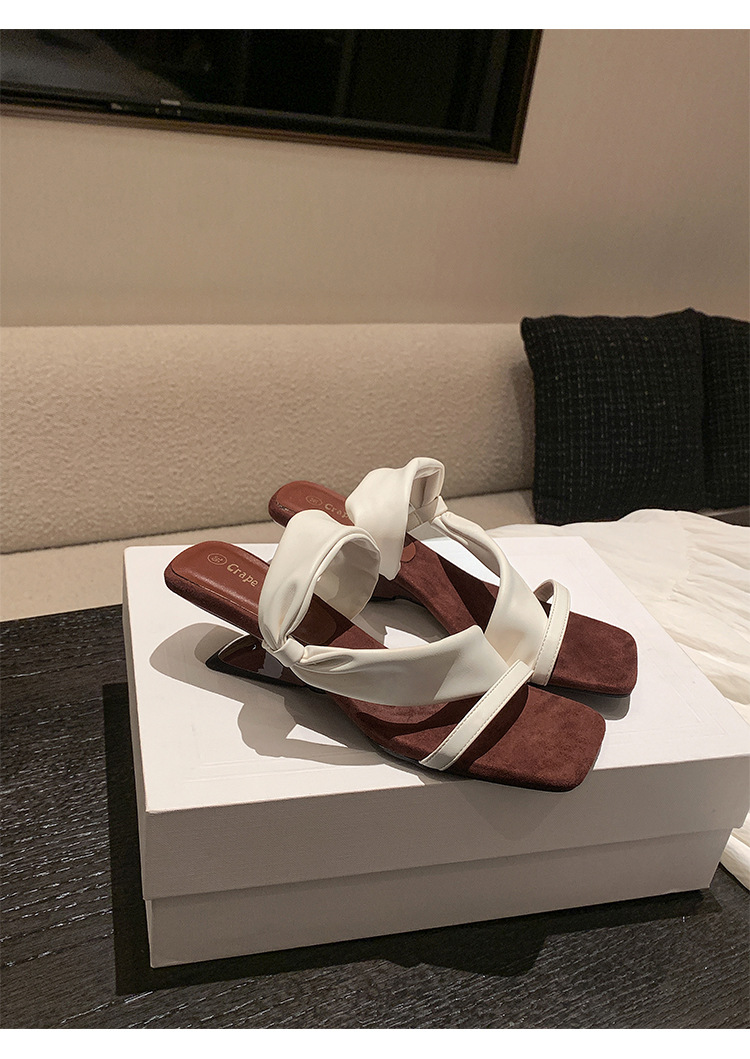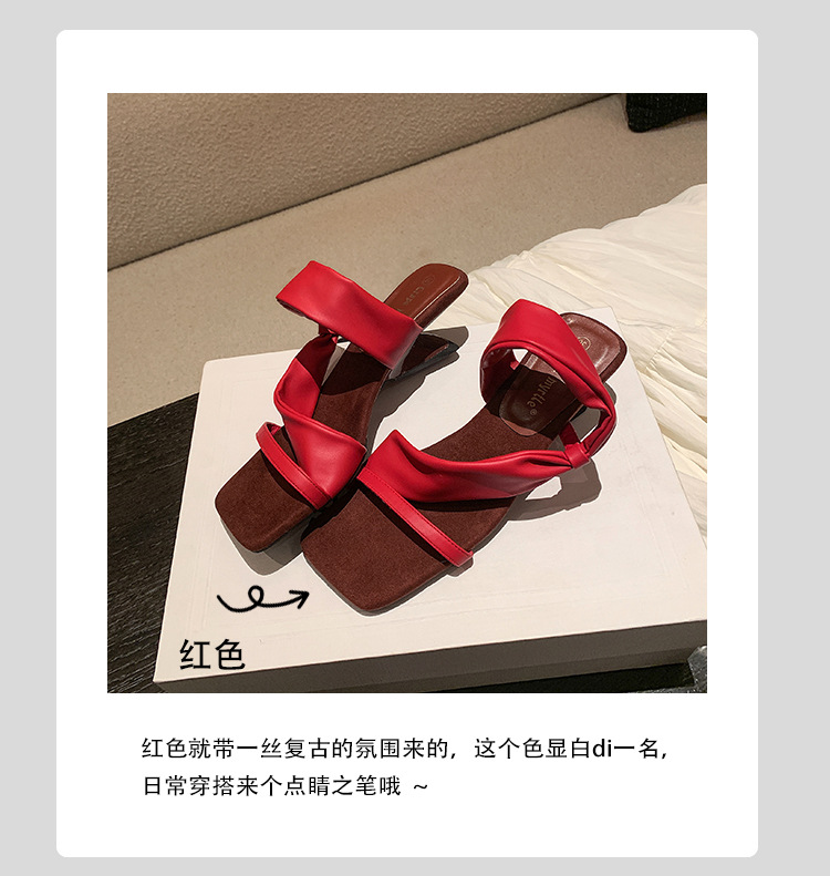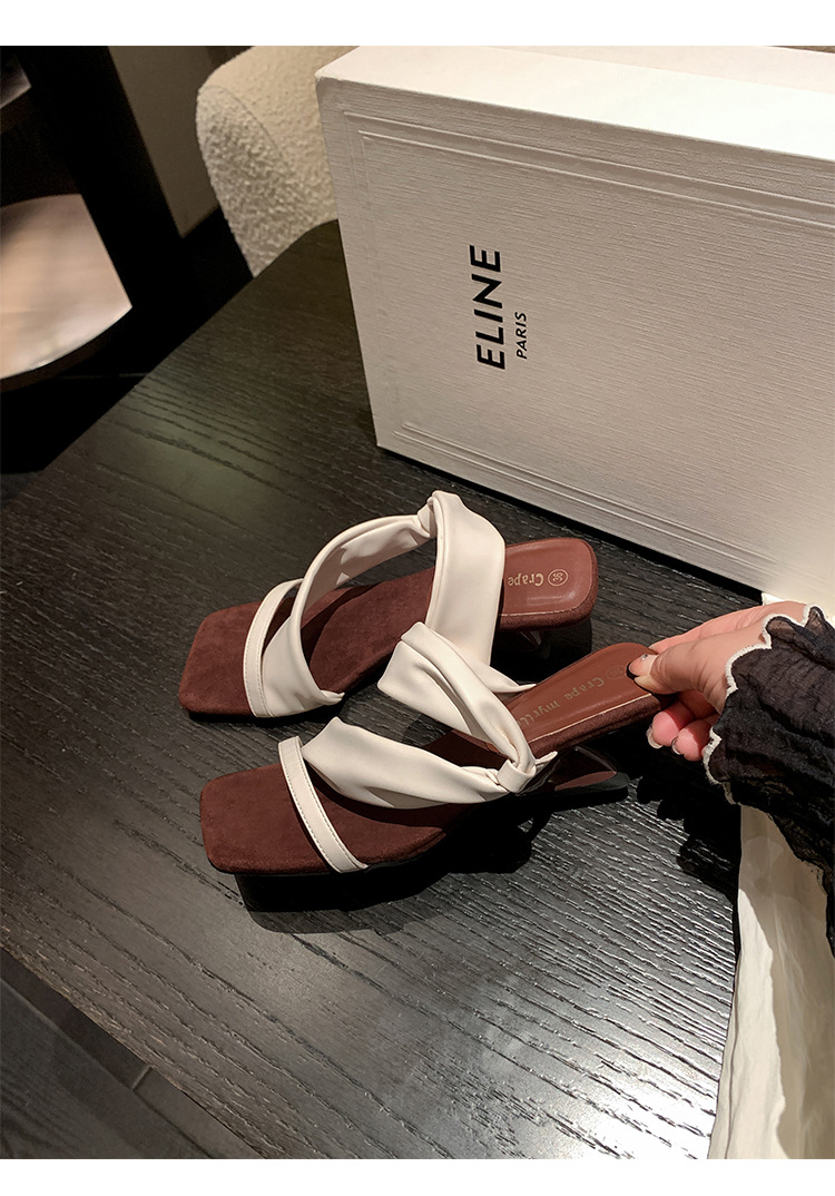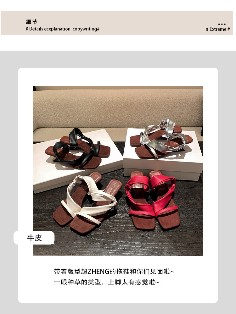 El nuevo tacón de verano de Grape Mom tiene 5,5 cm de altura ~ Temperamento cabeza cuadrada con punta abierta sandalias y pantuflas de cuña de tacón grueso mujeres