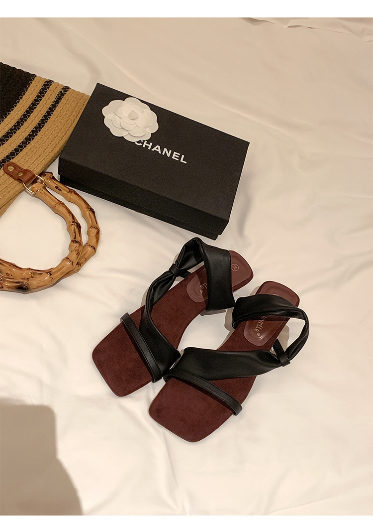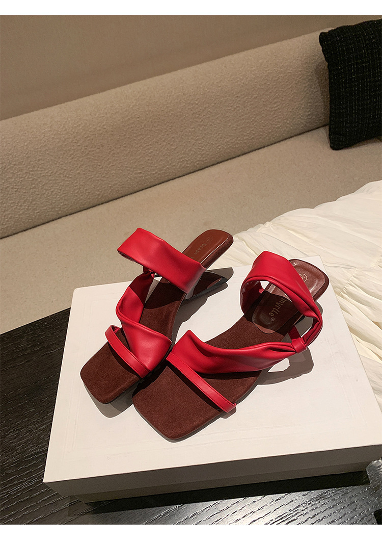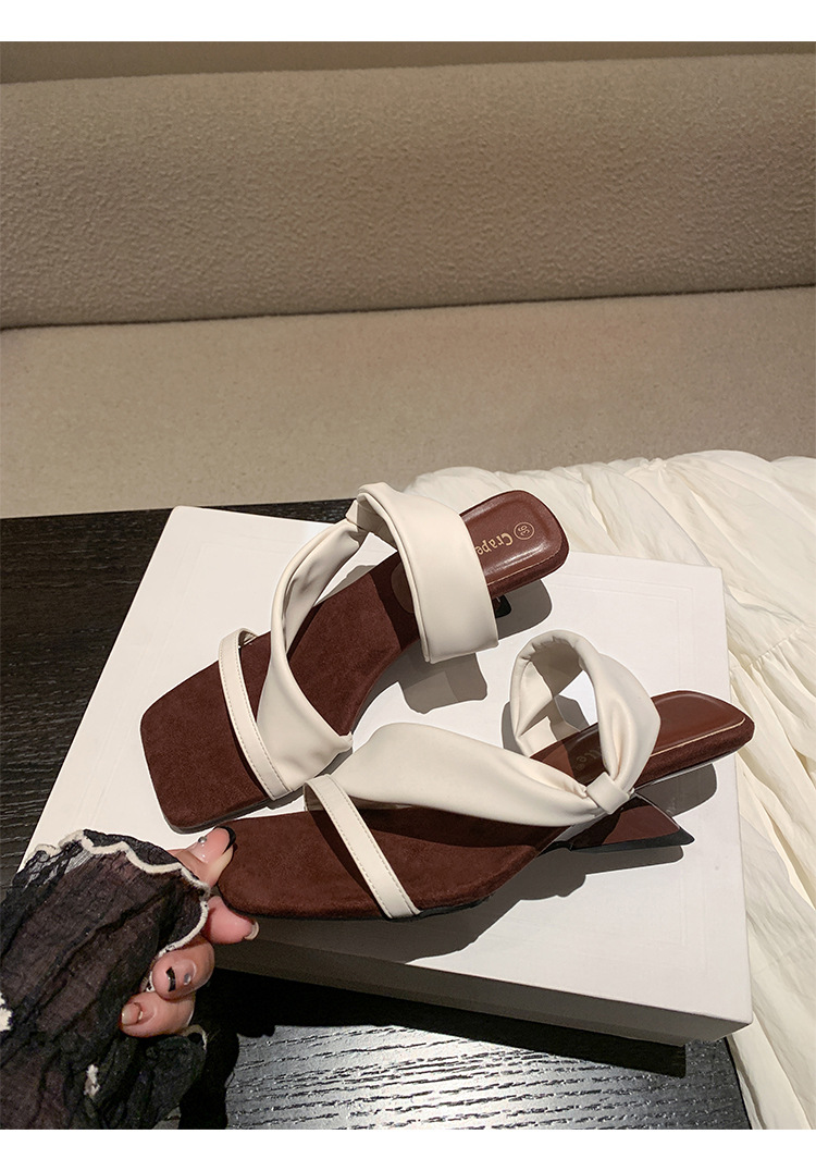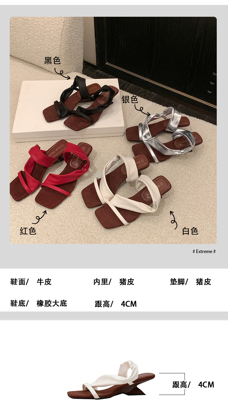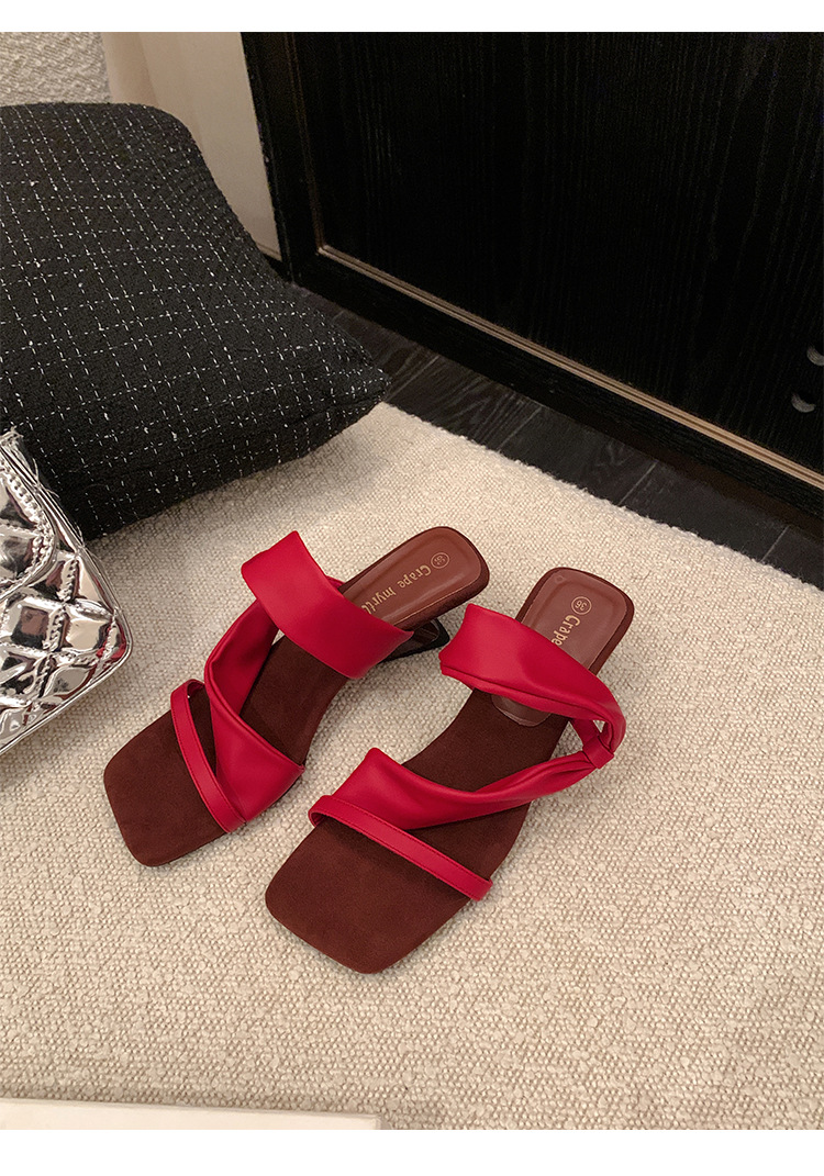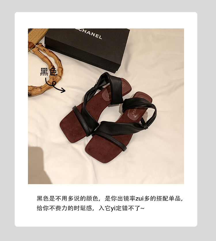 El nuevo tacón de verano de Grape Mom tiene 5,5 cm de altura ~ Temperamento cabeza cuadrada con punta abierta sandalias y pantuflas de cuña de tacón grueso mujeres