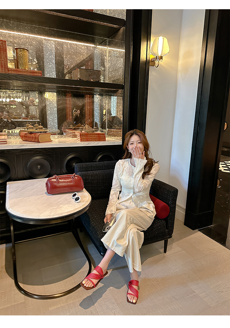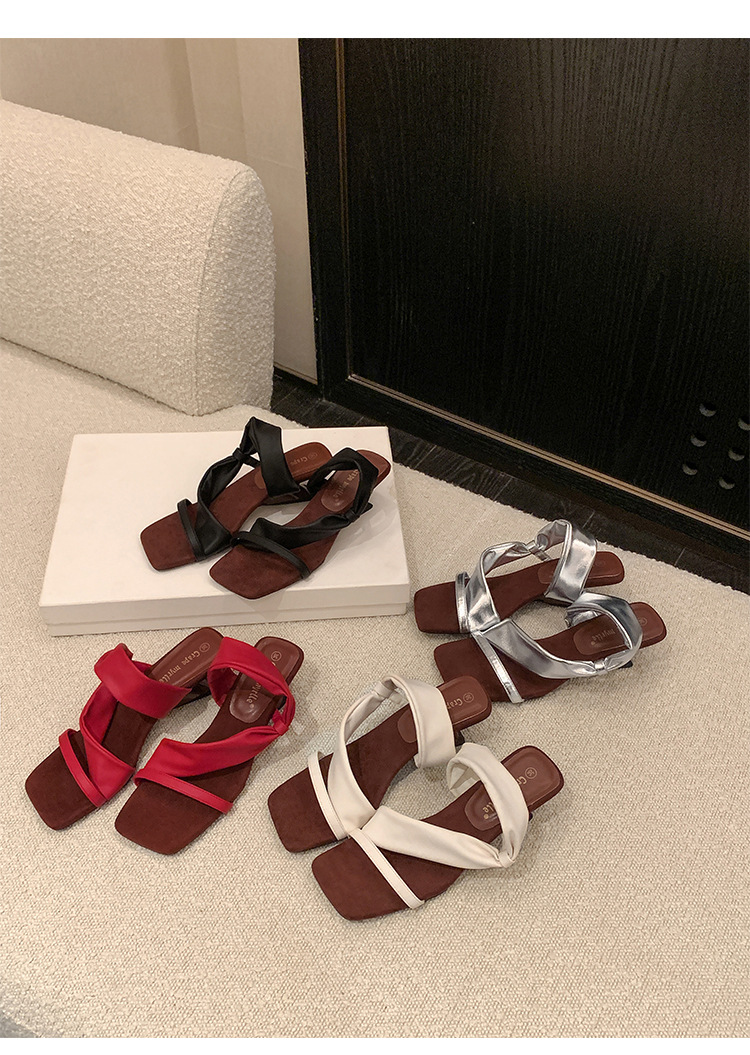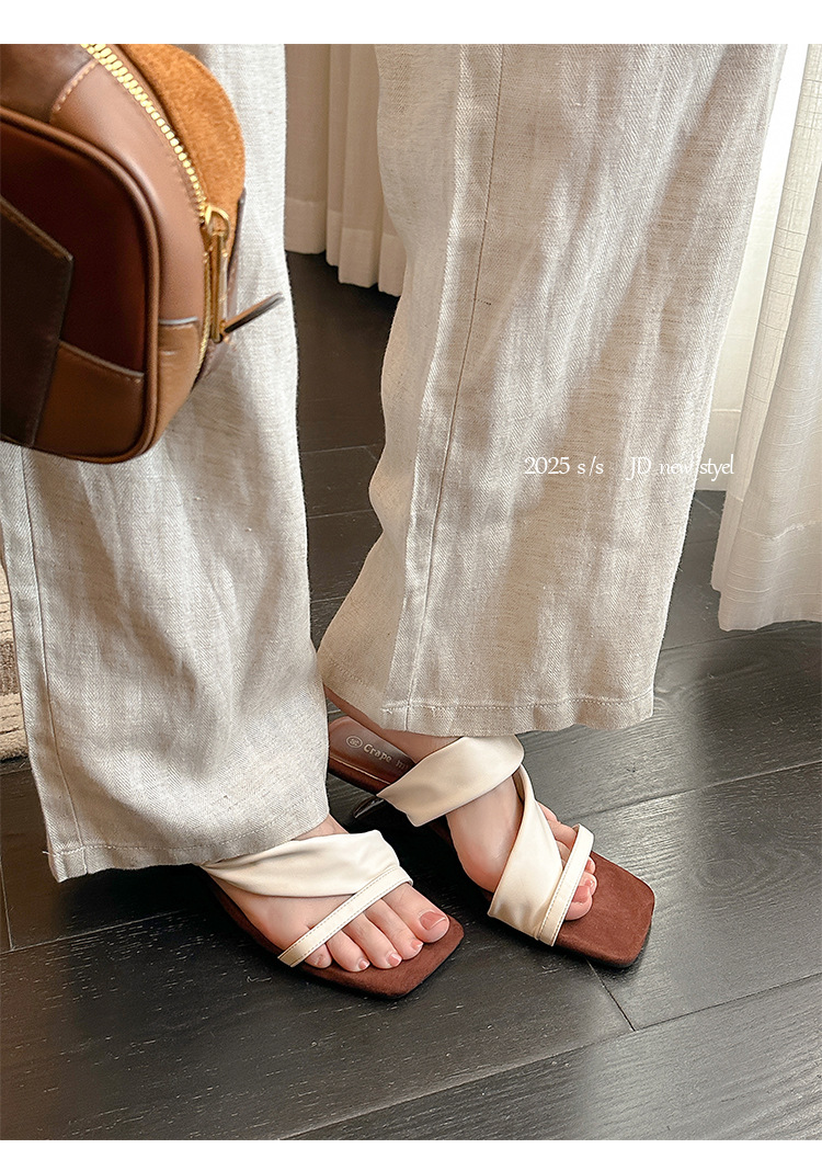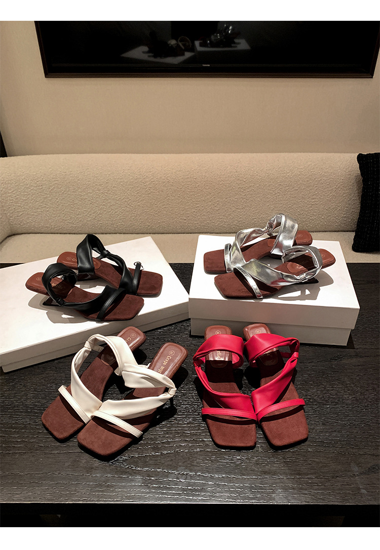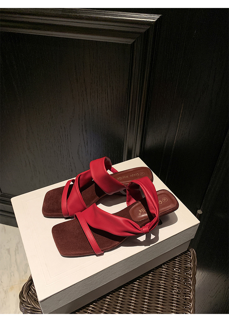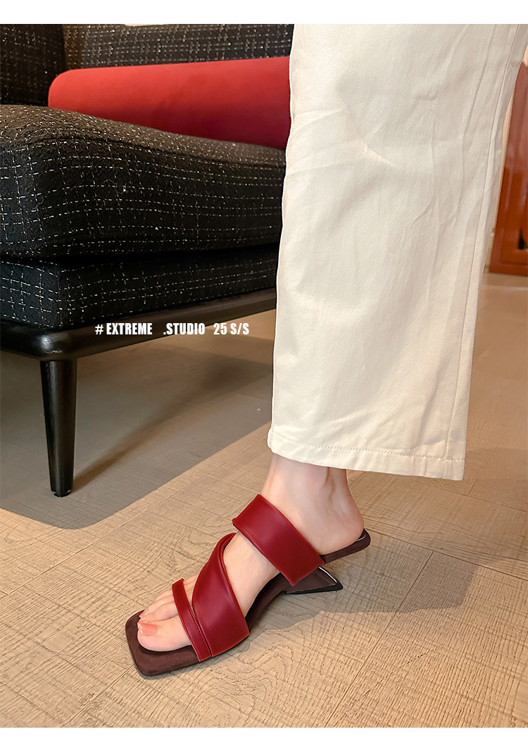 El nuevo tacón de verano de Grape Mom tiene 5,5 cm de altura ~ Temperamento cabeza cuadrada con punta abierta sandalias y pantuflas de cuña de tacón grueso mujeres