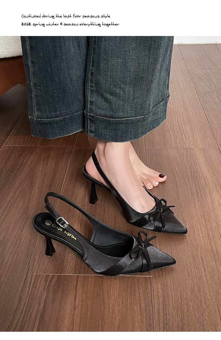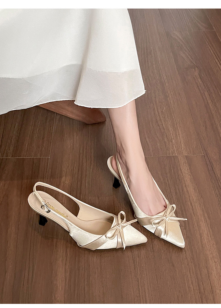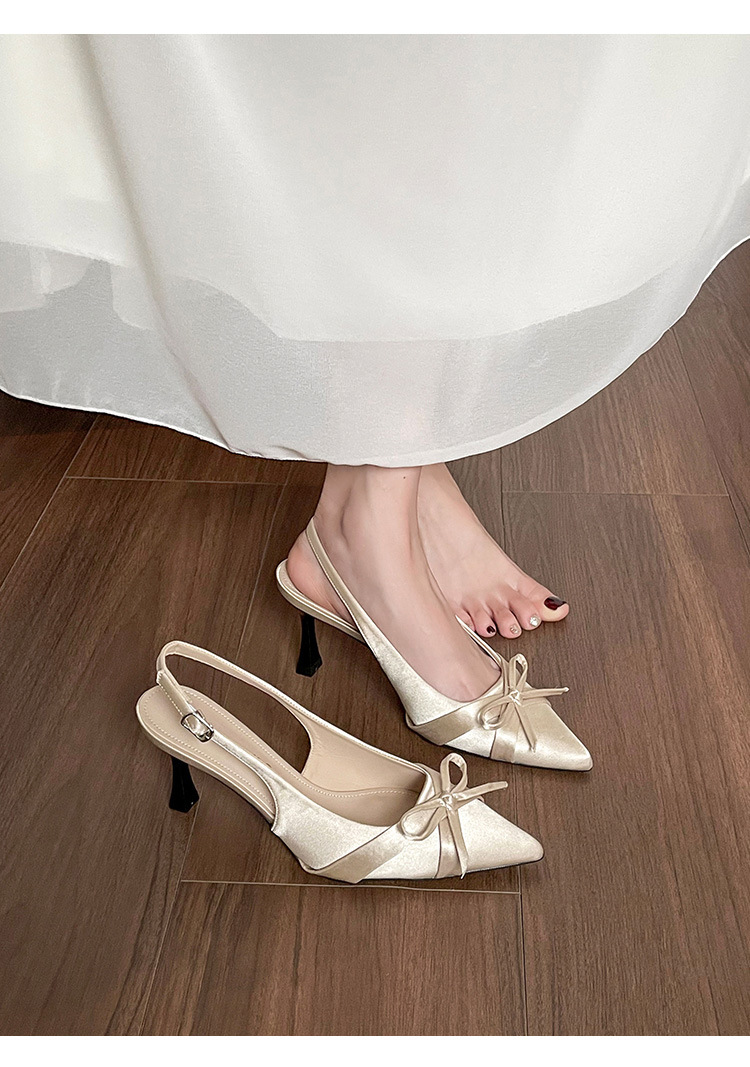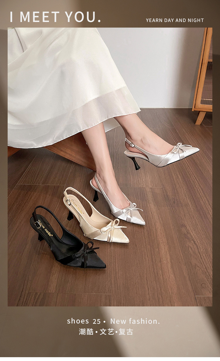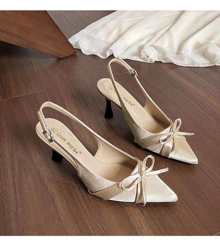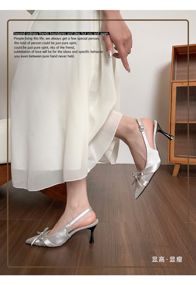 Zapatos de tacón de aguja francés, sandalias Baotou, zapatos de mujer, temperamento de verano 2025, zapatos puntiagudos con lazo para damas