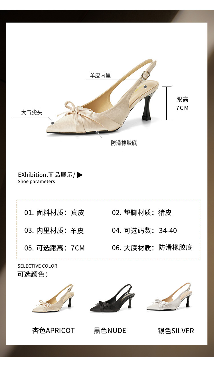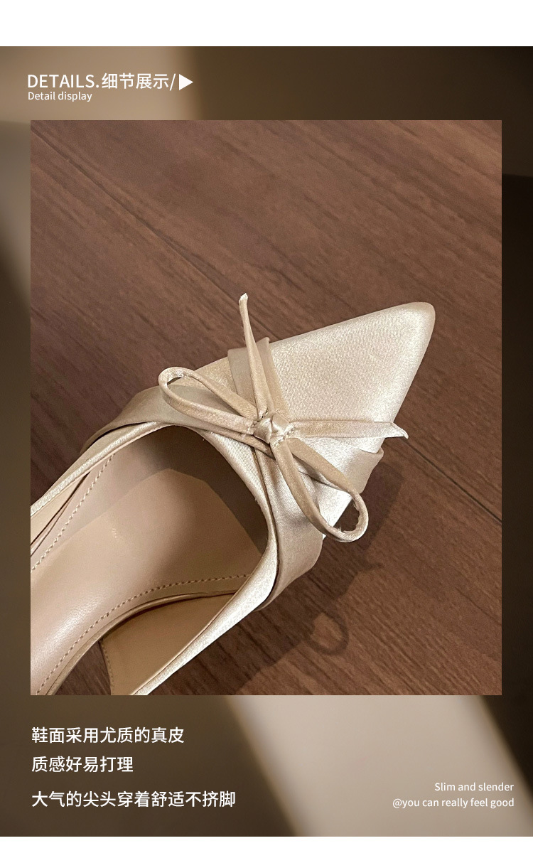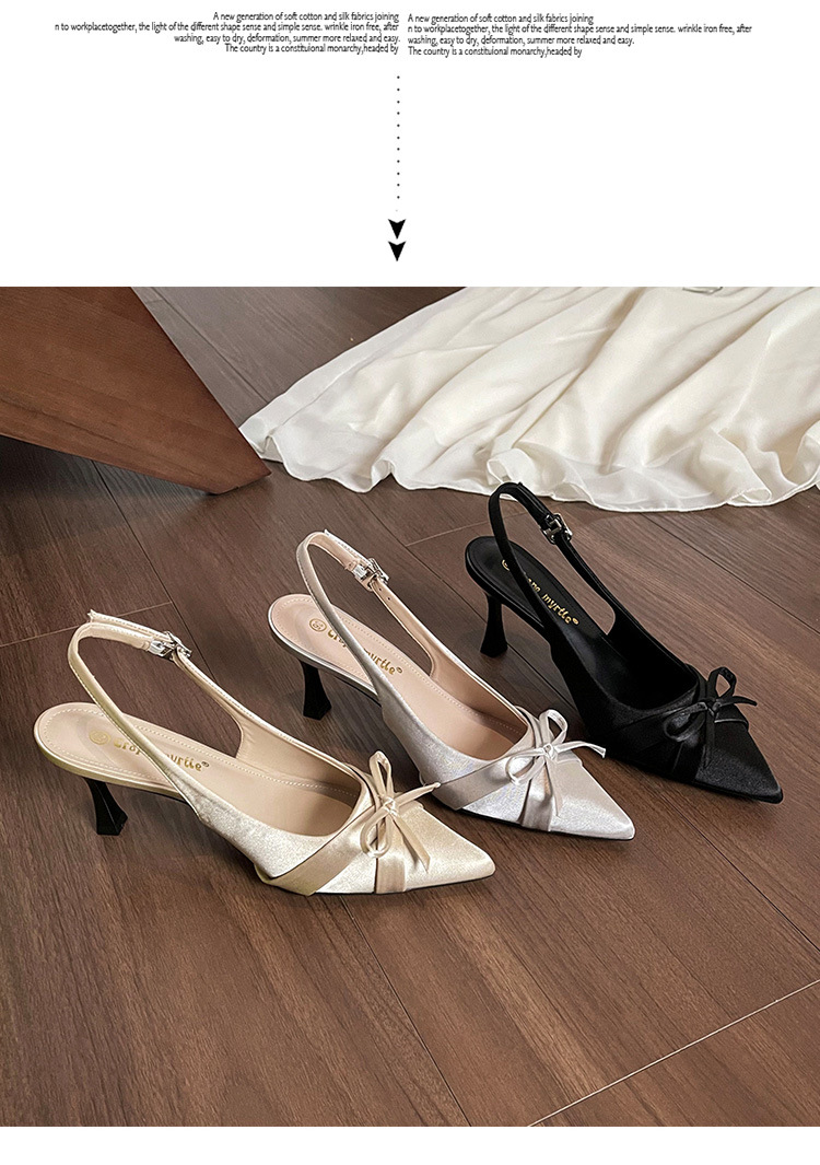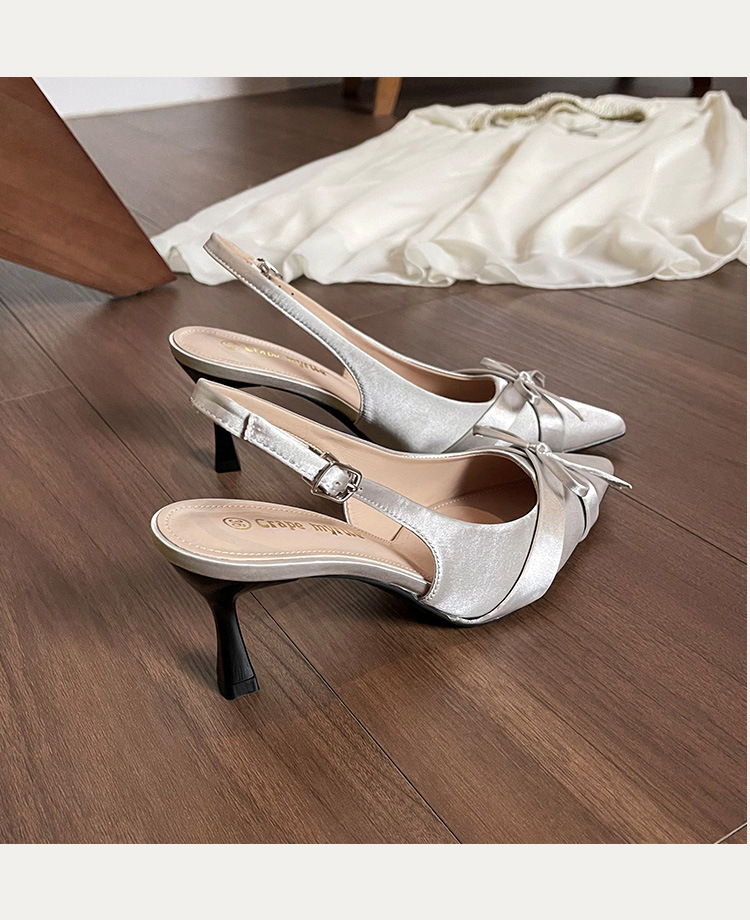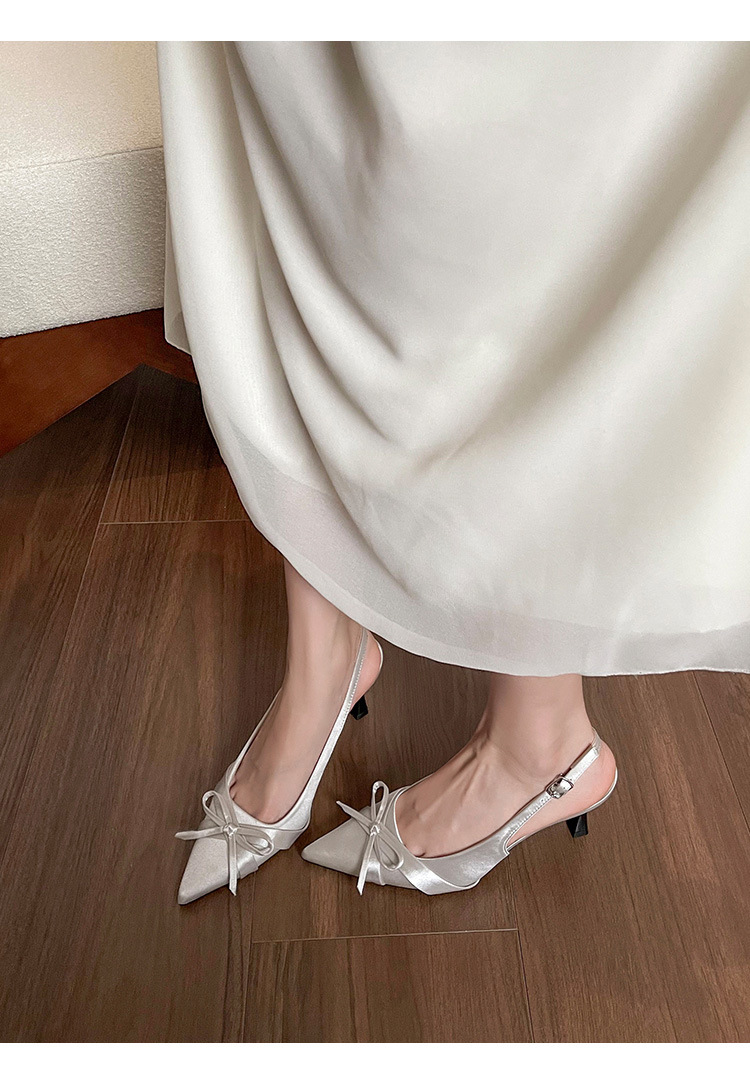 Zapatos de tacón de aguja francés, sandalias Baotou, zapatos de mujer, temperamento de verano 2025, zapatos puntiagudos con lazo para damas
