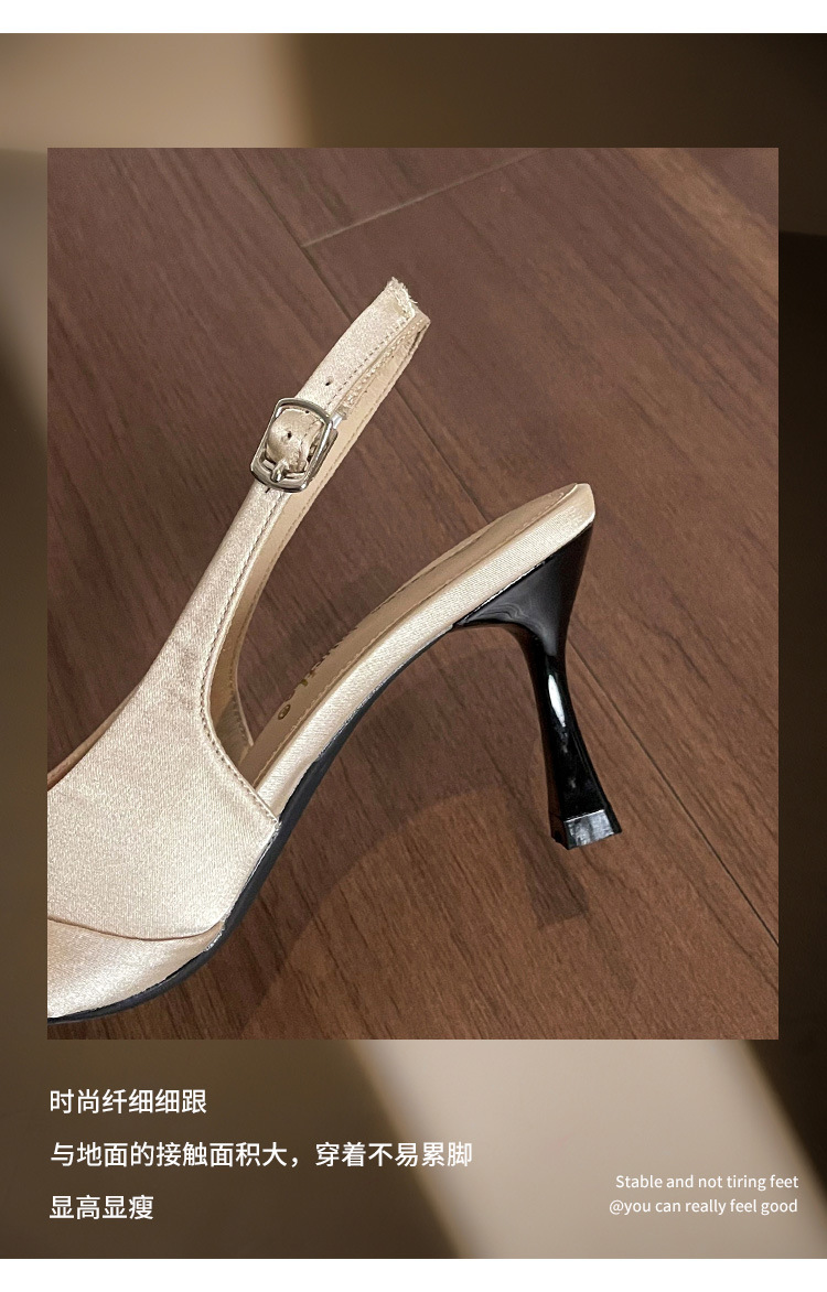 Temperamento puntiagudo de satén tacones altos para mujer nuevo estilo francés de alta gama boca baja con falda punta puntiaguda sandalias de tacón alto para mujer