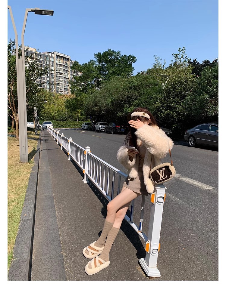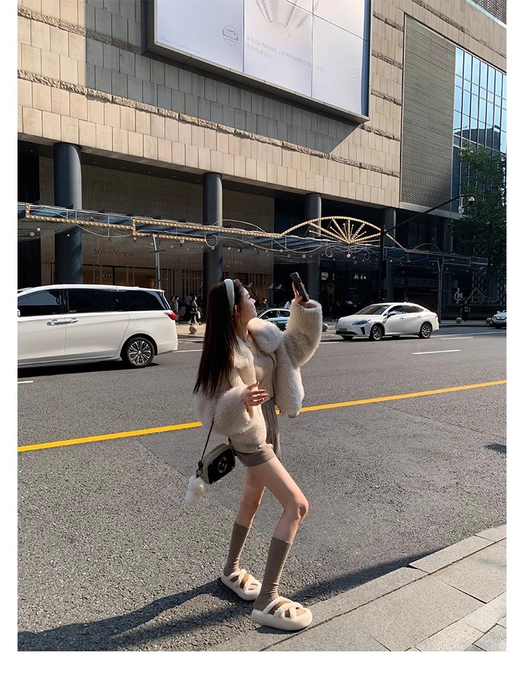 Los nuevos pliegues de cuero francés de Dongguan, zapatillas de un solo carácter con micro-estándar, sandalias casuales de tacón grueso, nuevo estilo de verano