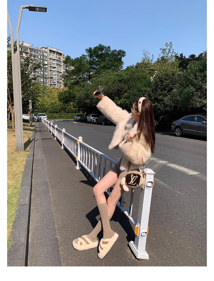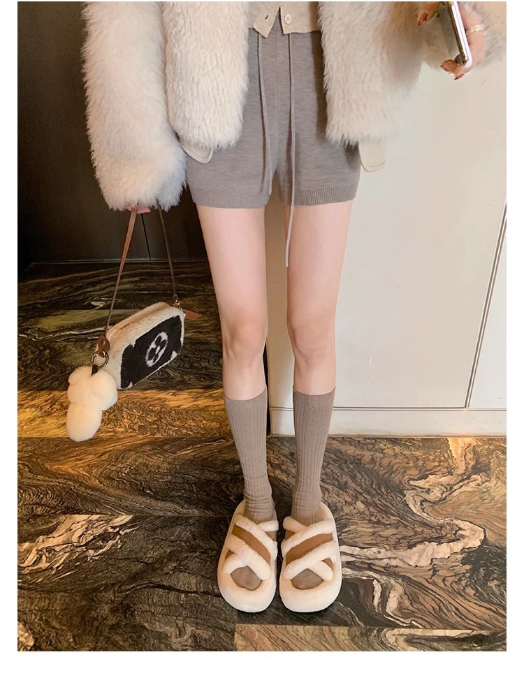 Grava Madre Otoño Invierno Nuevo Pantalones de lana Cross-Cirrea de empalme cálido ocio viento zapatillas de fondo grueso nuevas mujeres