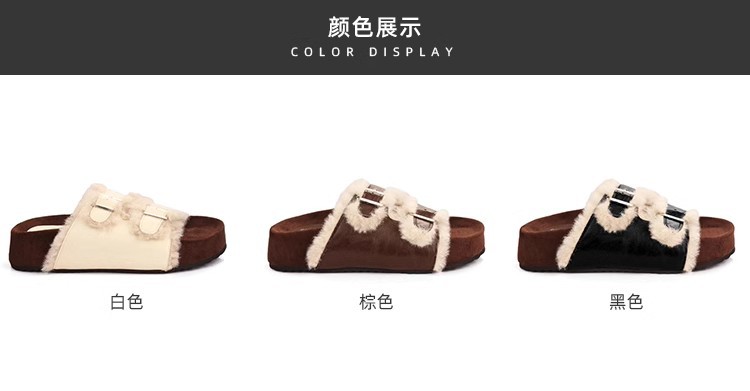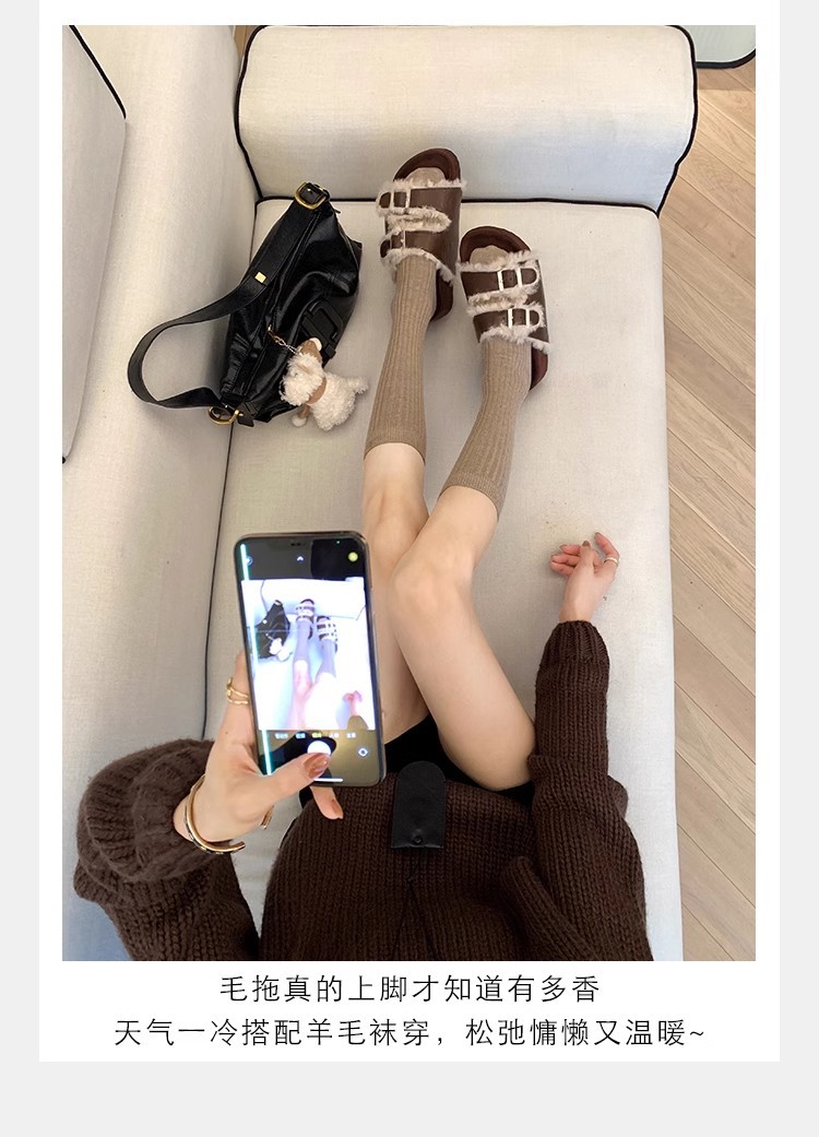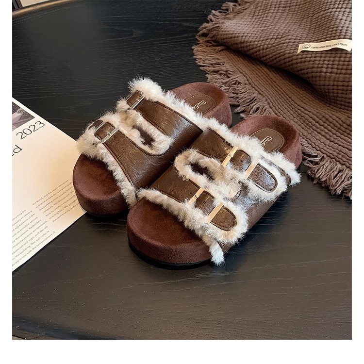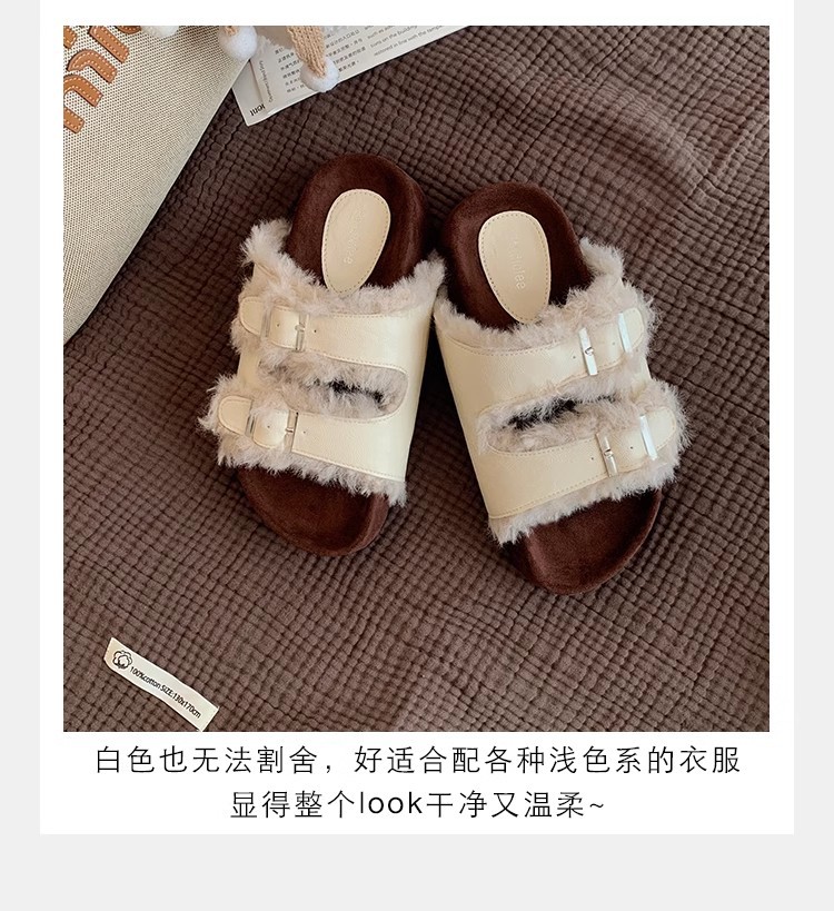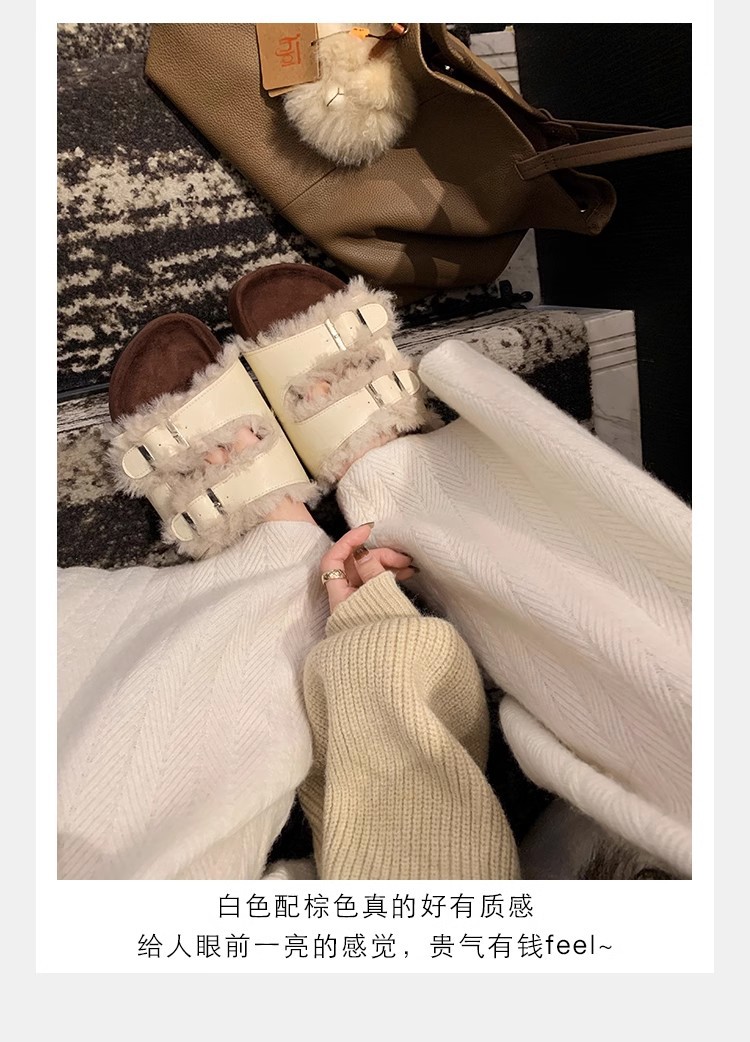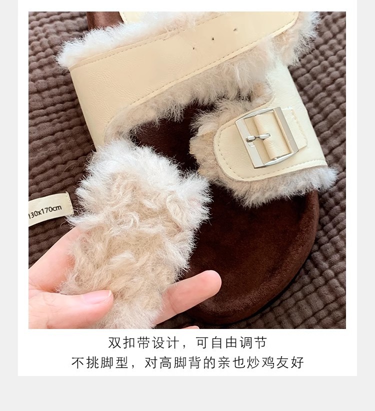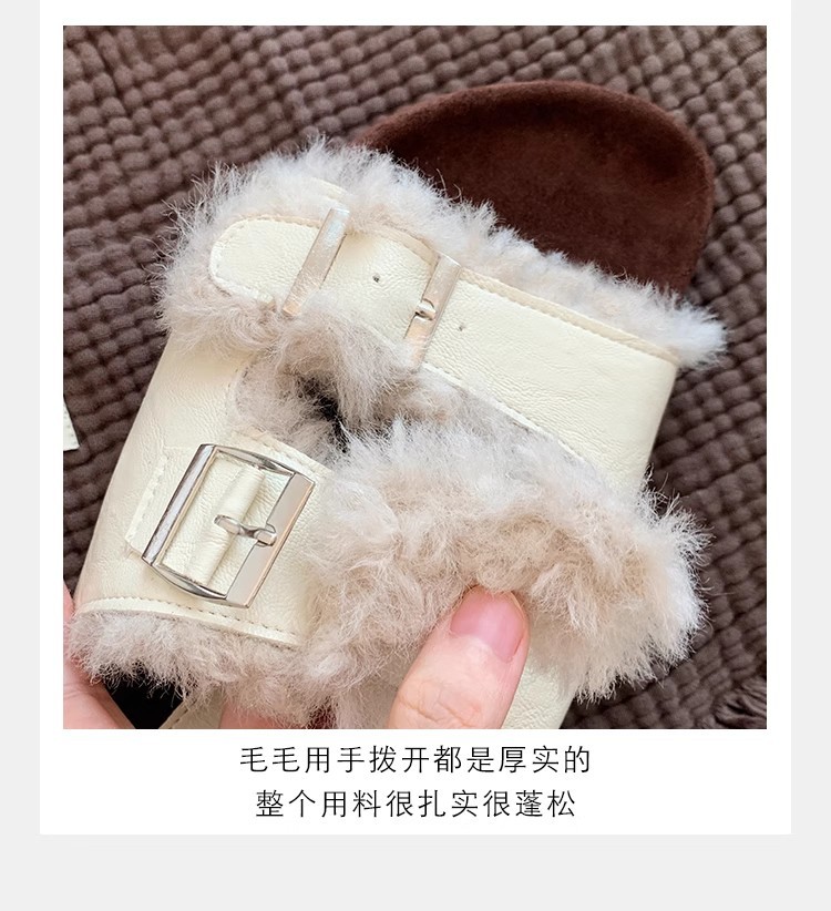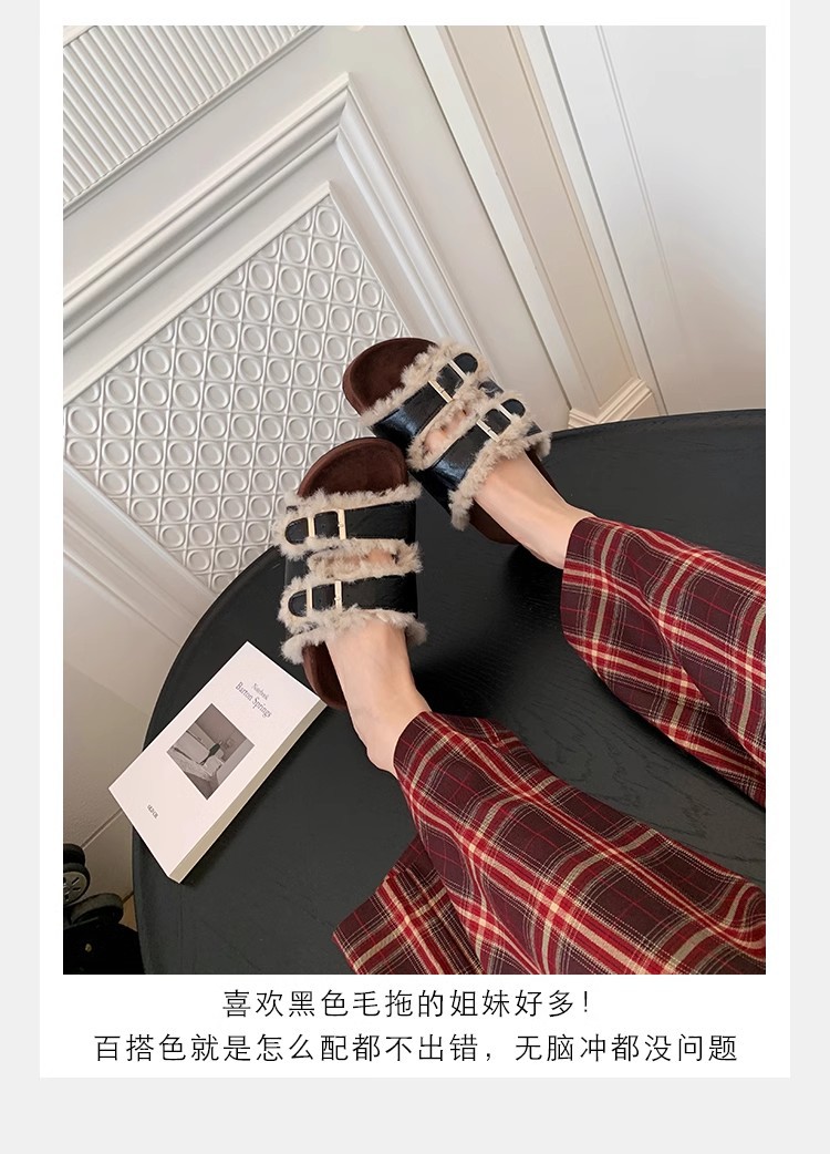 Madre de uva ~ doble botón con una parte inferior gruesa perezosa de dedos de pelo abiertos zapatillas de invierno para mujeres