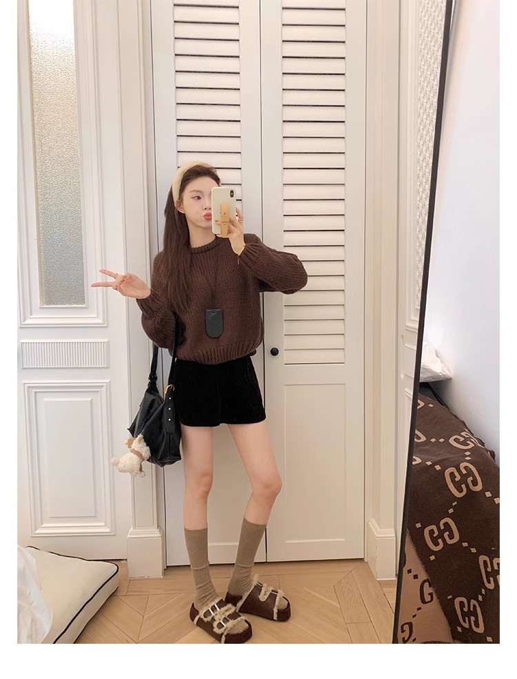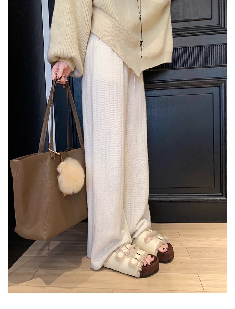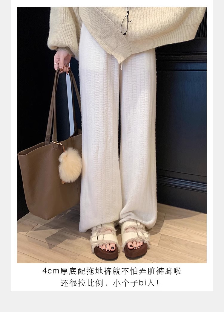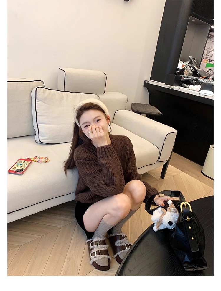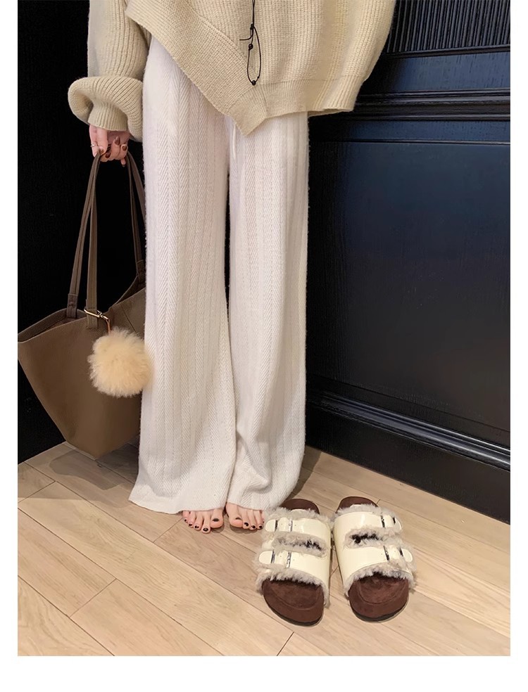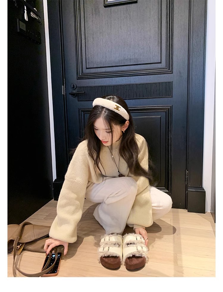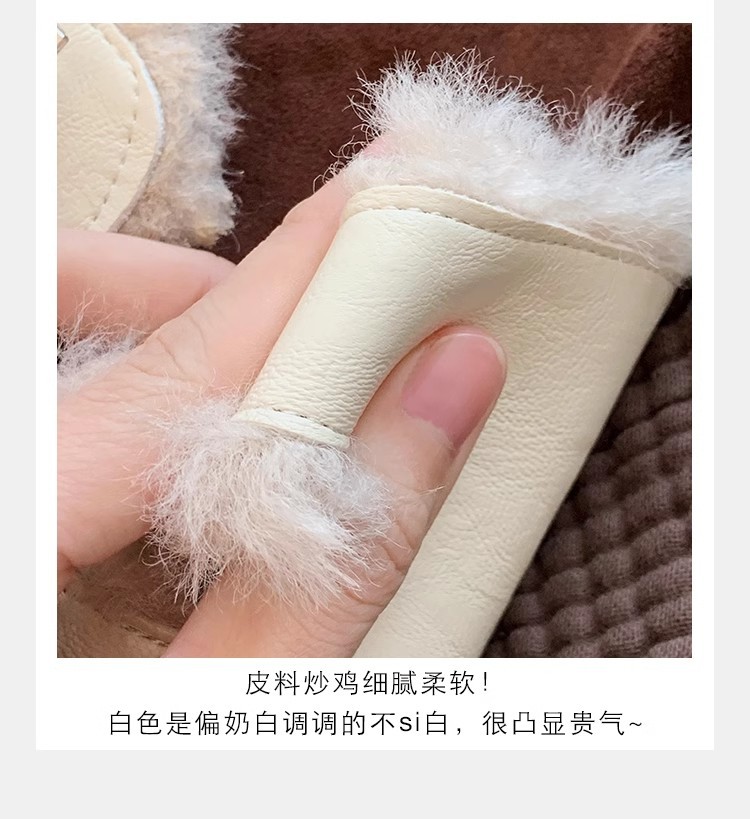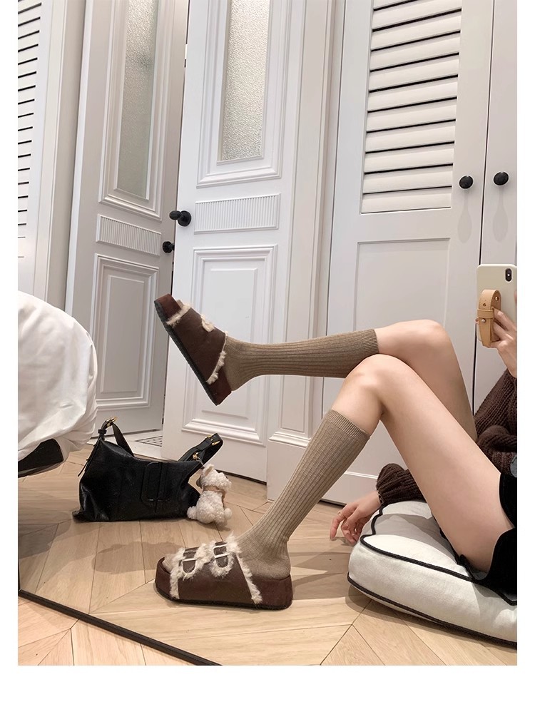 Madre de uva ~ doble botón con una parte inferior gruesa perezosa de dedos de pelo abiertos zapatillas de invierno para mujeres