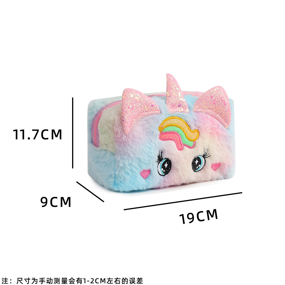 Lavar bolsa de ojos grandes, estuche de lápices de felpa, papelería, mano, dibujos animados, ojos lindos, viaje de niña, unicornio, maquillaje